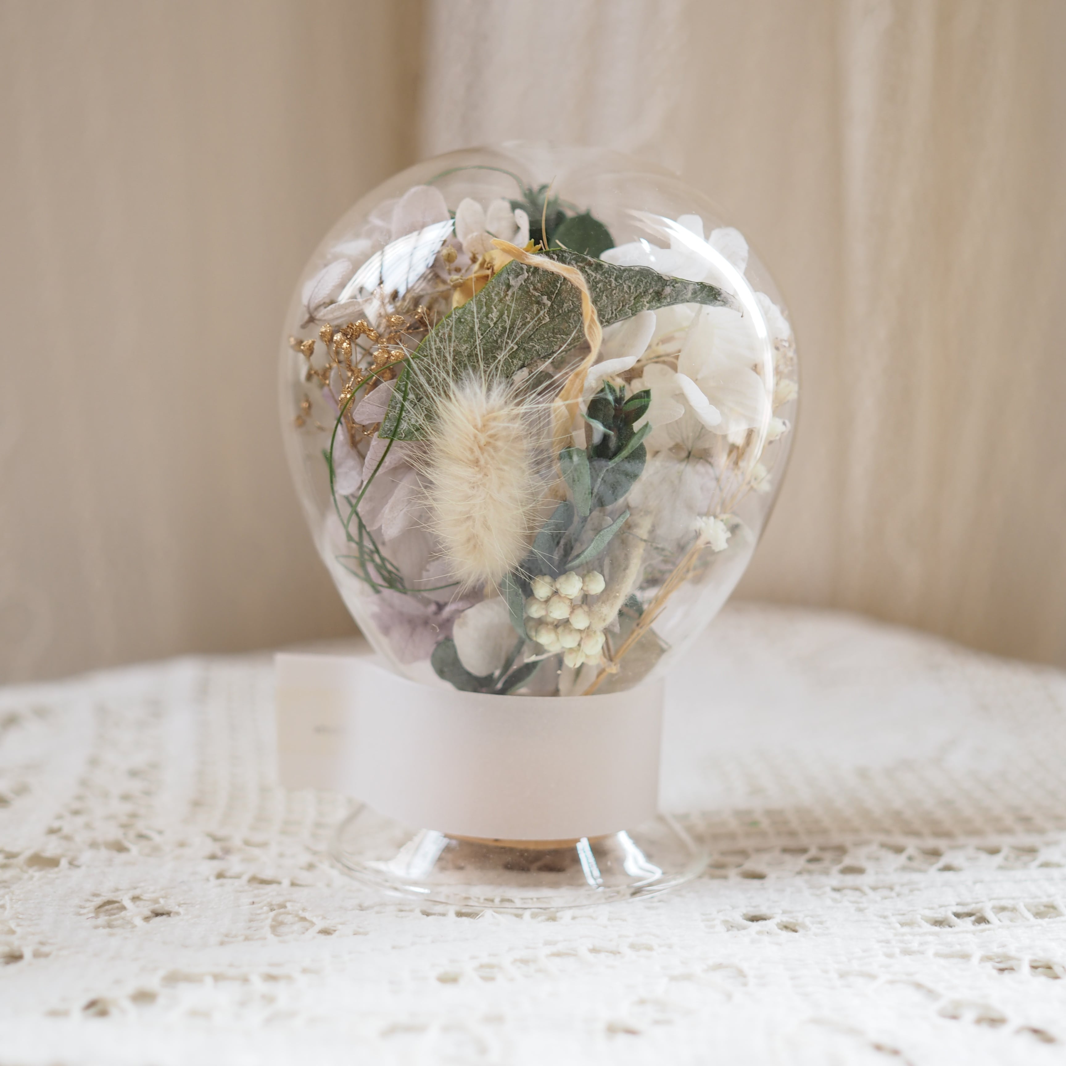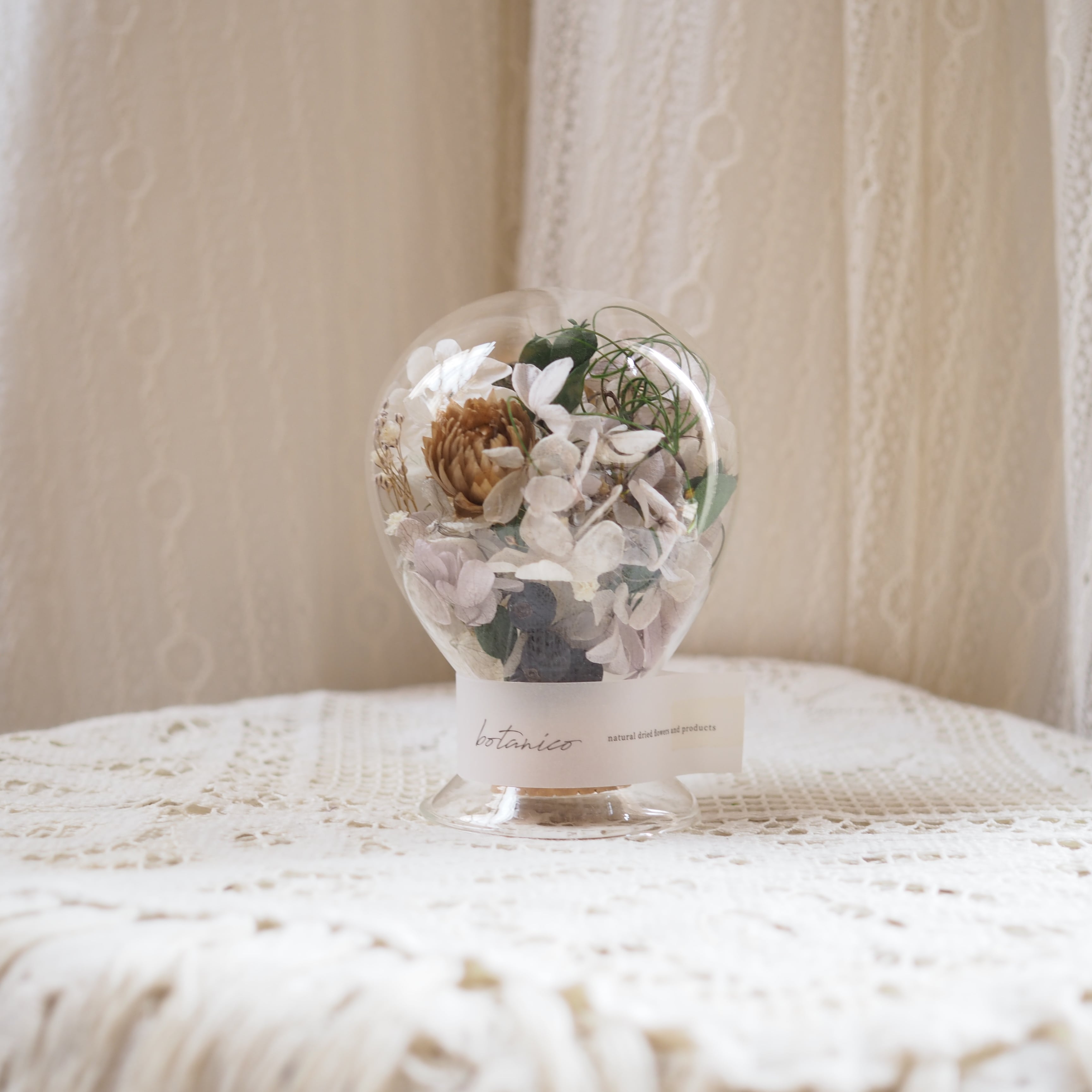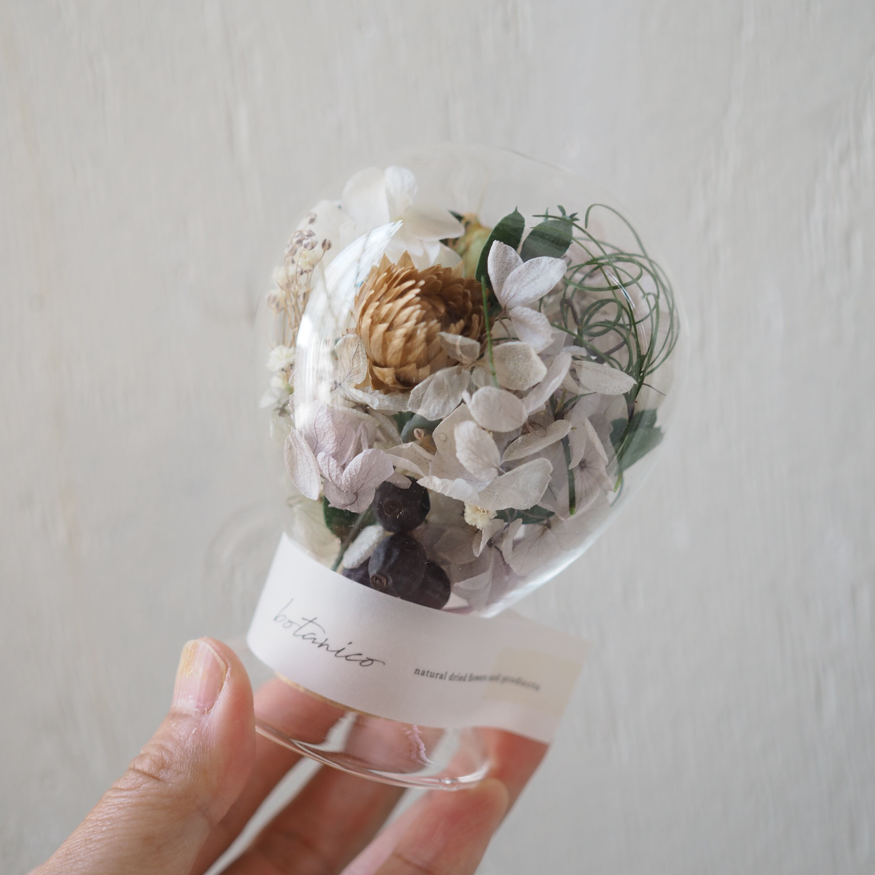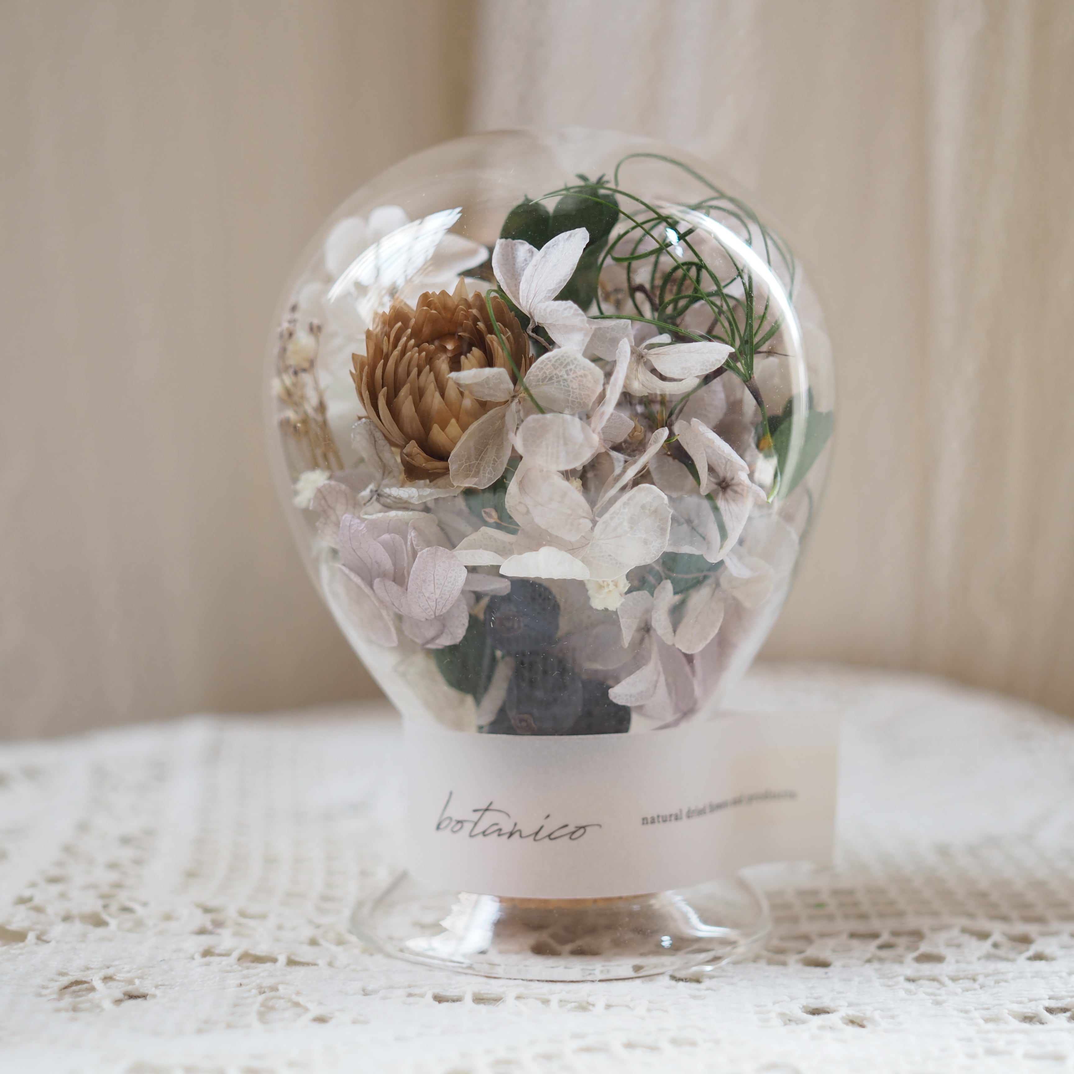手作業で丁寧に仕上げたコルク瓶の中には、通年で扱いやすいドライフラワーを使用しています。