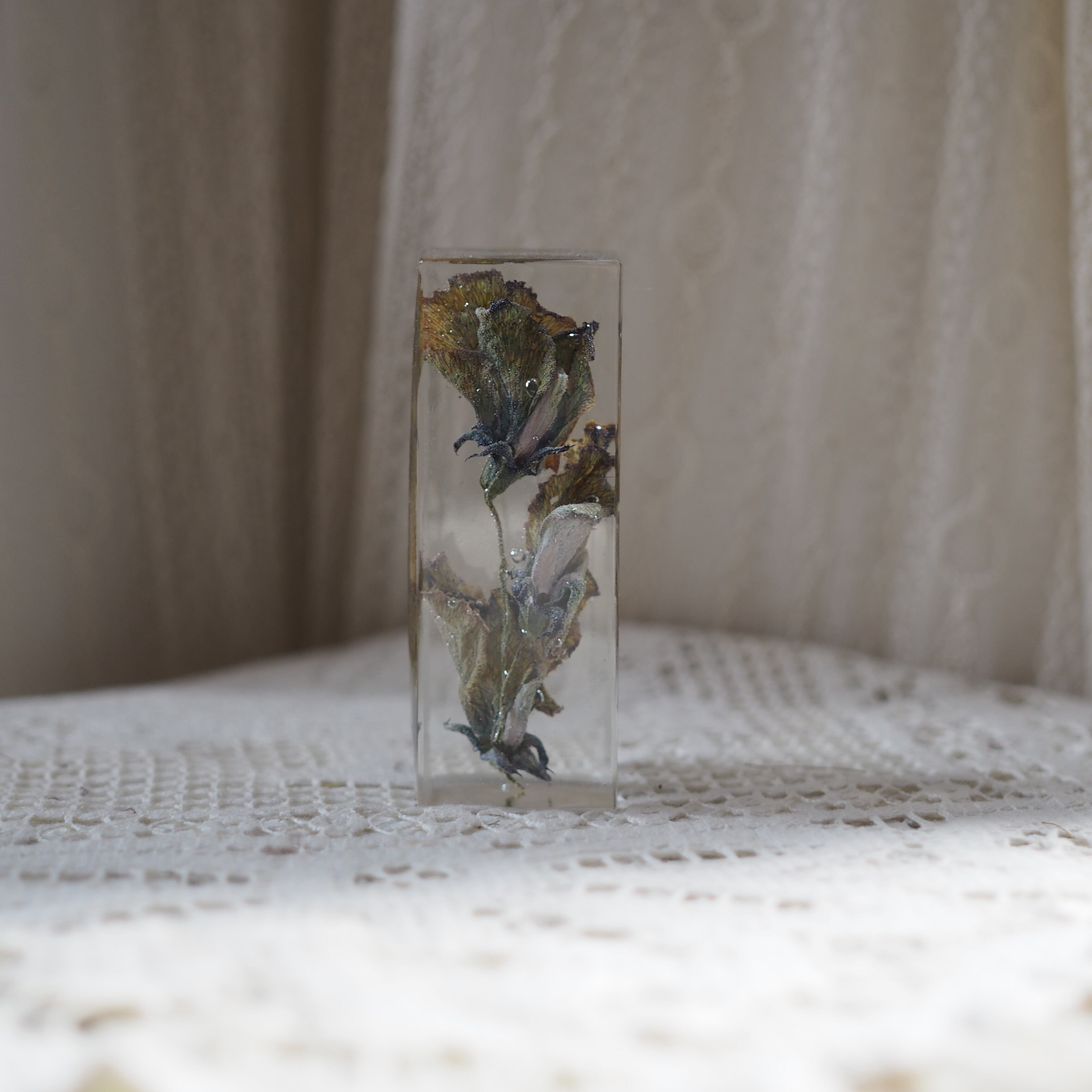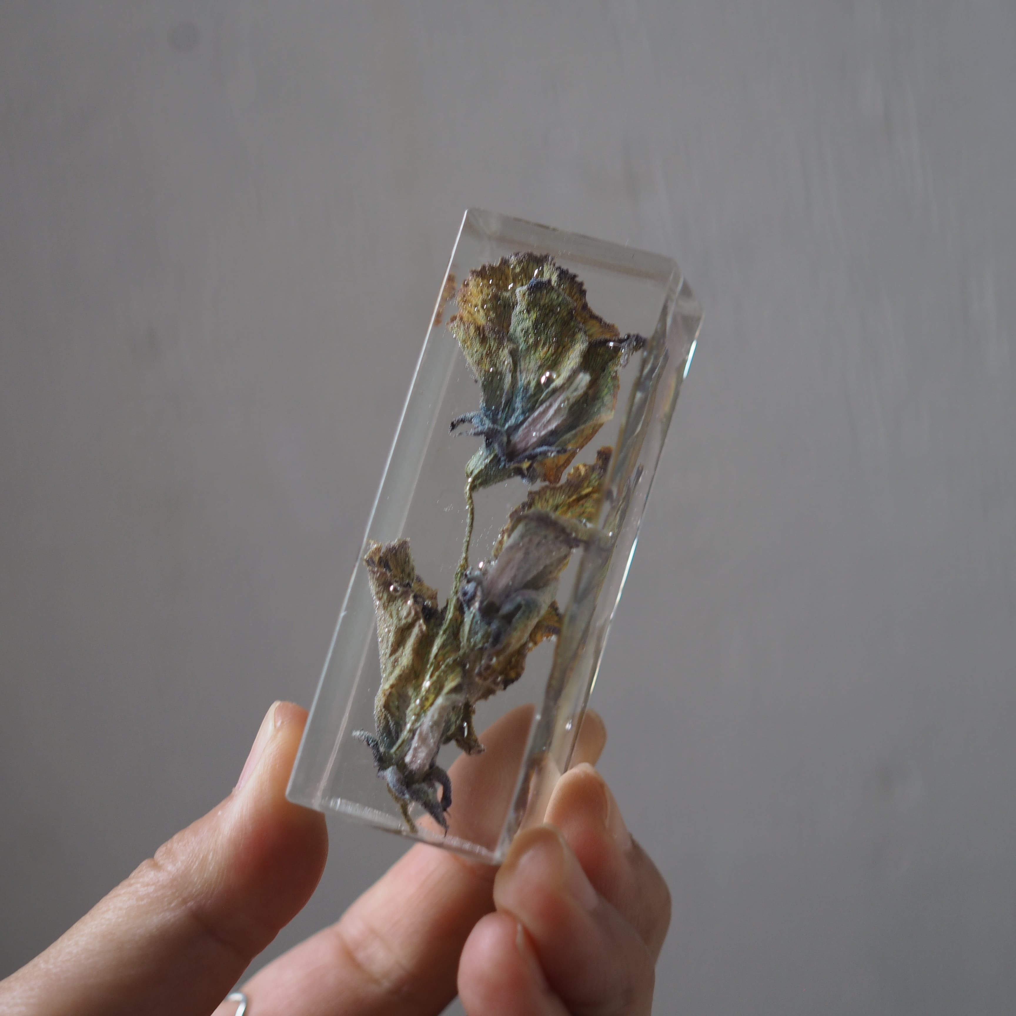クリアオブジェは美しい植物を、透明レジンで閉じ込めた植物標本のようなオブジェです。