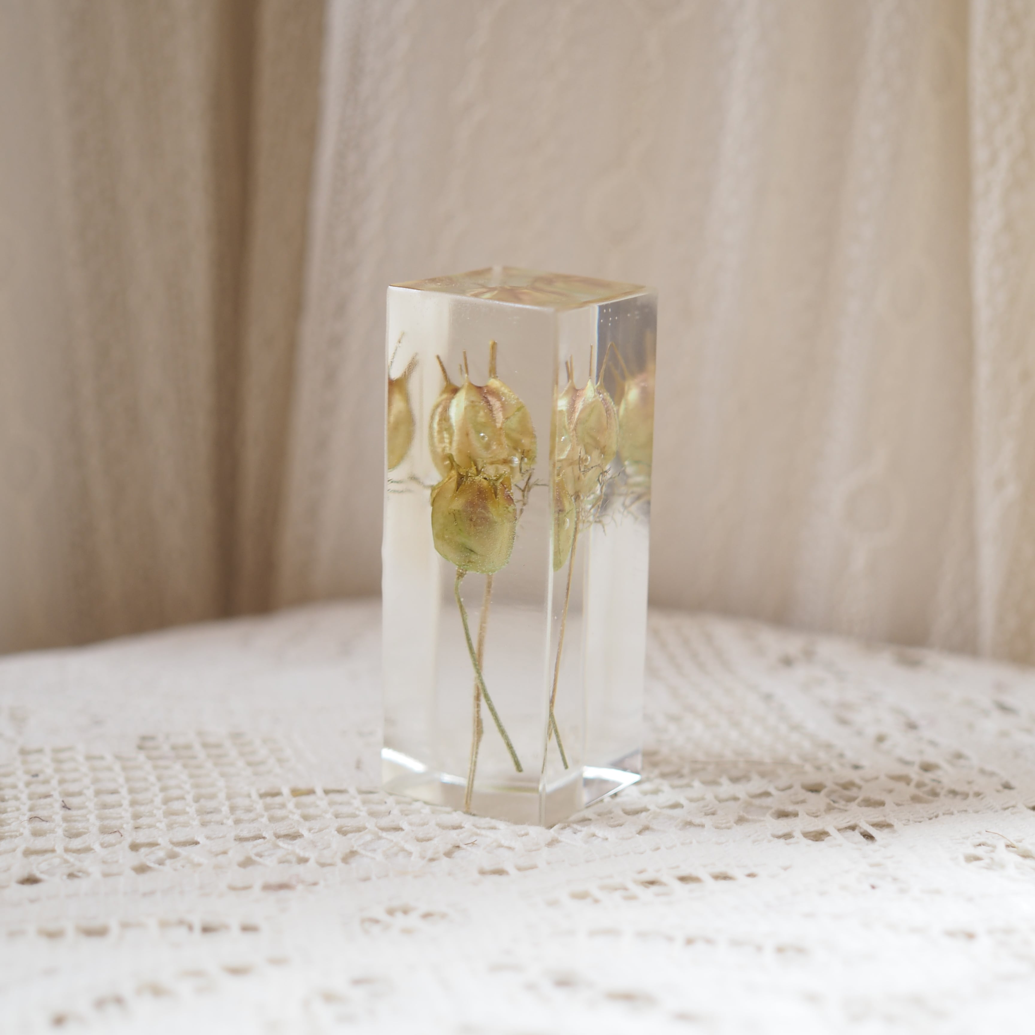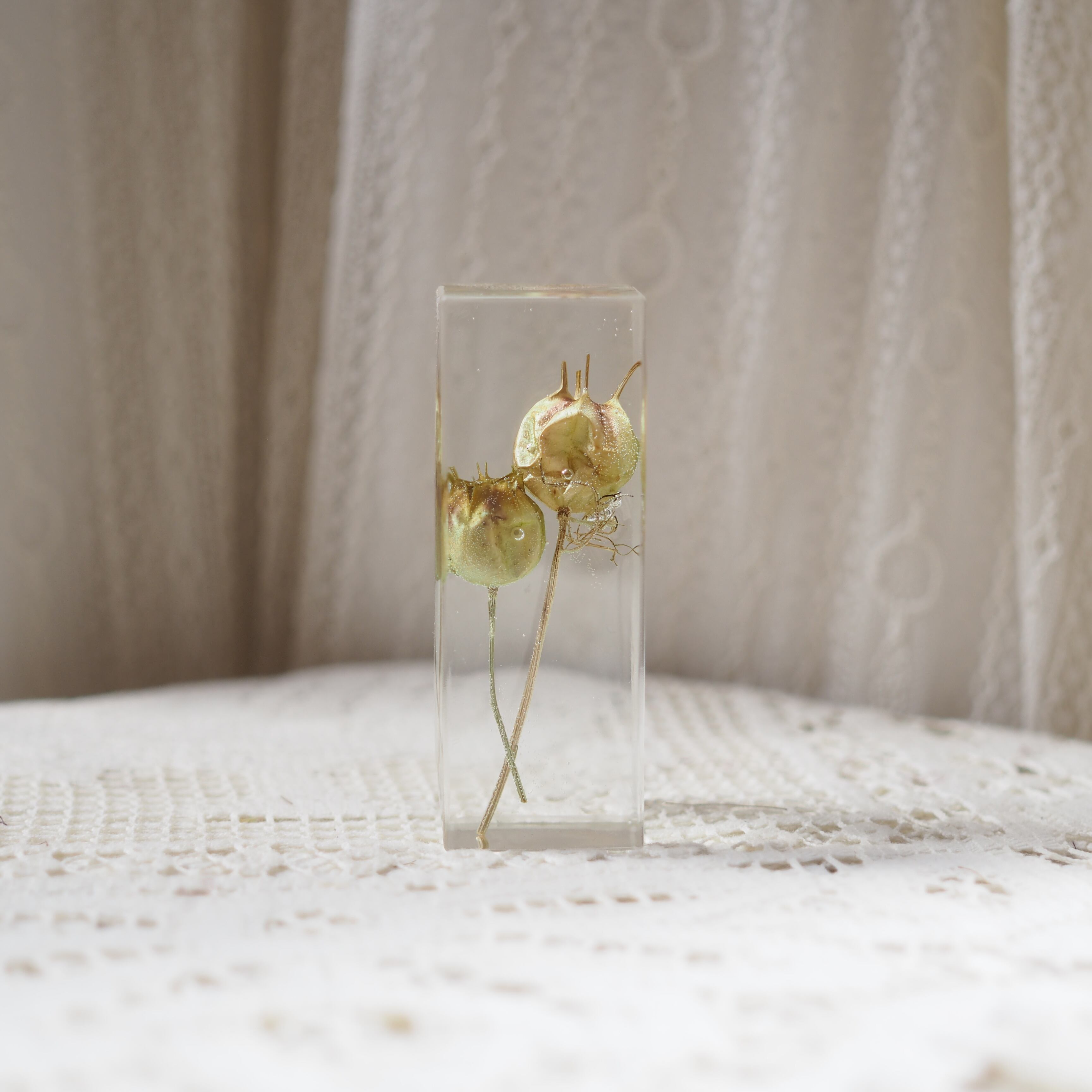 クリアオブジェは美しい植物を、透明レジンで閉じ込めた植物標本のようなオブジェです。