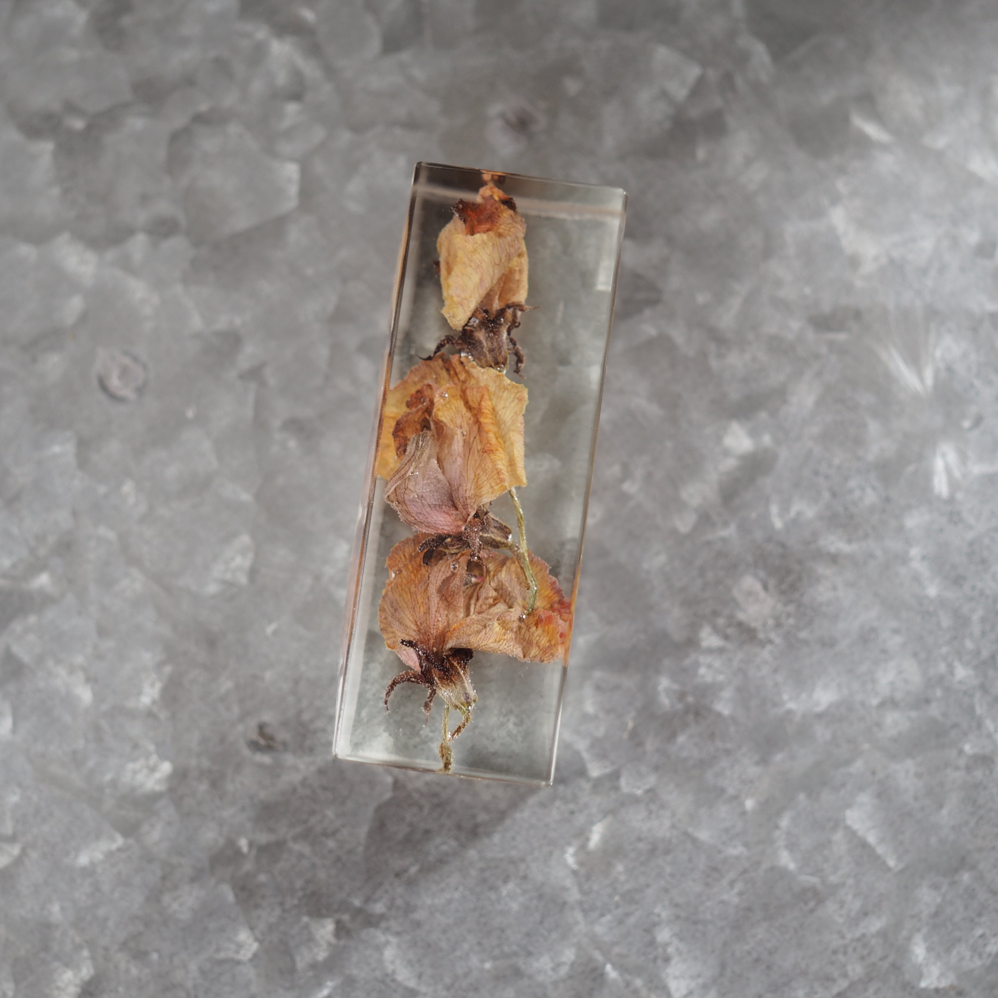 クリアオブジェは美しい植物を、透明レジンで閉じ込めた植物標本のようなオブジェです。