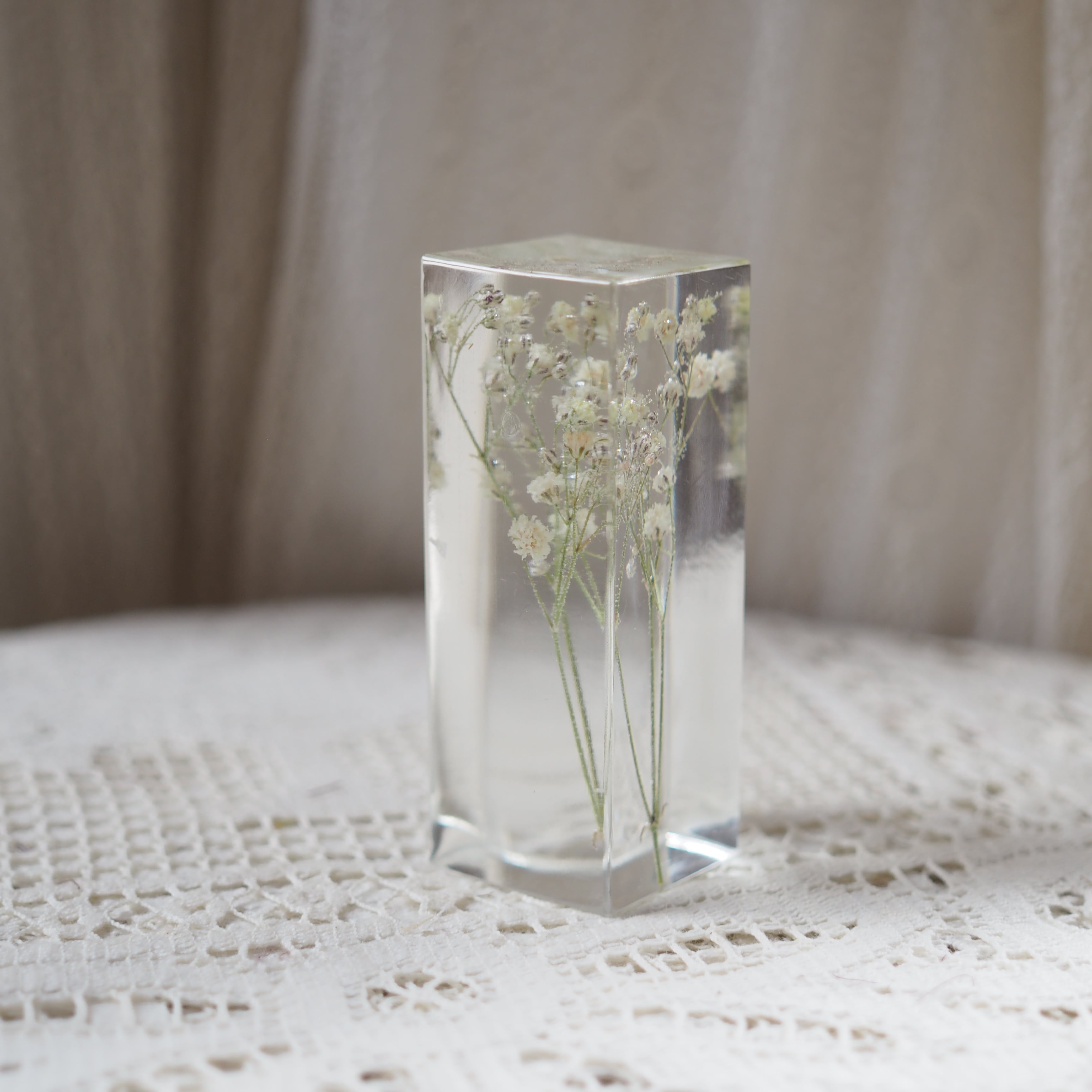 クリアオブジェは美しい植物を、透明レジンで閉じ込めた植物標本のようなオブジェです。