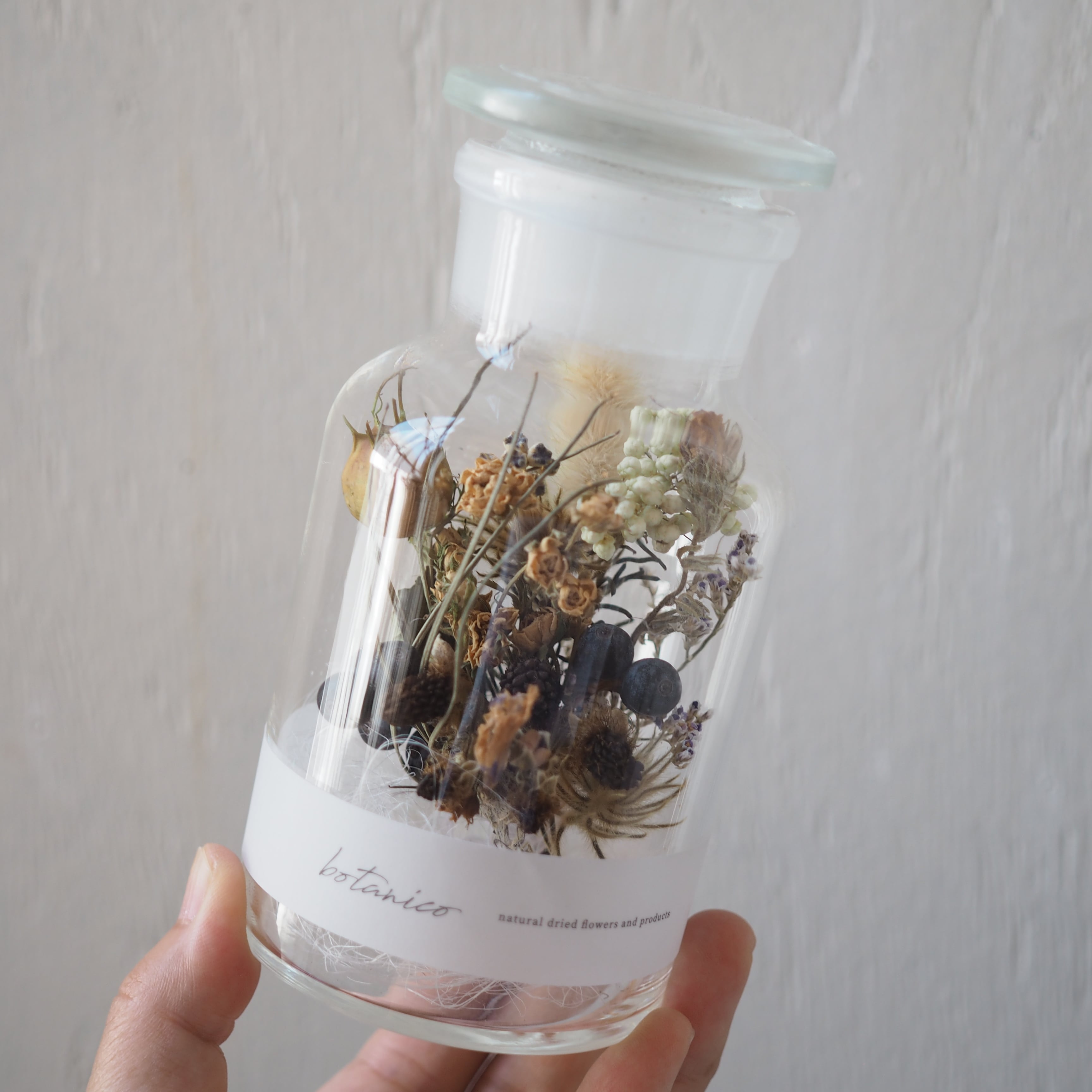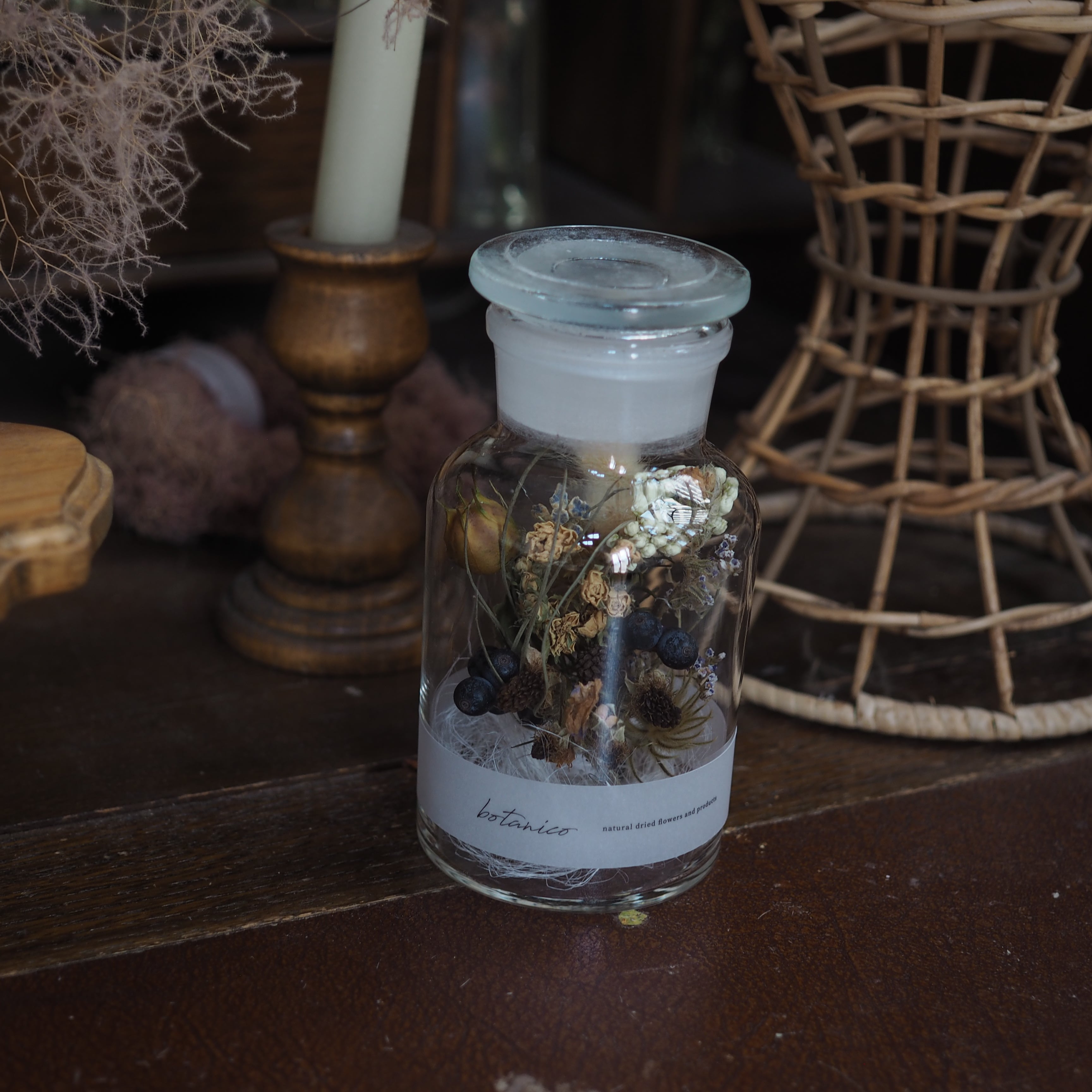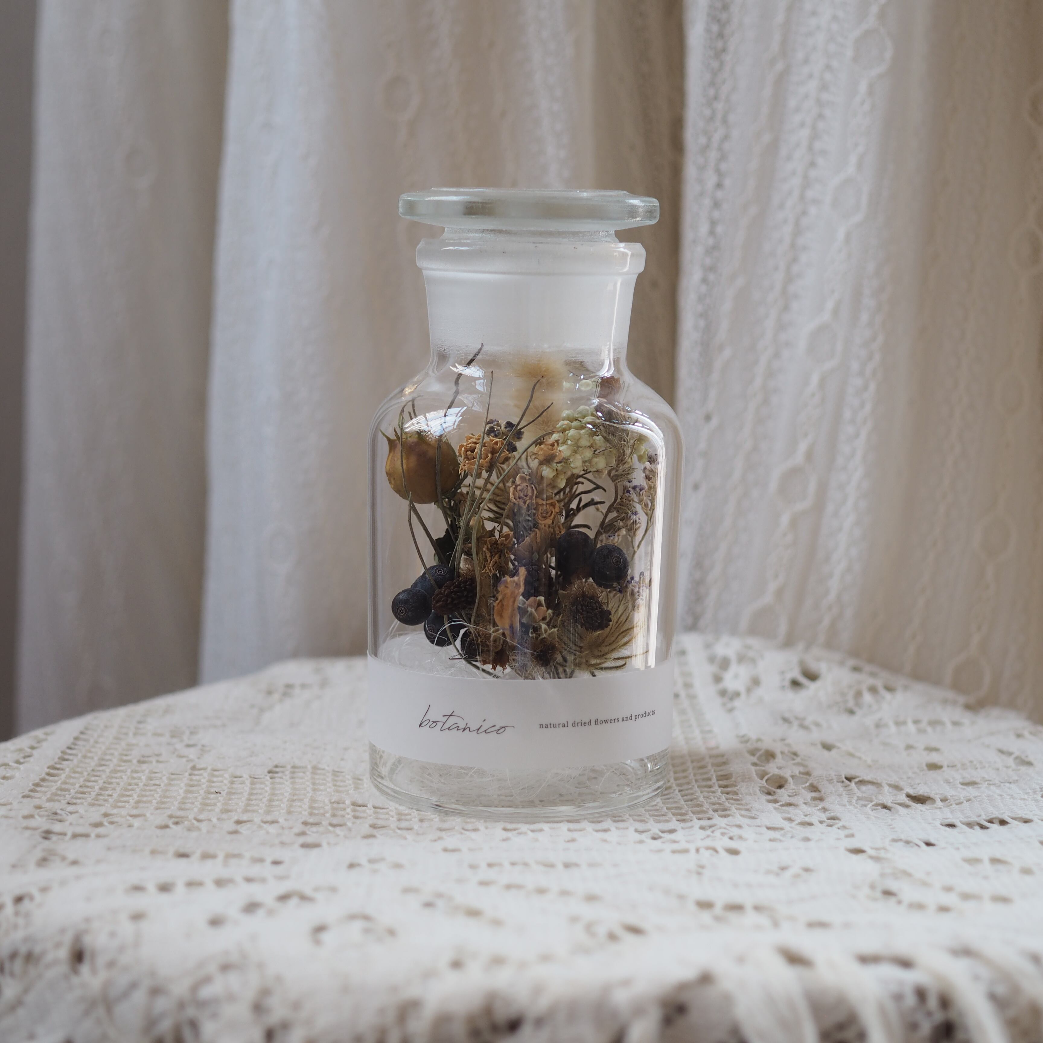 雰囲気のあるガラスボトルと、繊細なドライフラワーの組み合わせがgood。