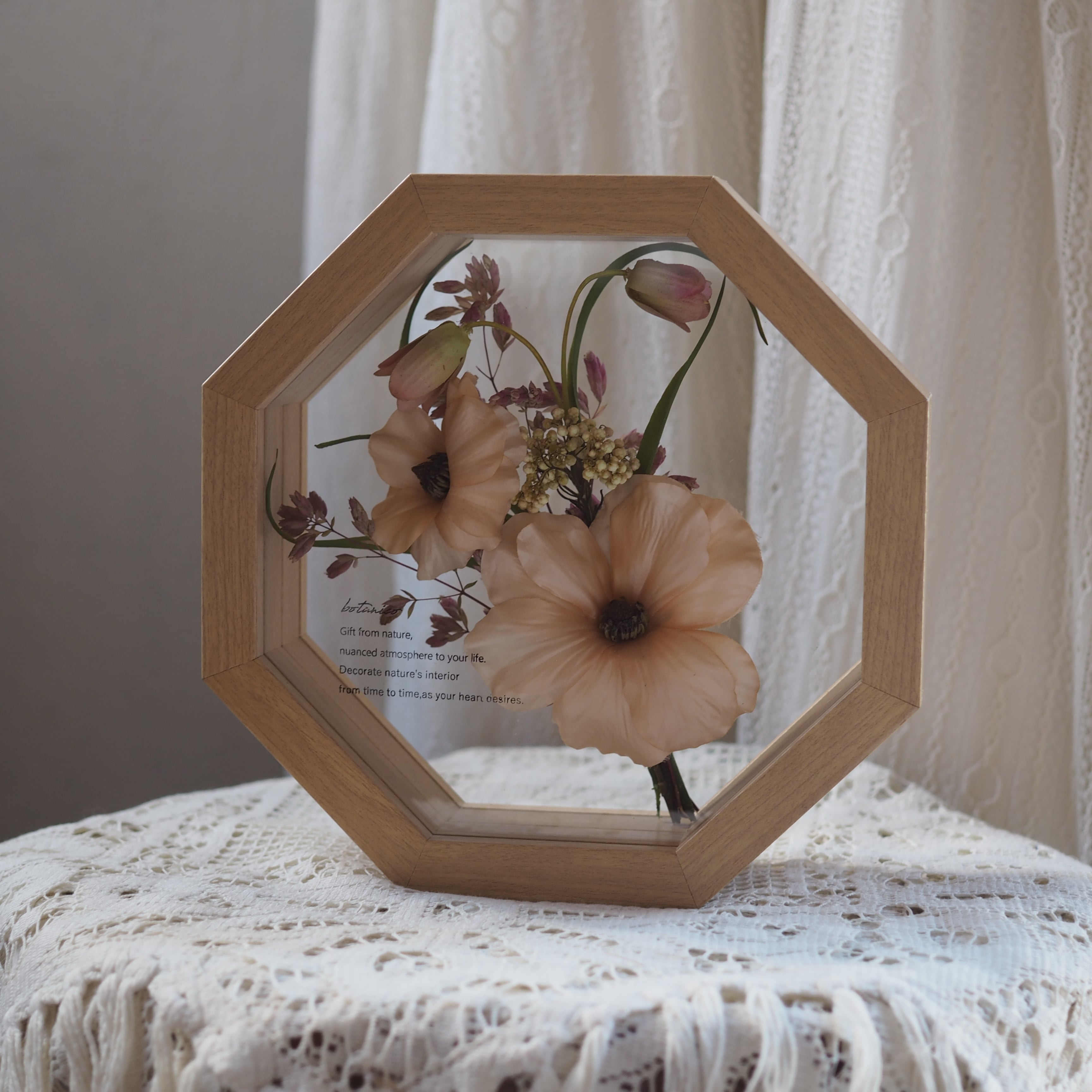 両面ガラス張りのため、まるで標本のように花々を飾ることができ、光を通すたびに透明感のある美しさを楽しめます。