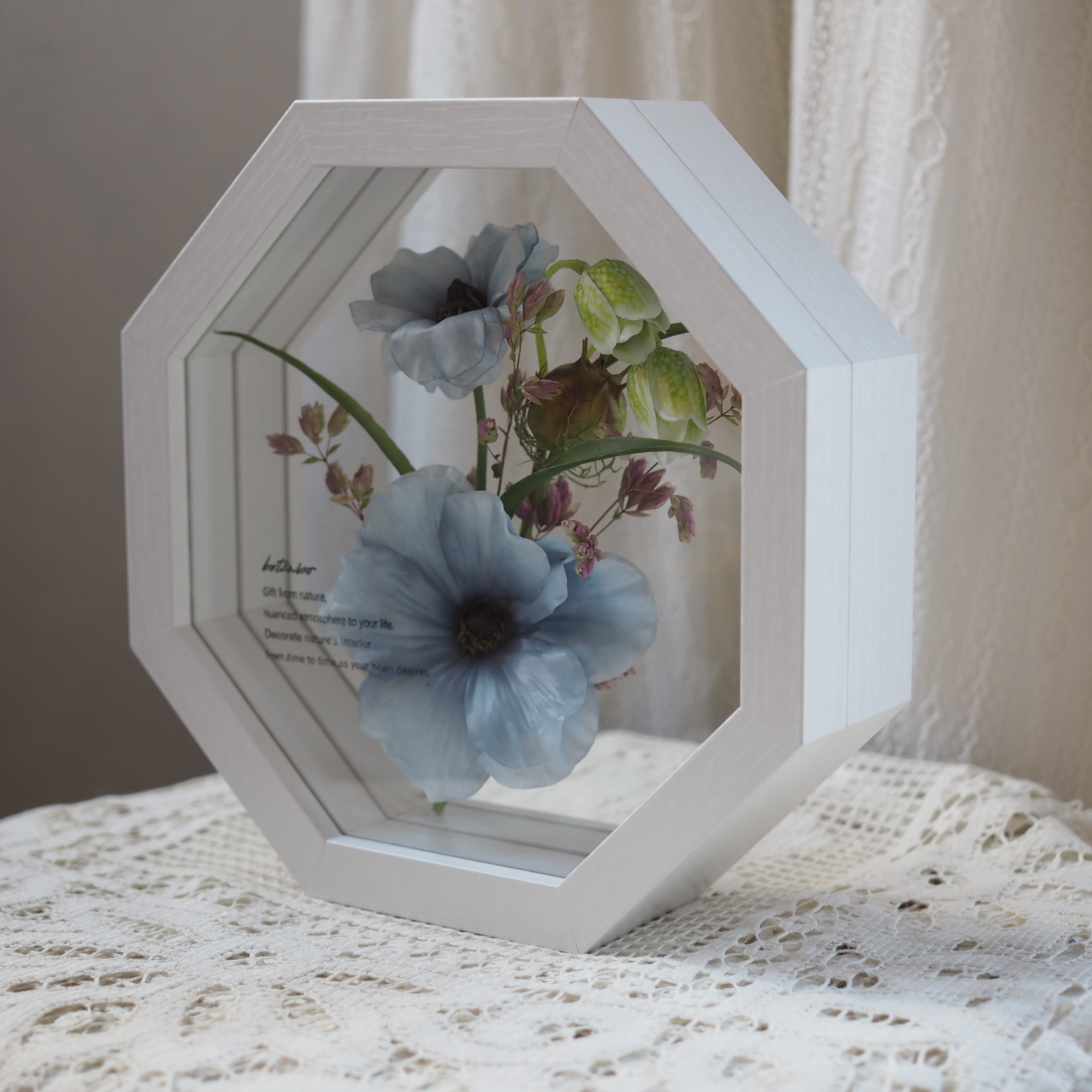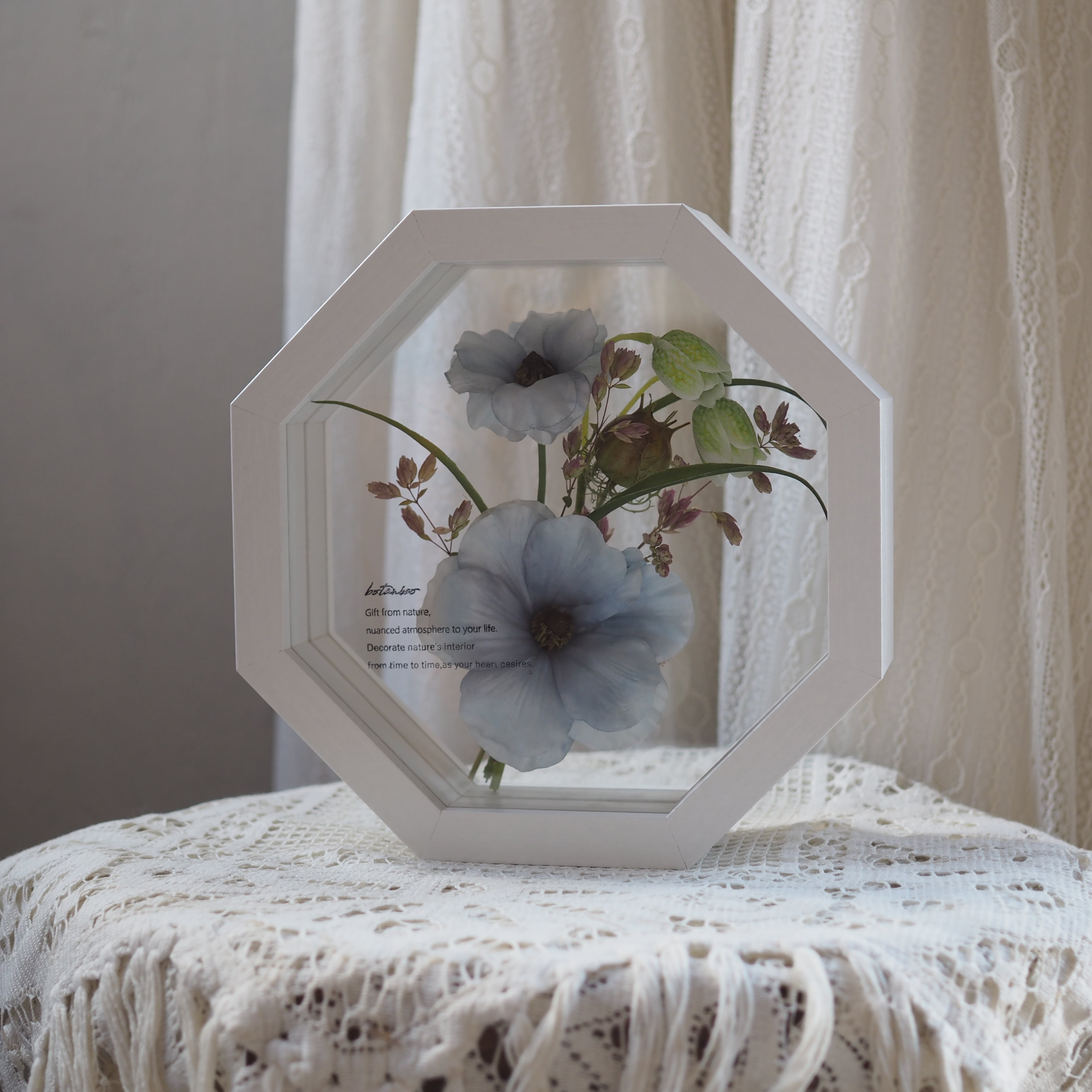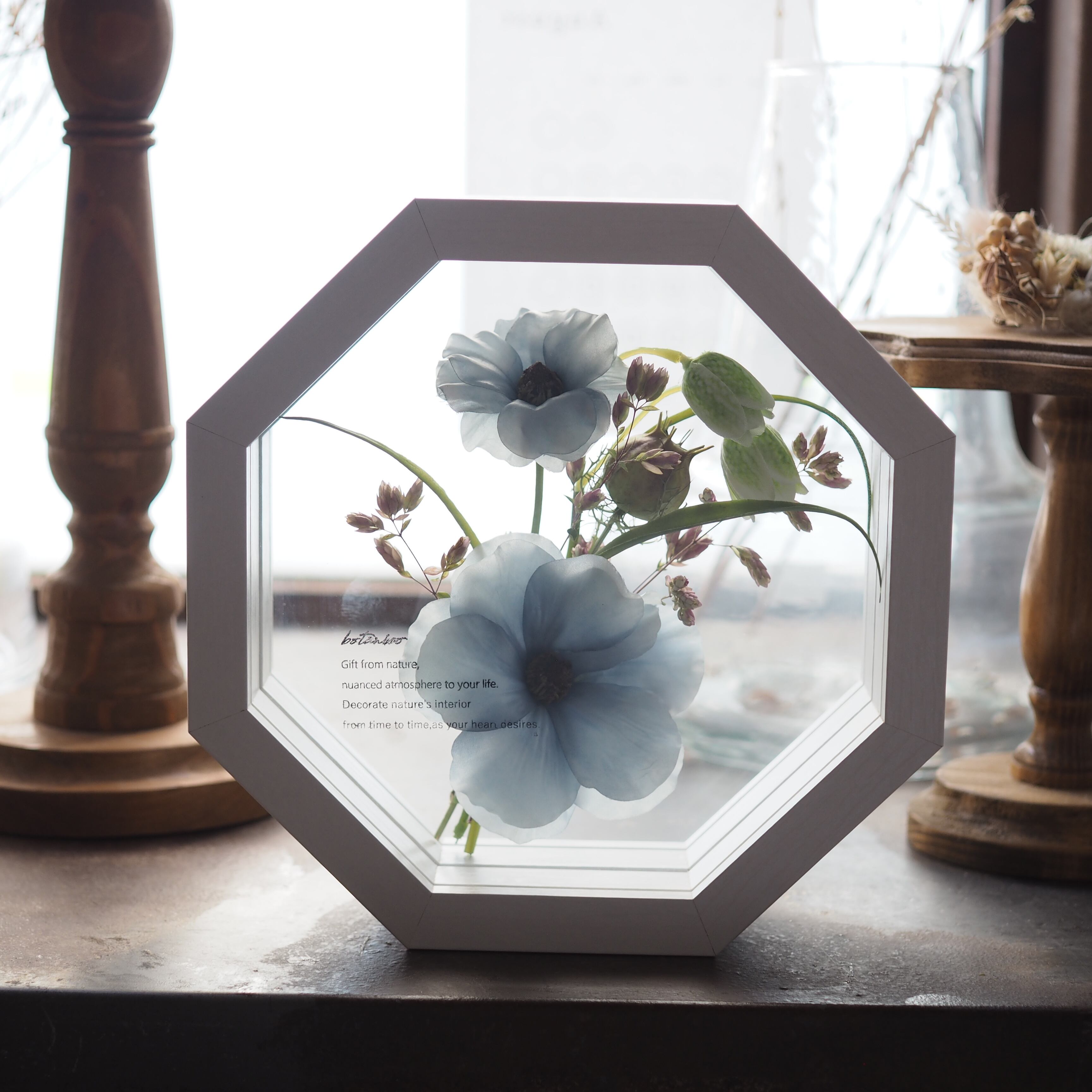 両面ガラス張りのため、まるで標本のように花々を飾ることができ、光を通すたびに透明感のある美しさを楽しめます。