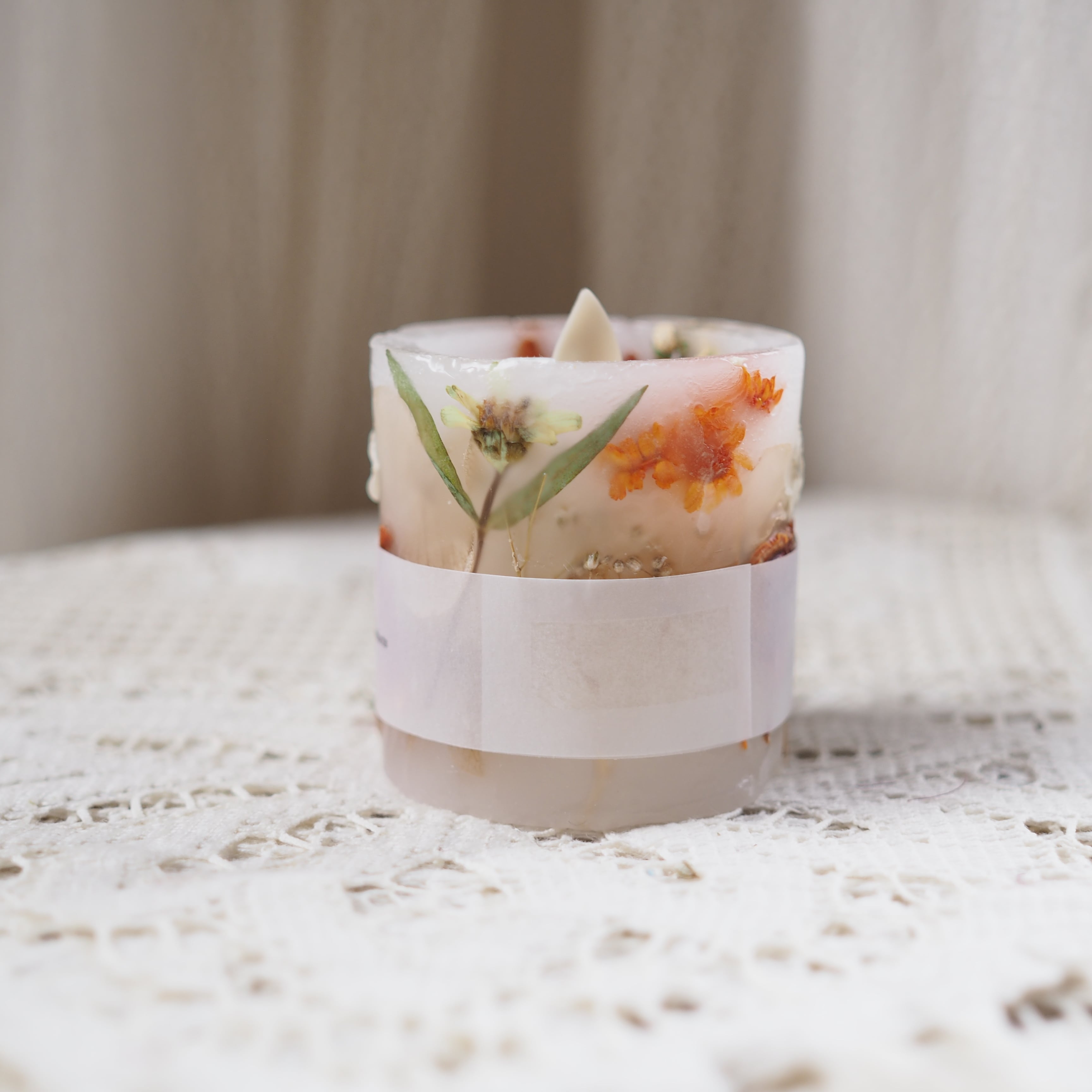 ドライフラワーや押し花など、さまざまな形状のお花を使用しました。