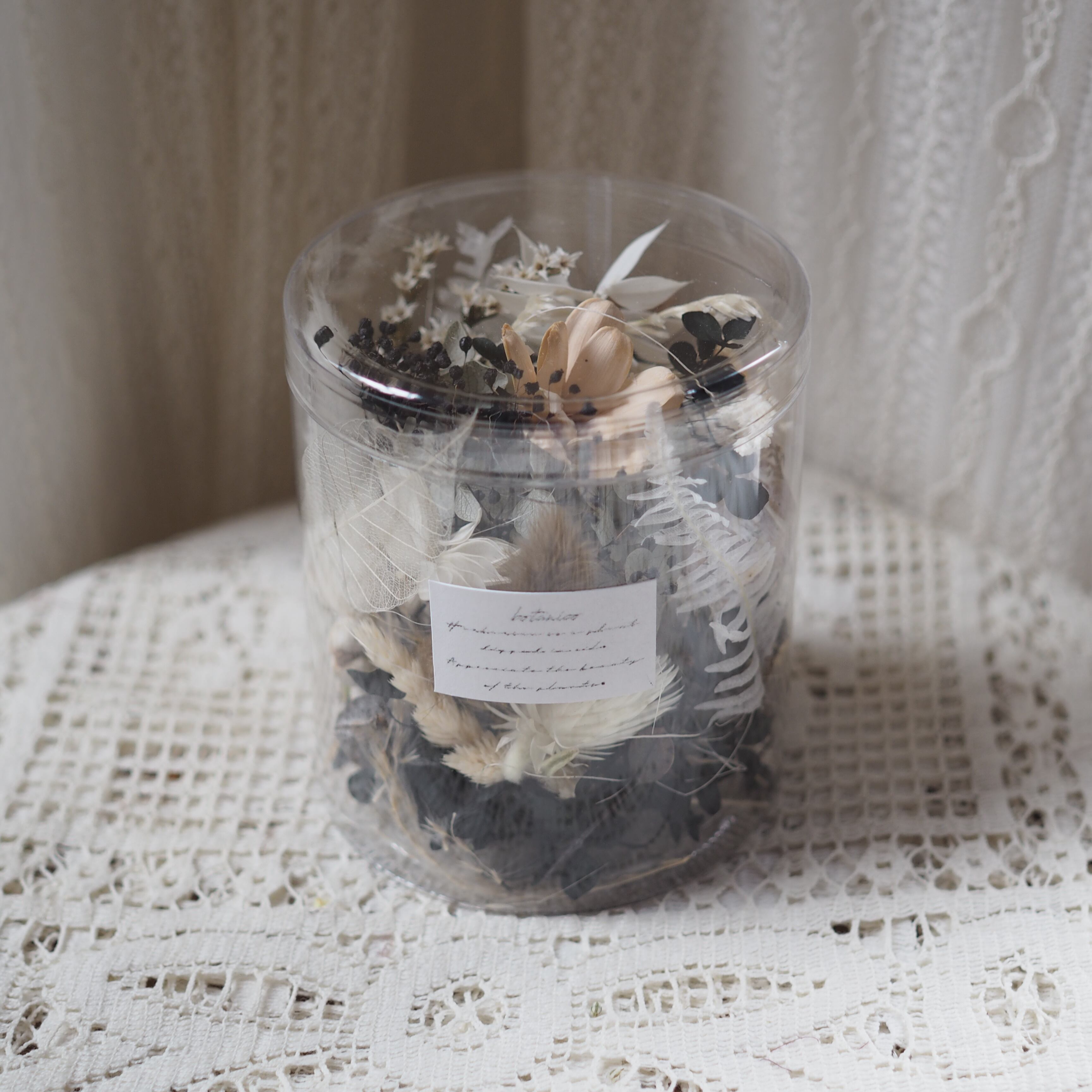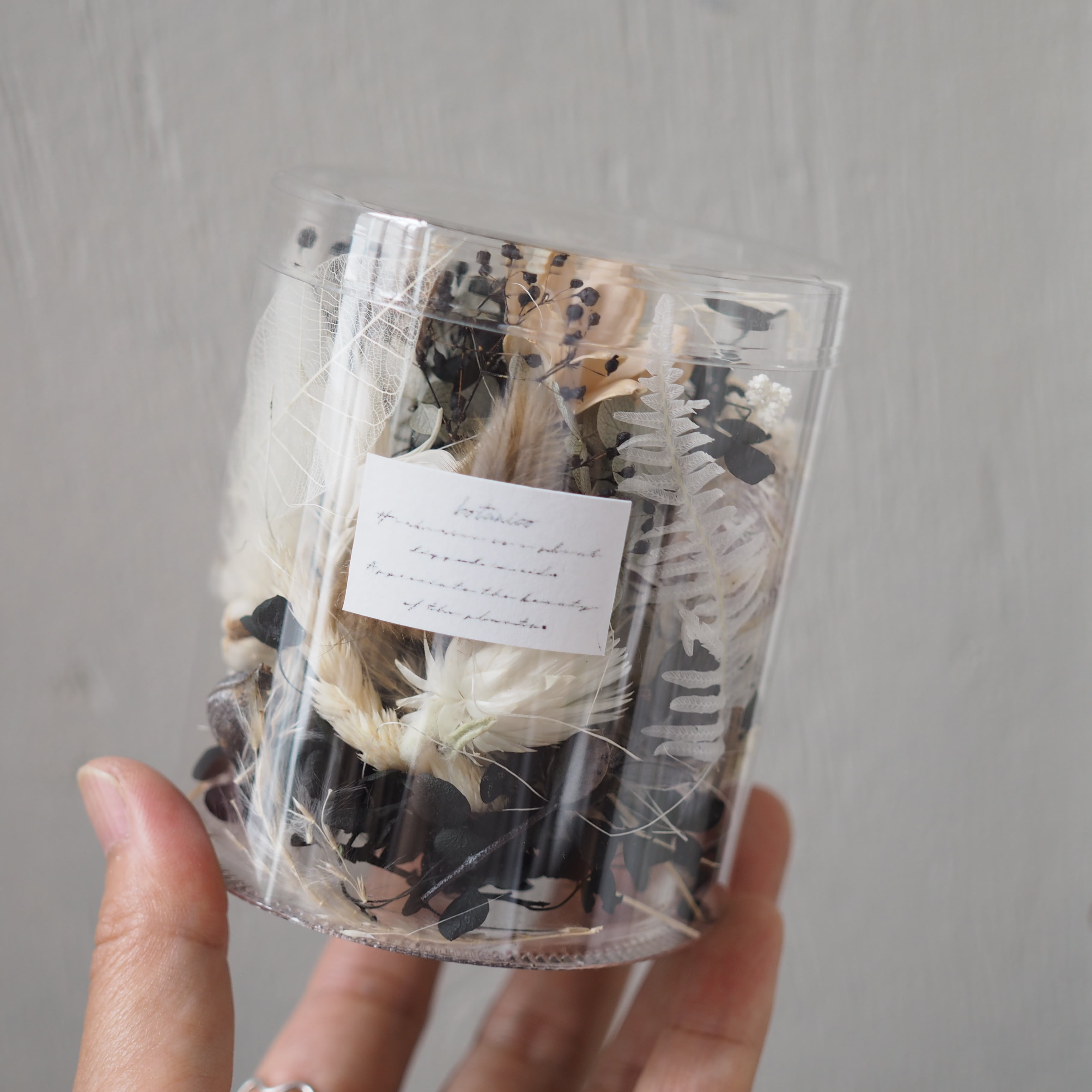 カップに可愛いドライフラワーをぎゅっと詰め込んだ、見た目にも香りにも癒されるポプリです。