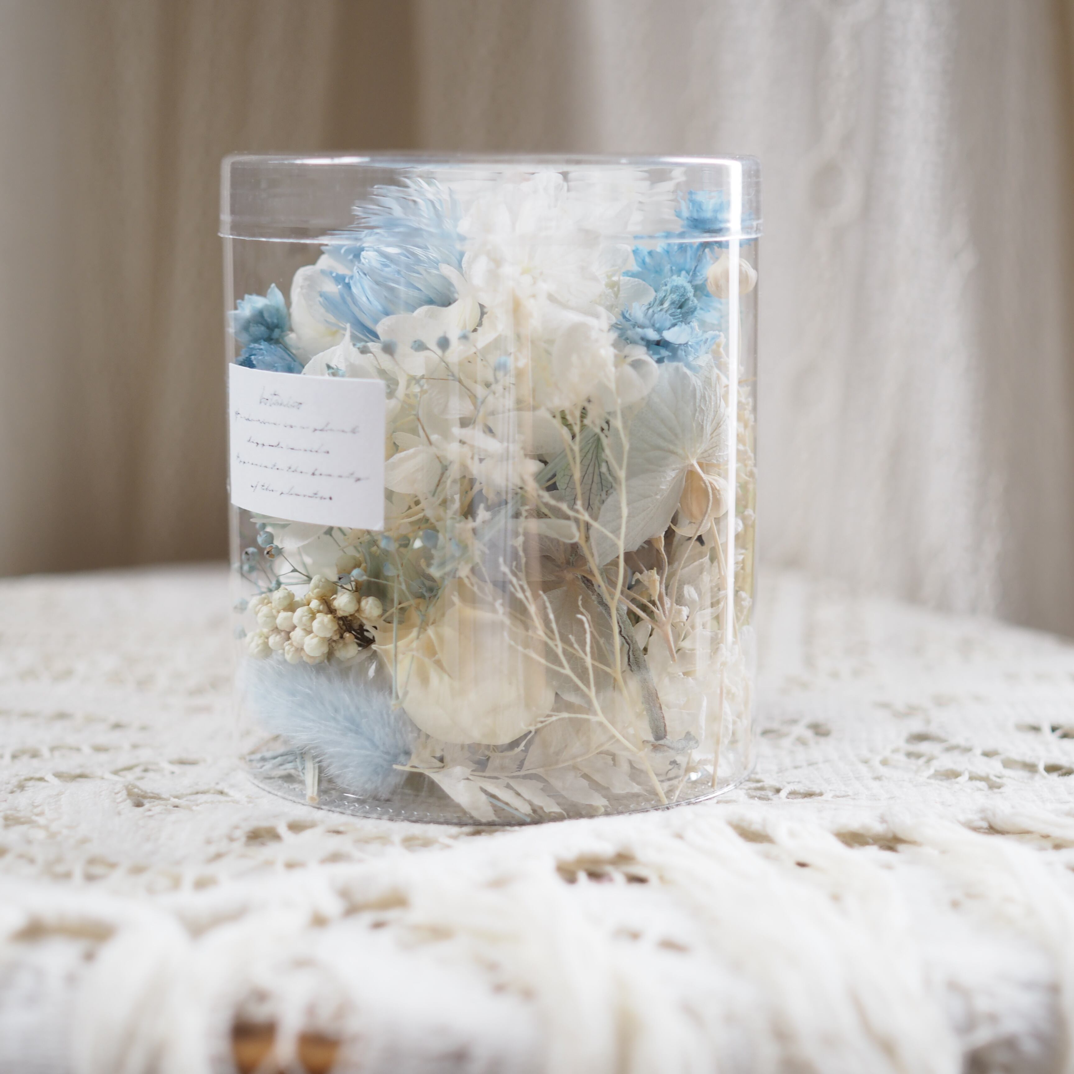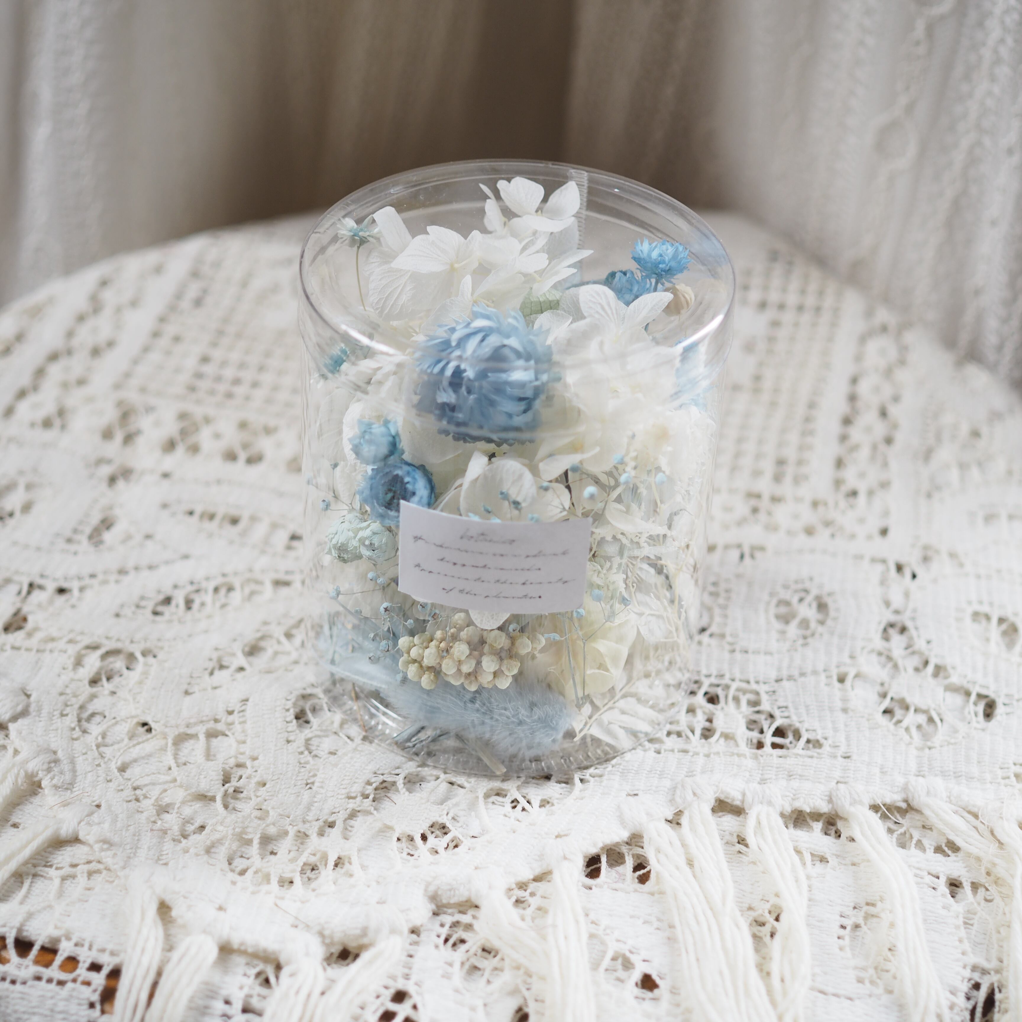 カップに可愛いドライフラワーをぎゅっと詰め込んだ、見た目にも香りにも癒されるポプリです。