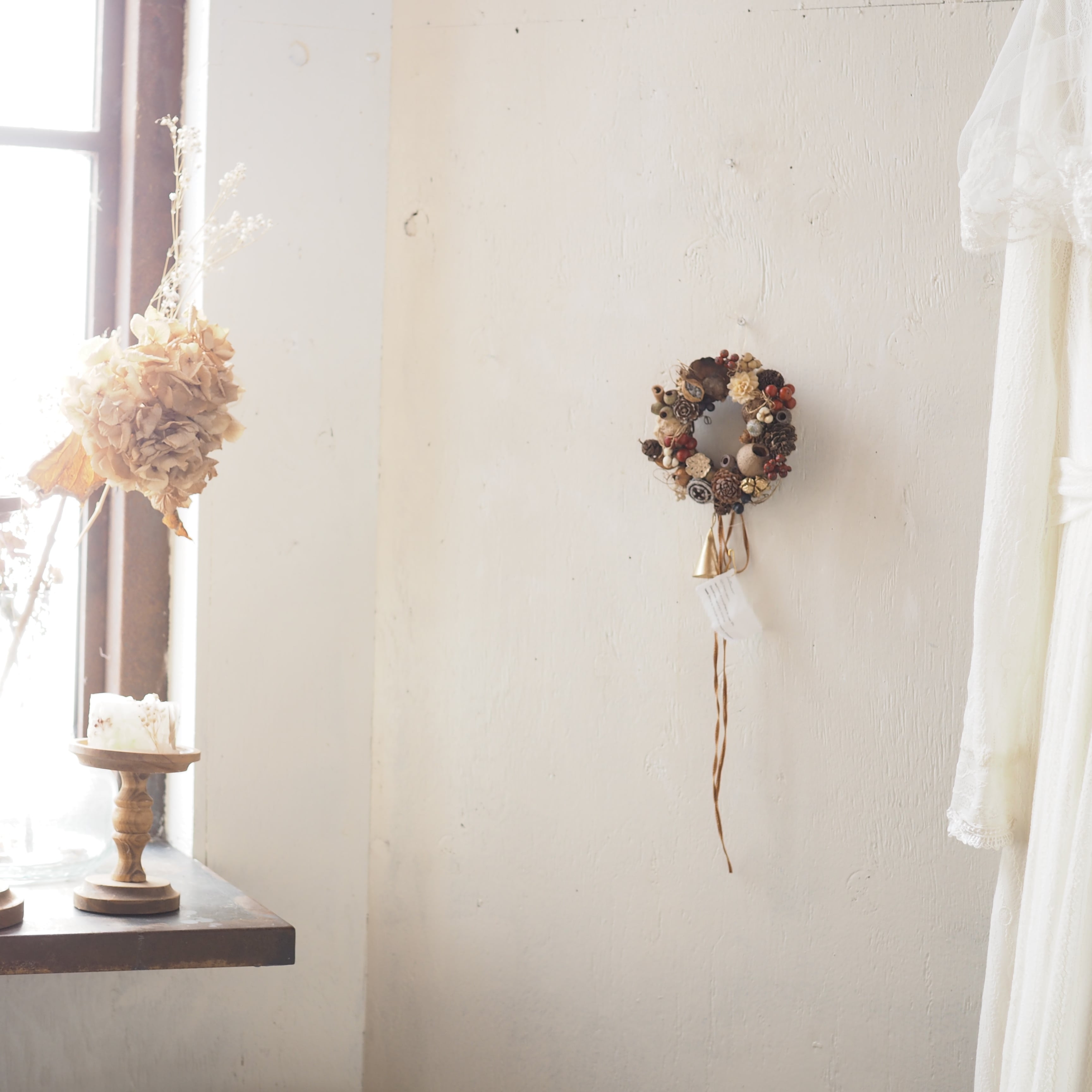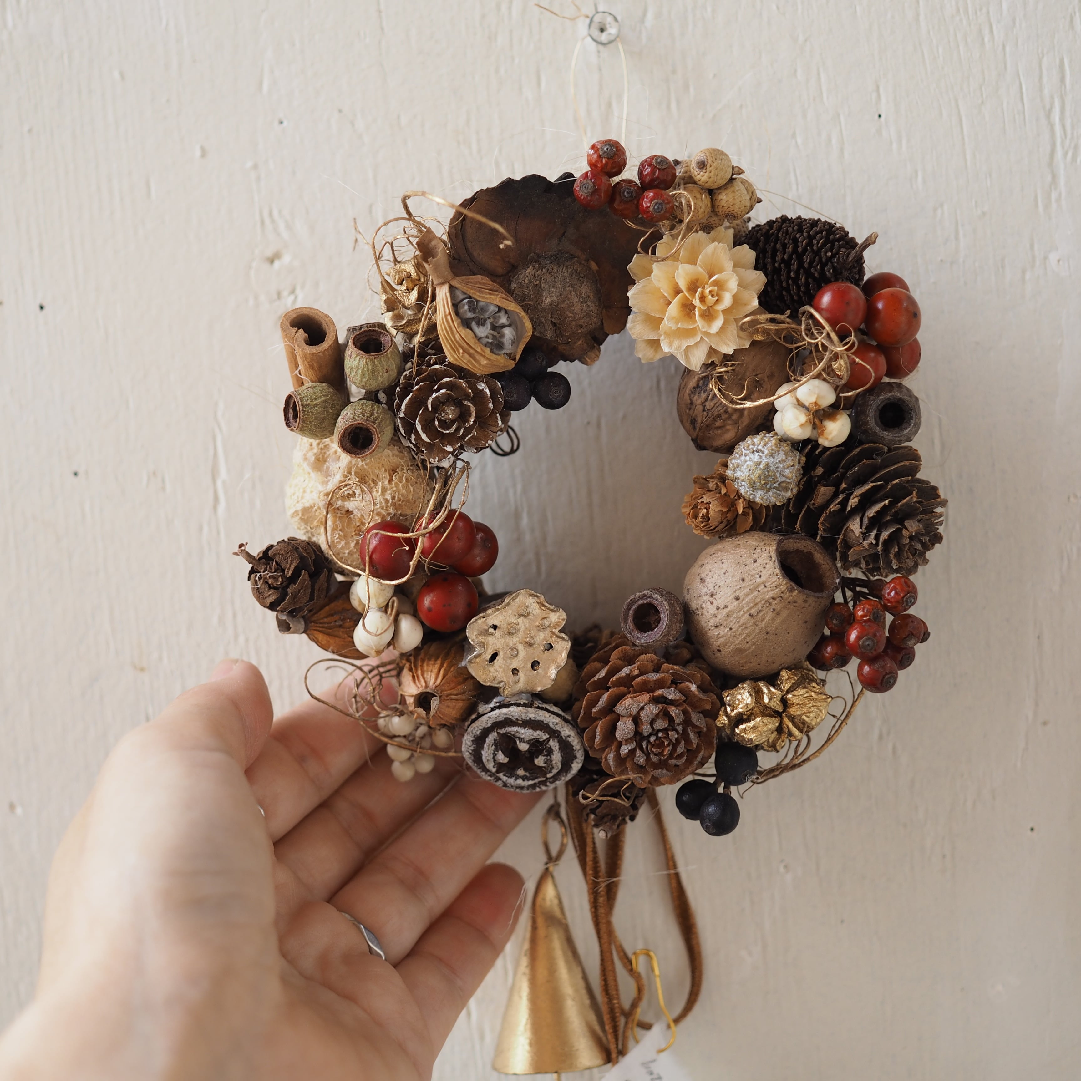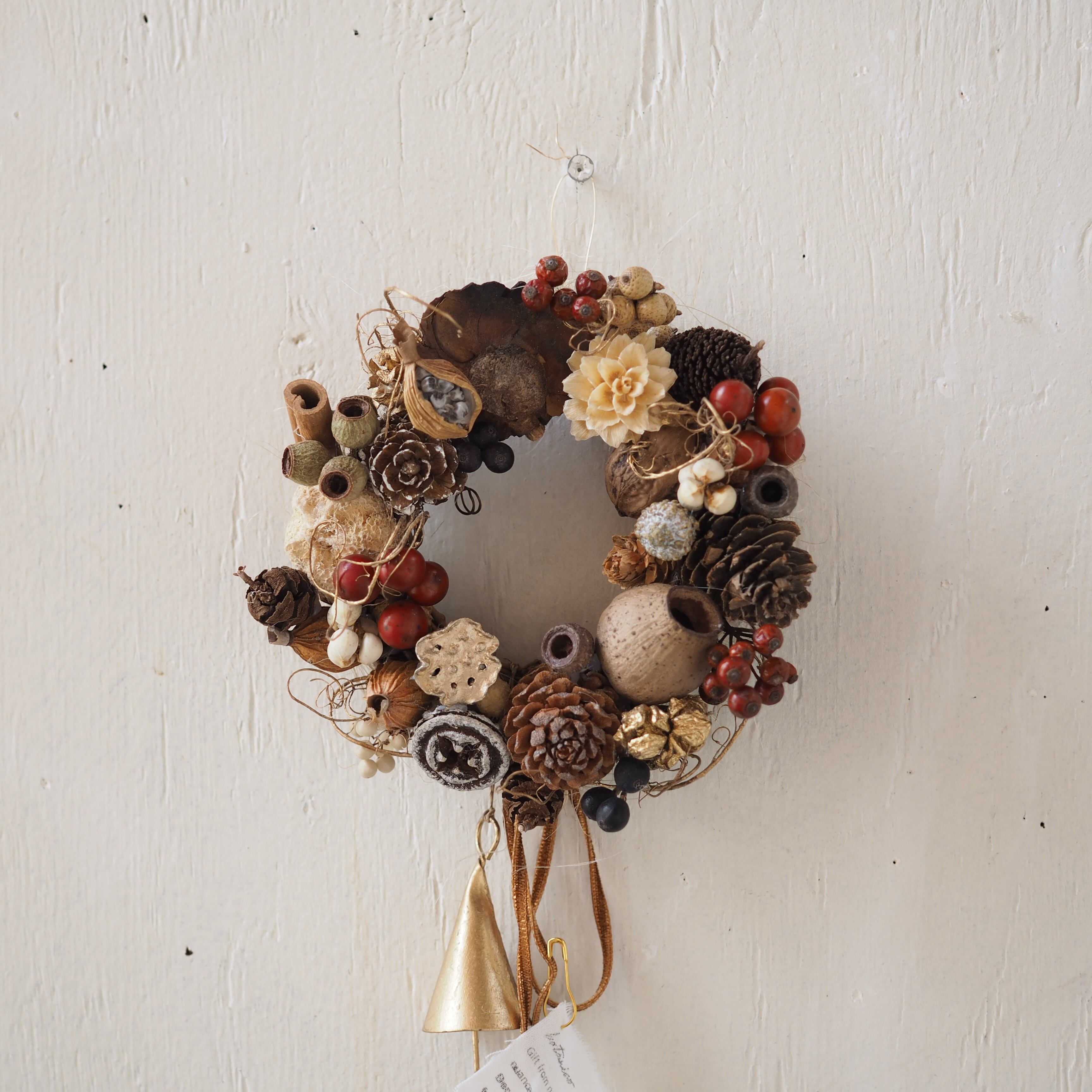 かわいい木の実をたっぷりあしらった秋冬らしいリースです。