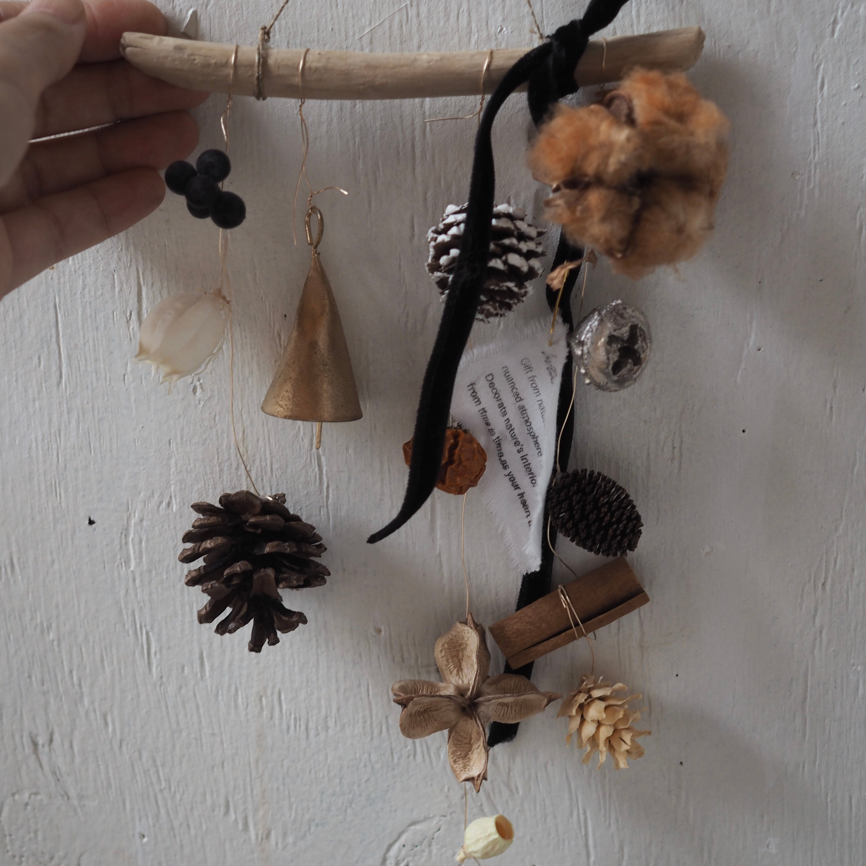 流木に垂らした独特のデザインで、ほっこり温かい雰囲気を演出します。