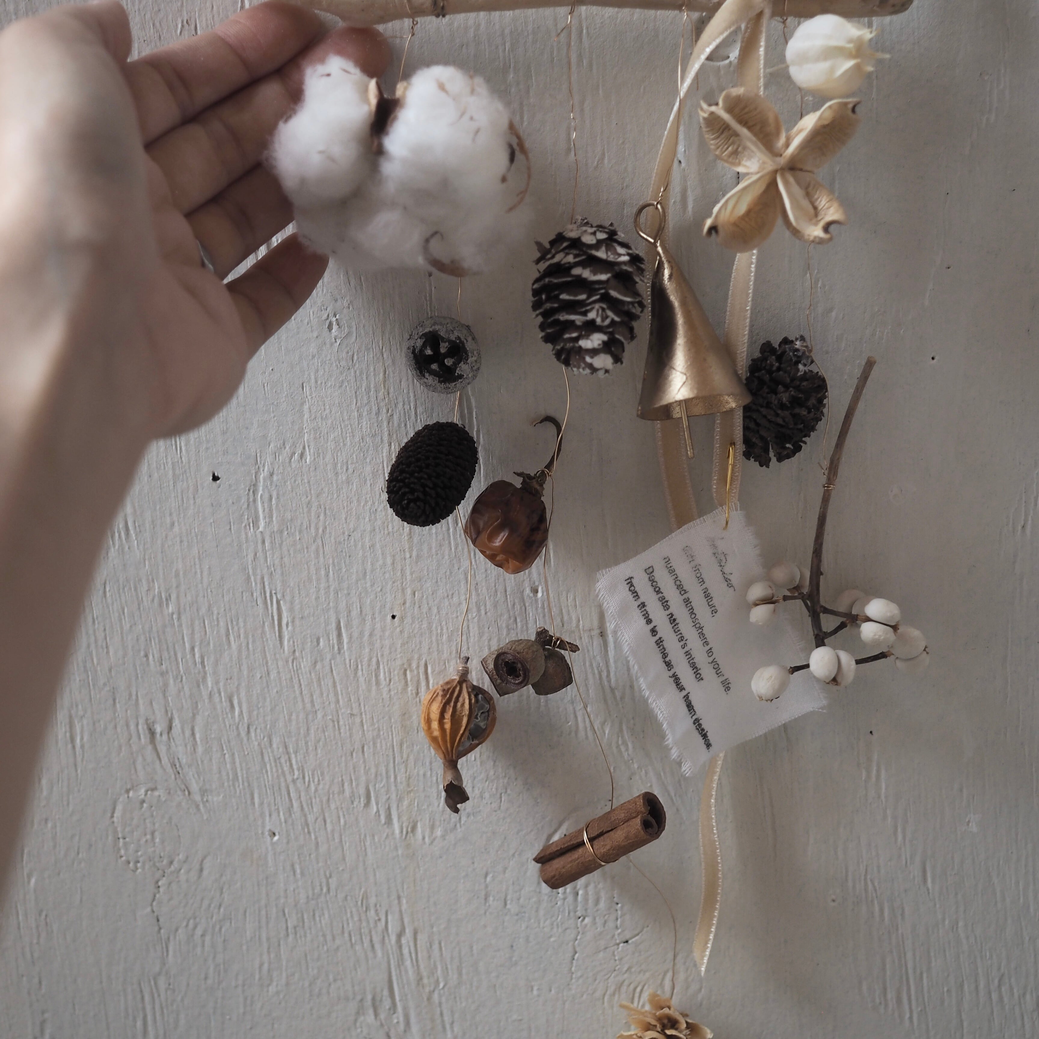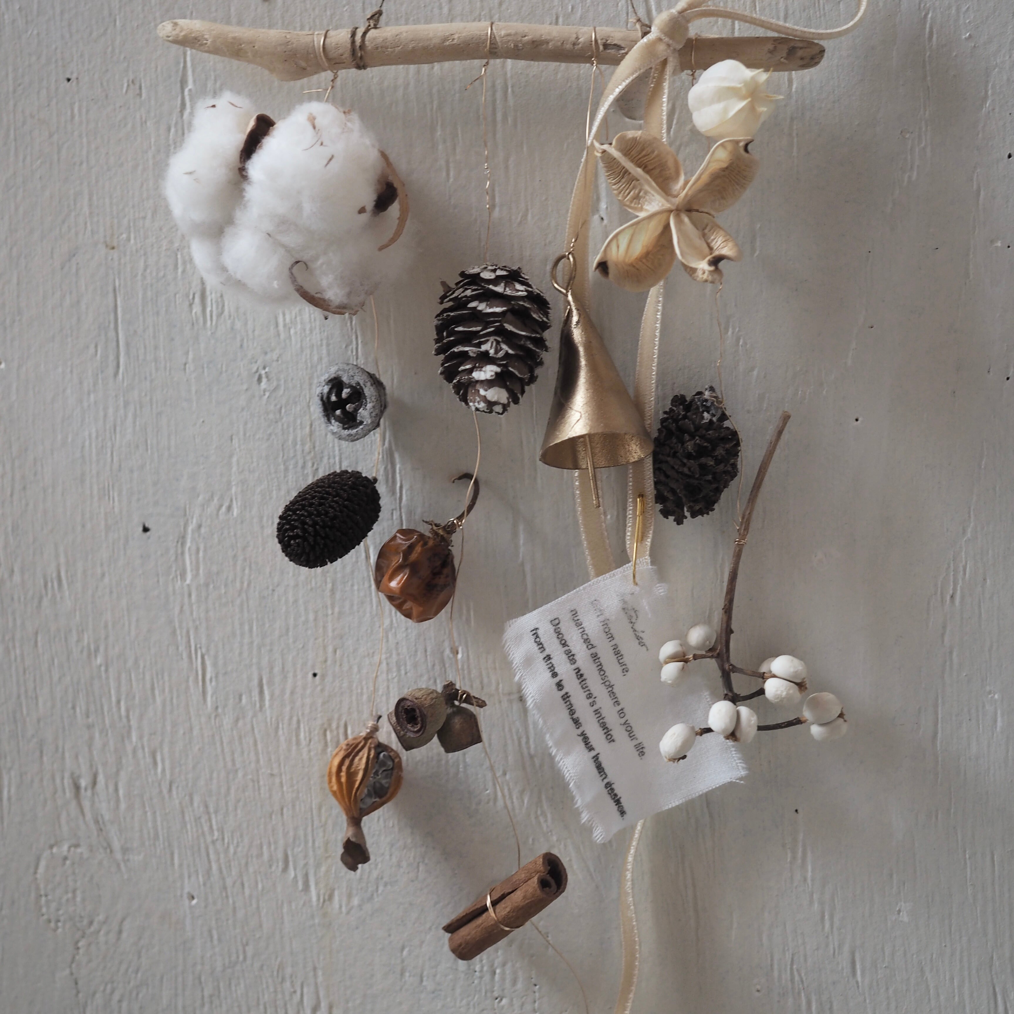 流木に垂らした独特のデザインで、ほっこり温かい雰囲気を演出します。