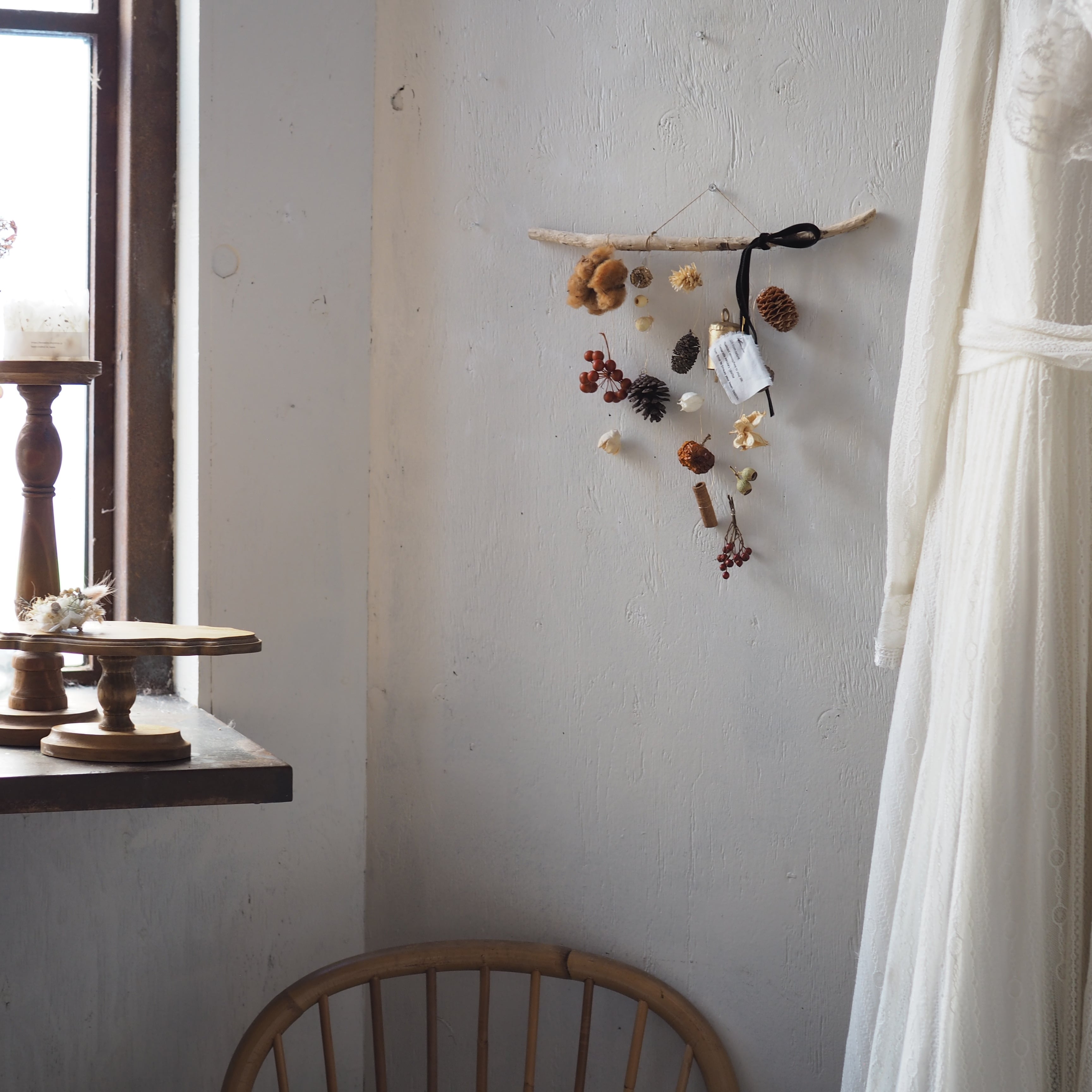 流木に垂らした独特のデザインで、ほっこり温かい雰囲気を演出します。