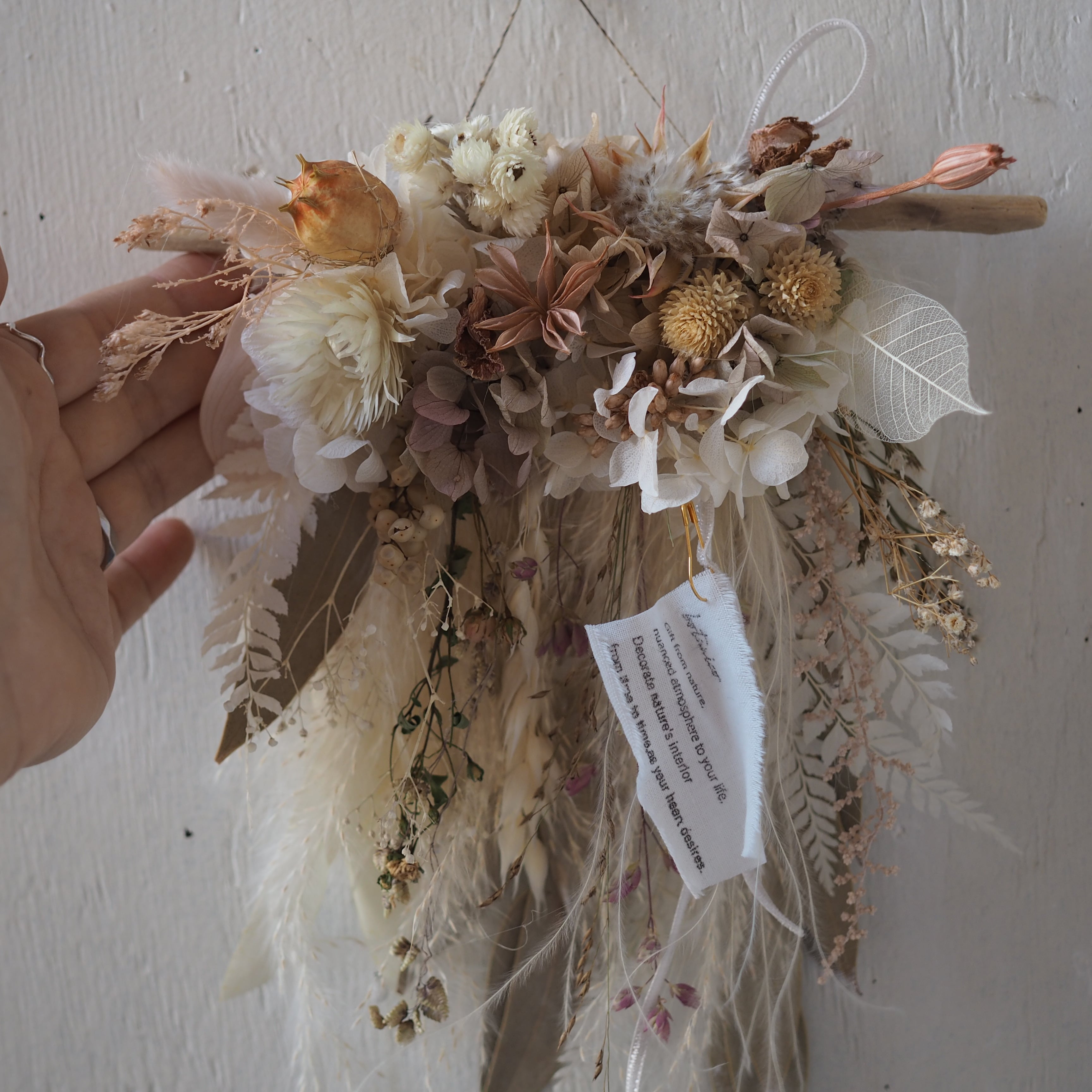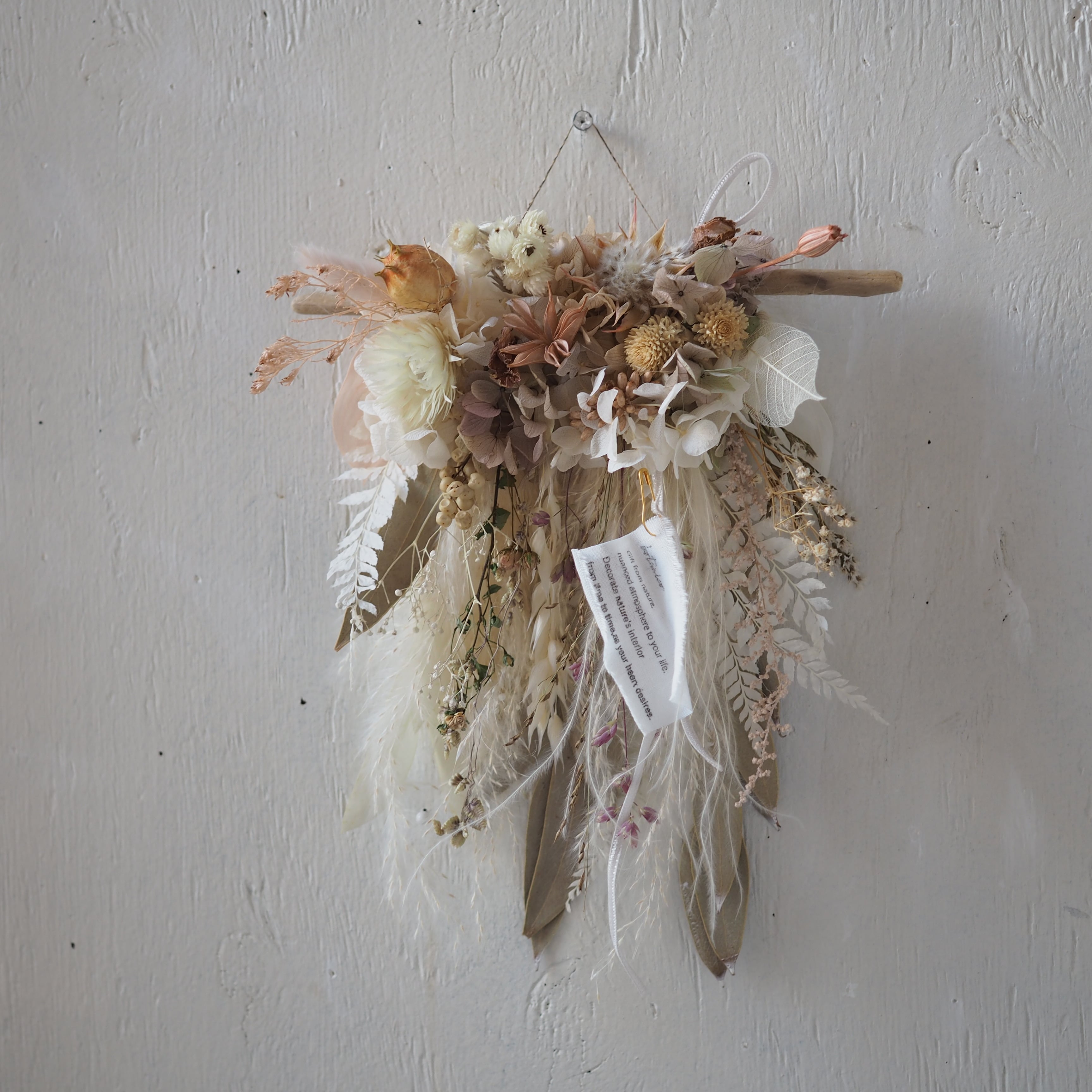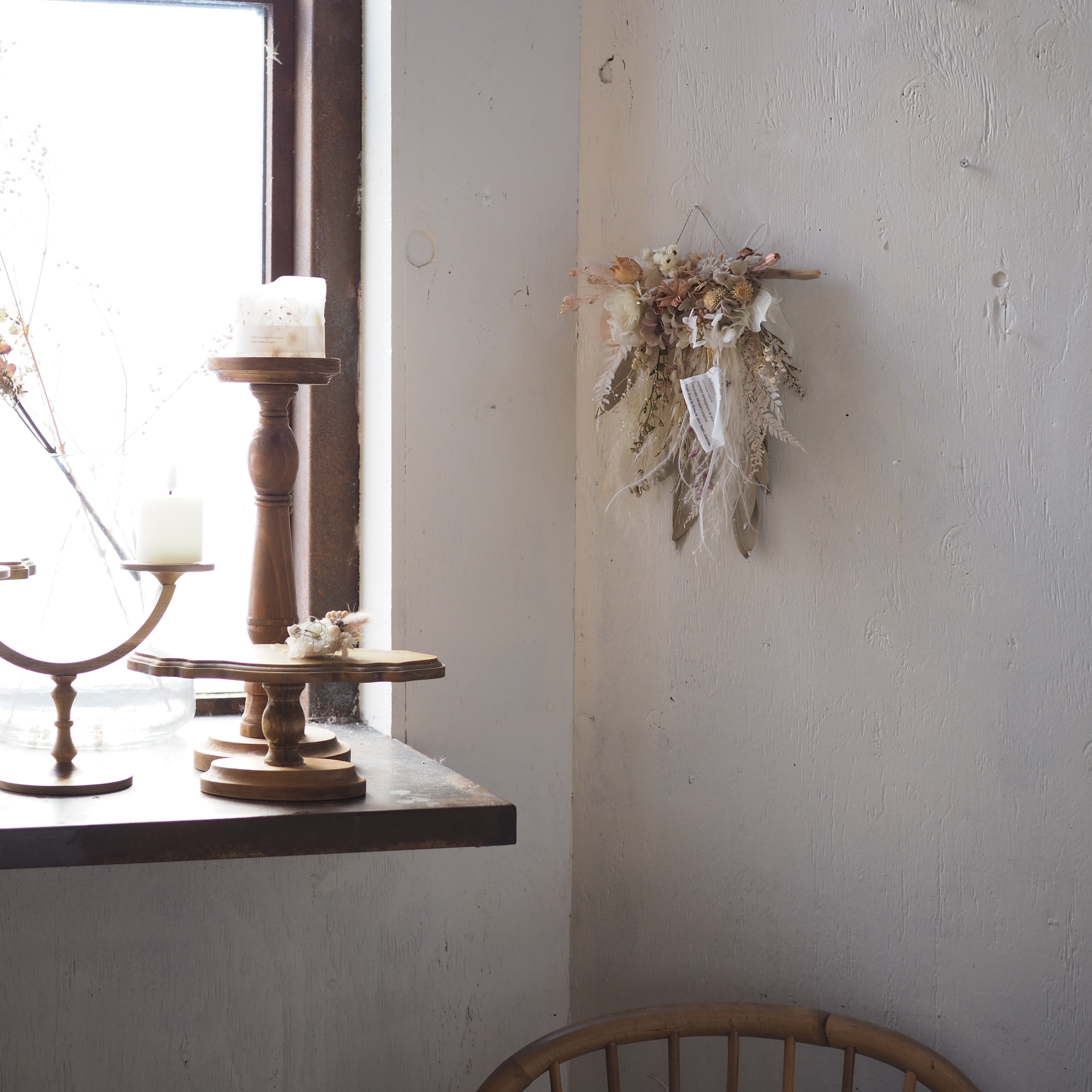ホワイトのお花をメインに、立体的に重ねてデザインしたアレンジです。