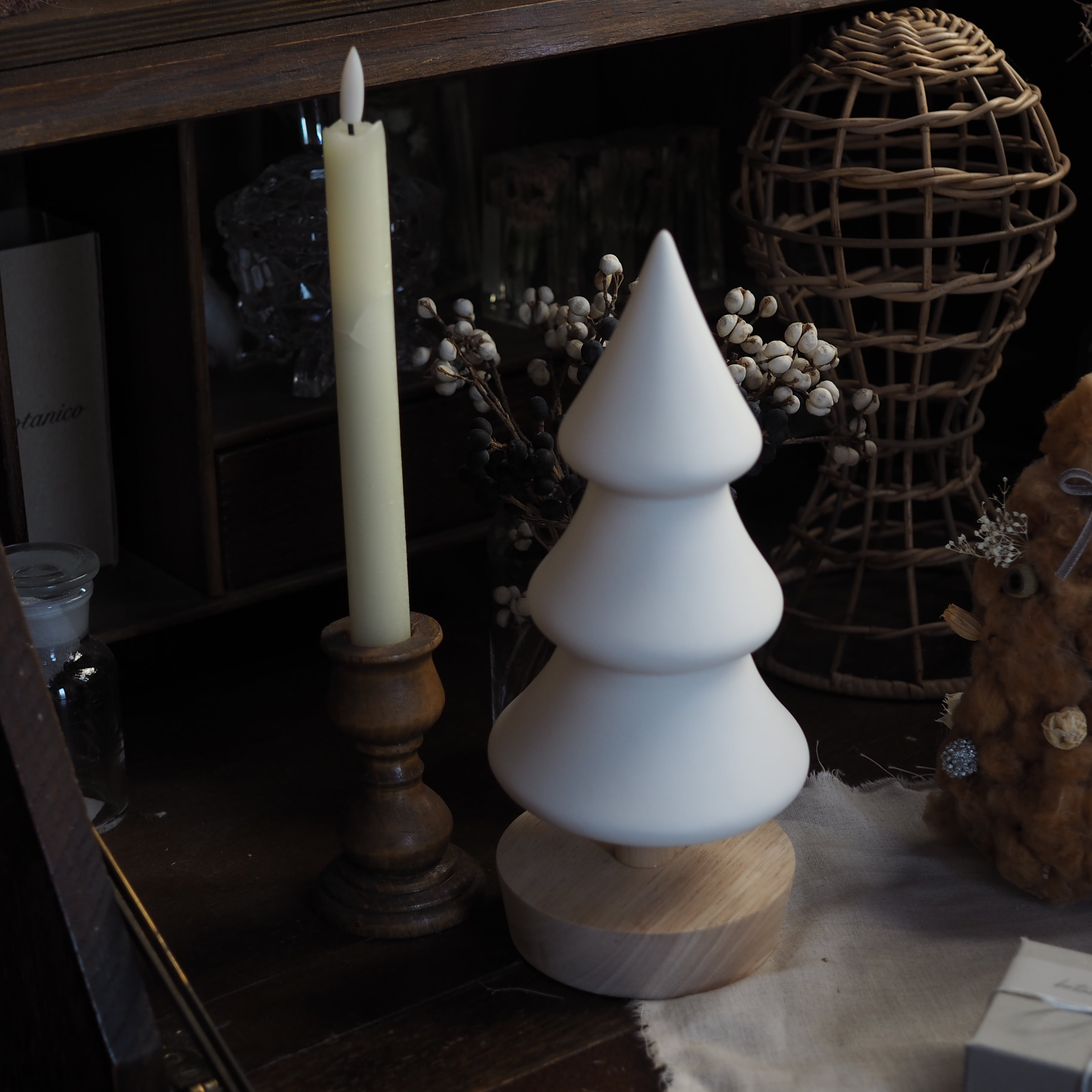真っ白な半磁器で作られた、素朴な風合いのスタンド型ツリーです。