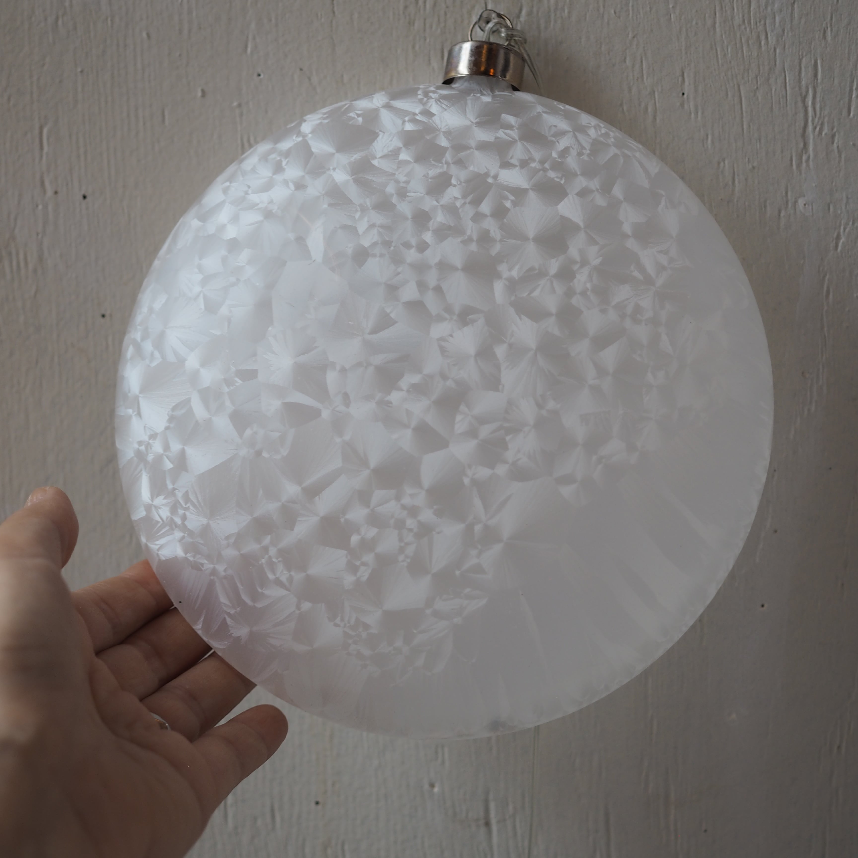 すりガラスのような特殊加工が施されたハンギングオーナメント。