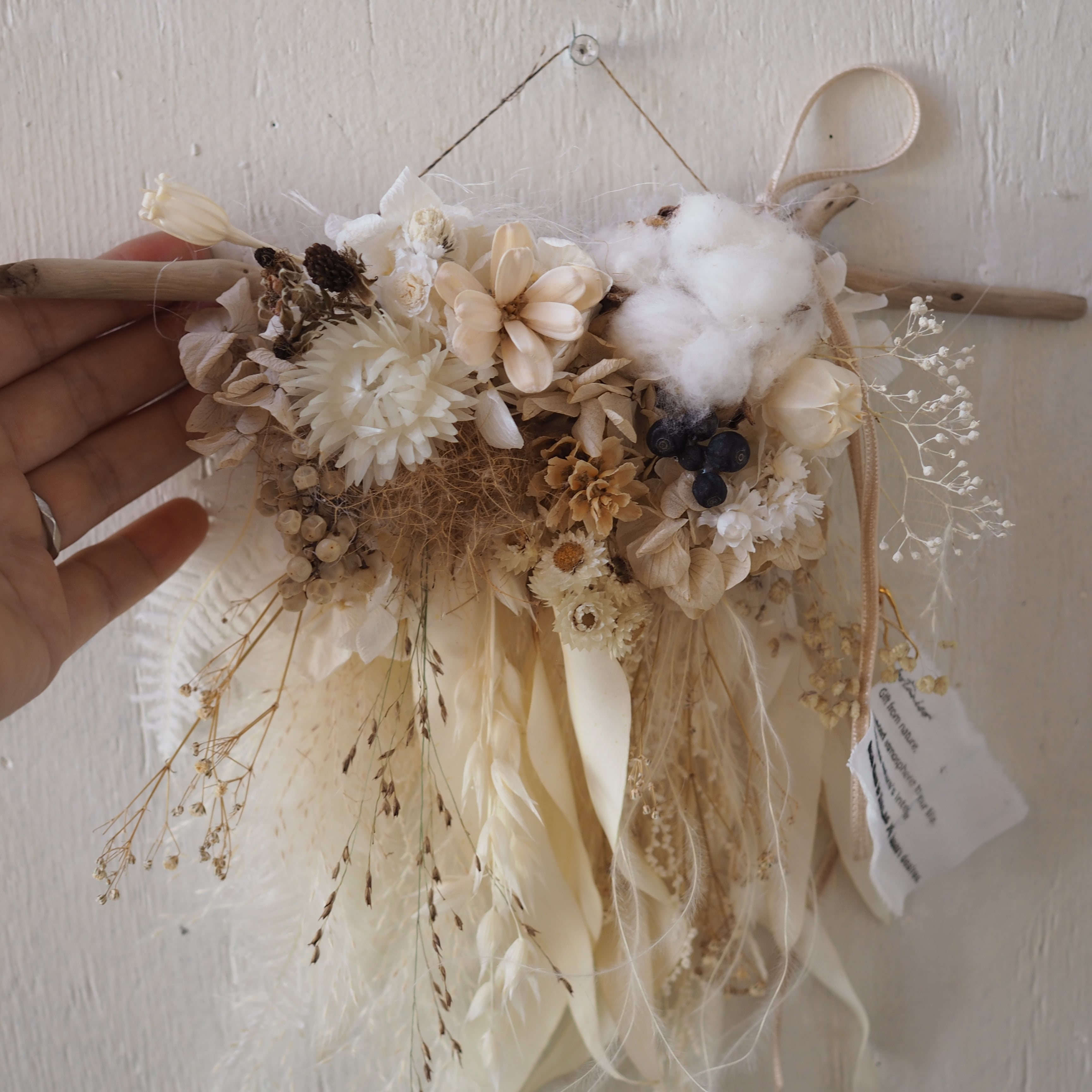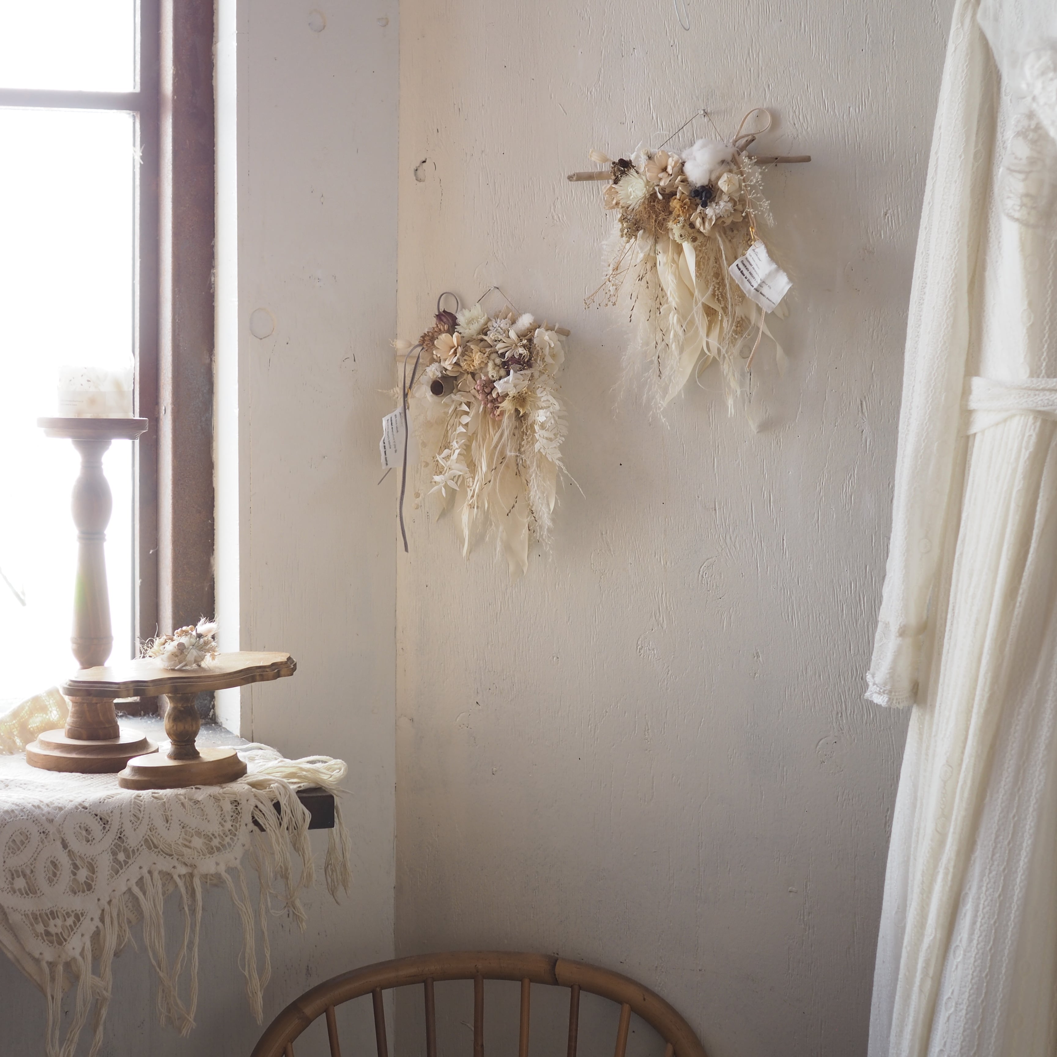 ホワイトのお花をメインに、立体的に重ねてデザインしたアレンジです。