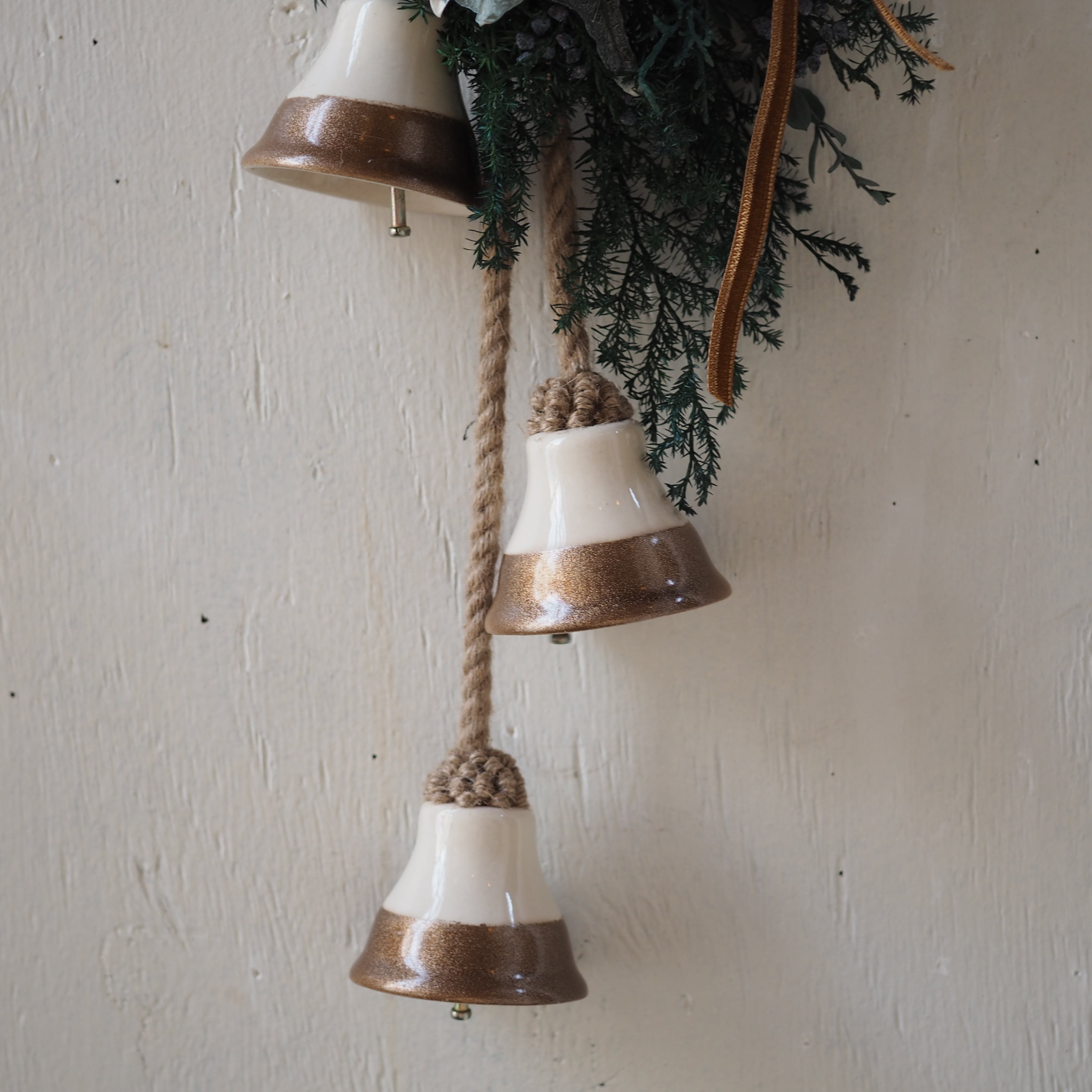 陶器のベルがやさしい音を奏でる、シックなオーナメントスワッグ。