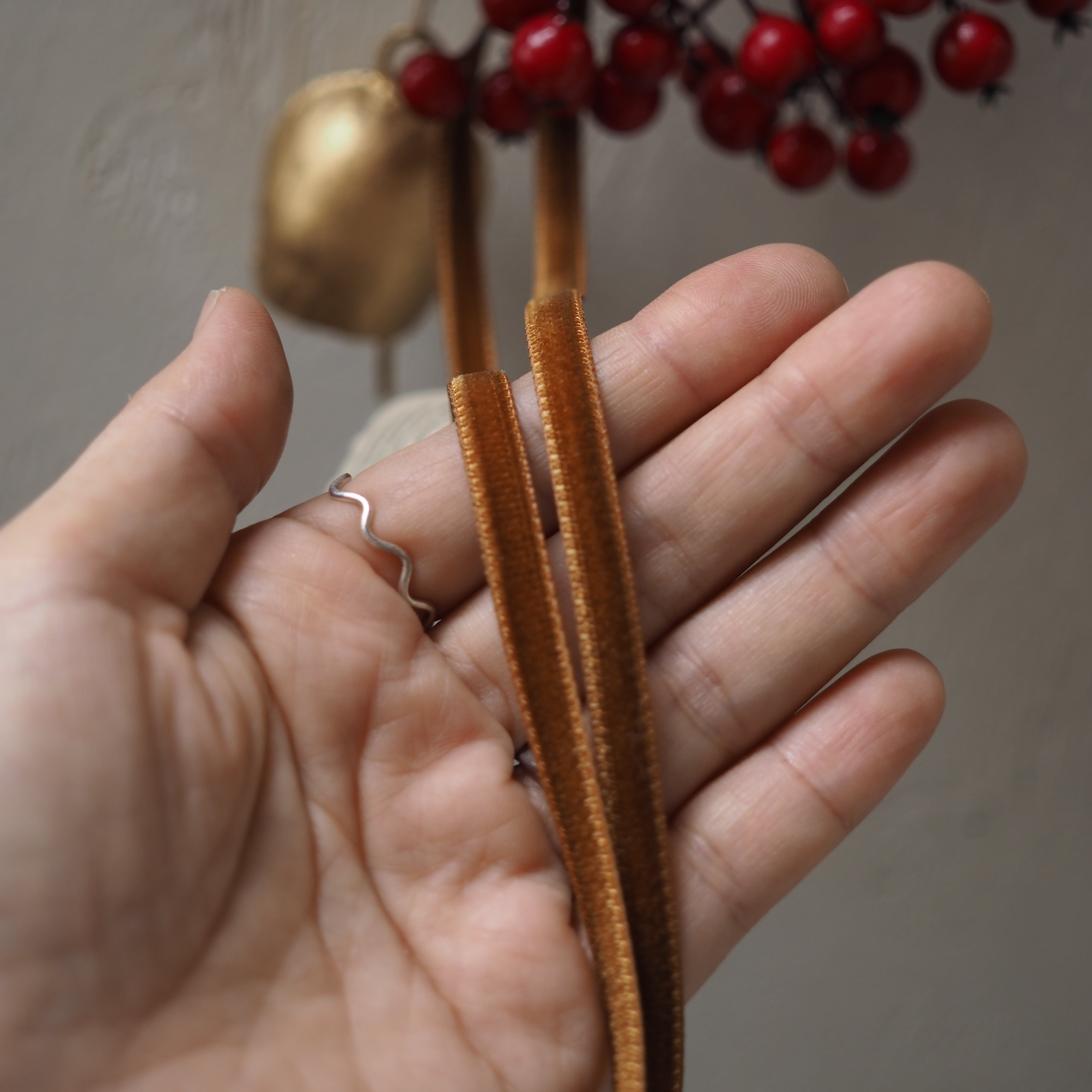上質なベルベットリボンを贅沢に使い、アクセントにカウベルをあしらいました。