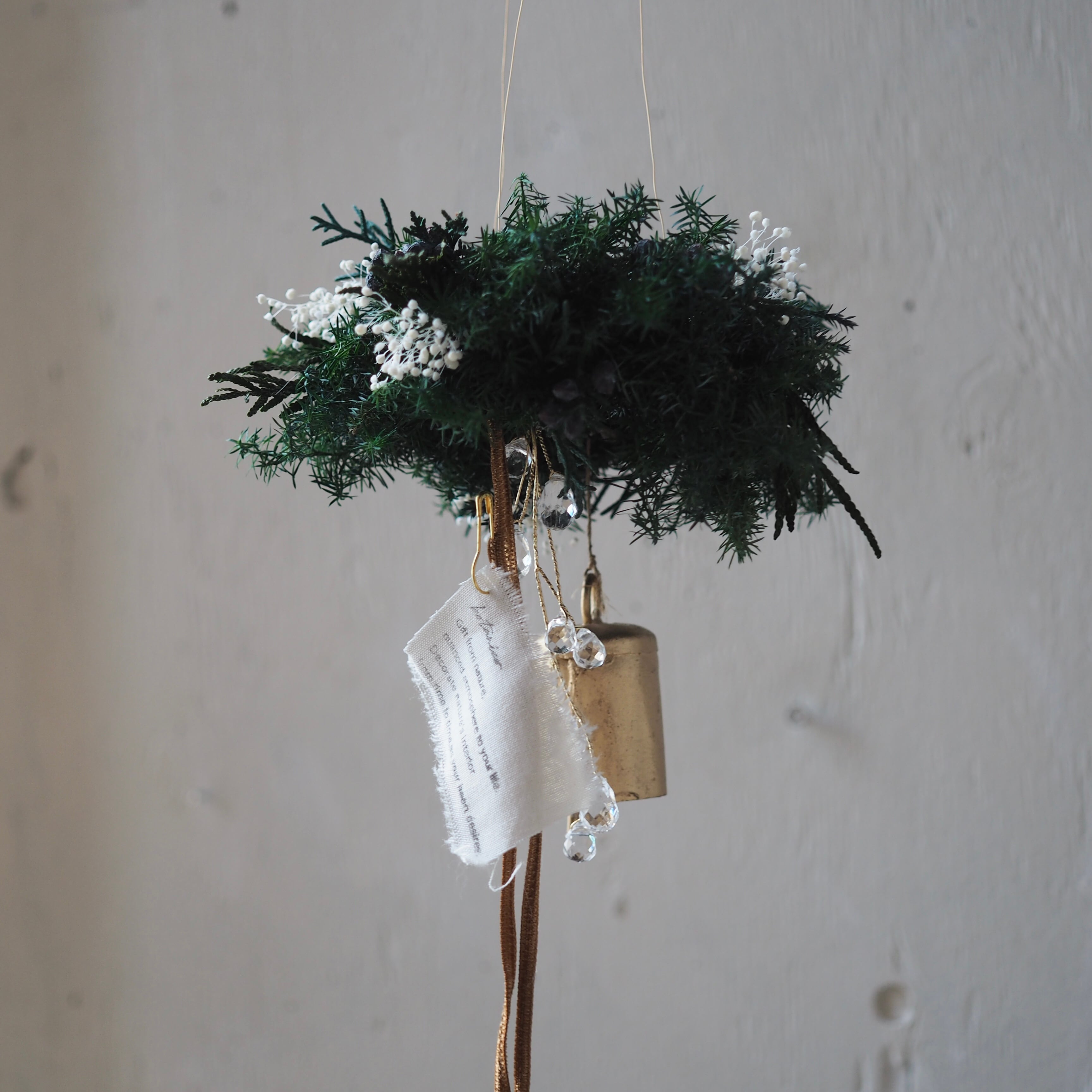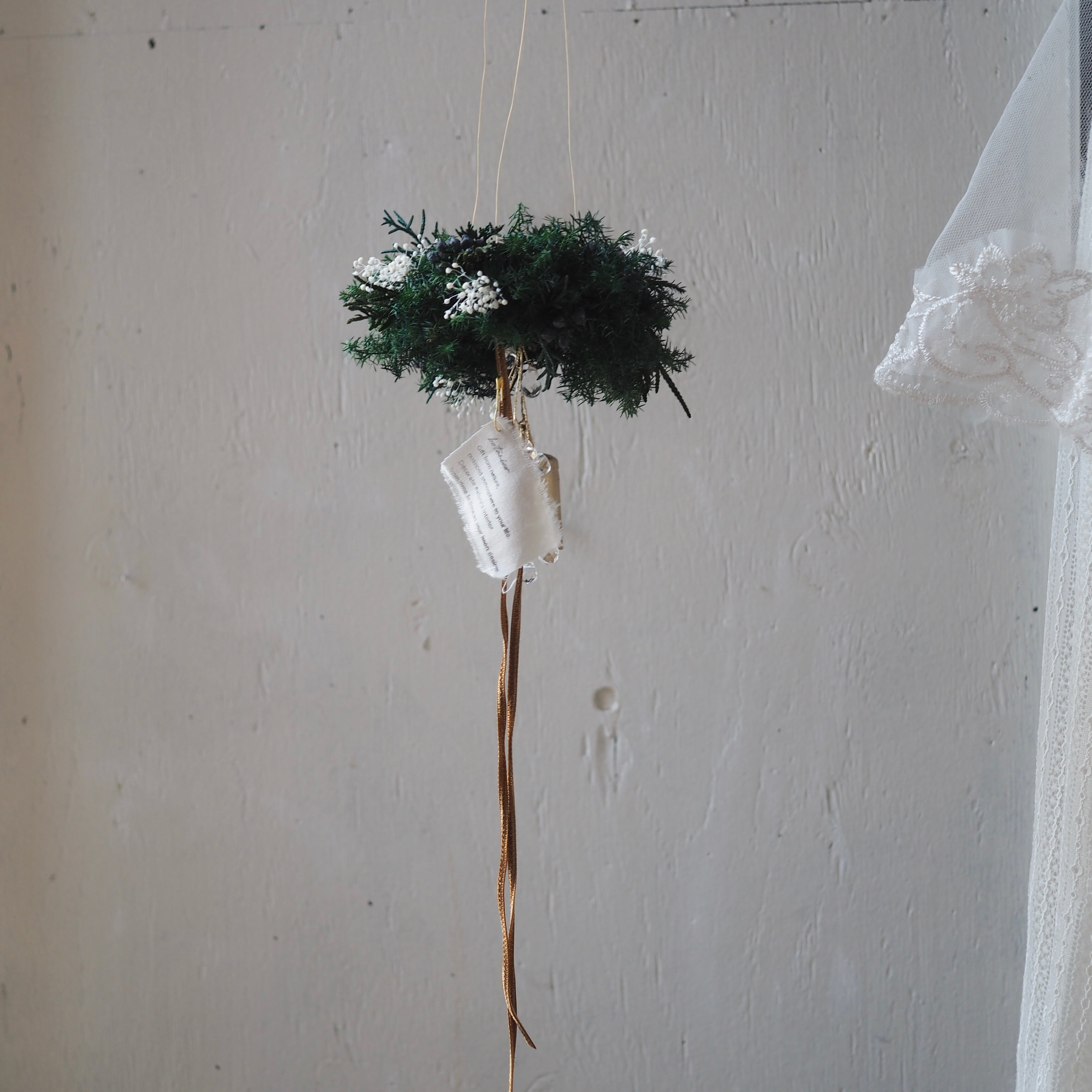 美しいグリーン色が魅力の プリザーブド針葉樹をたっぷりと使い、ところどころにかすみ草をあしらい、上品で柔らかな雰囲気に仕上げました。