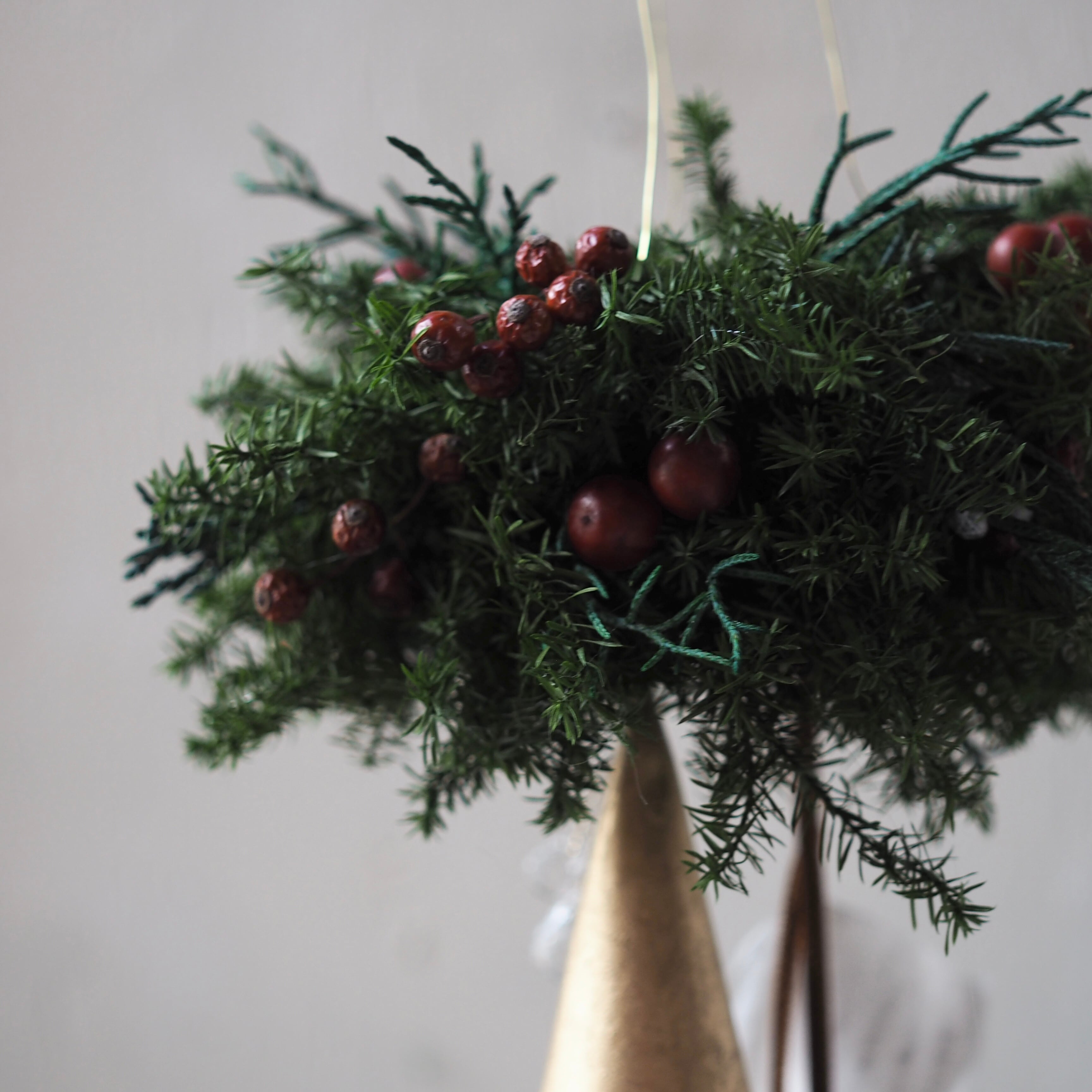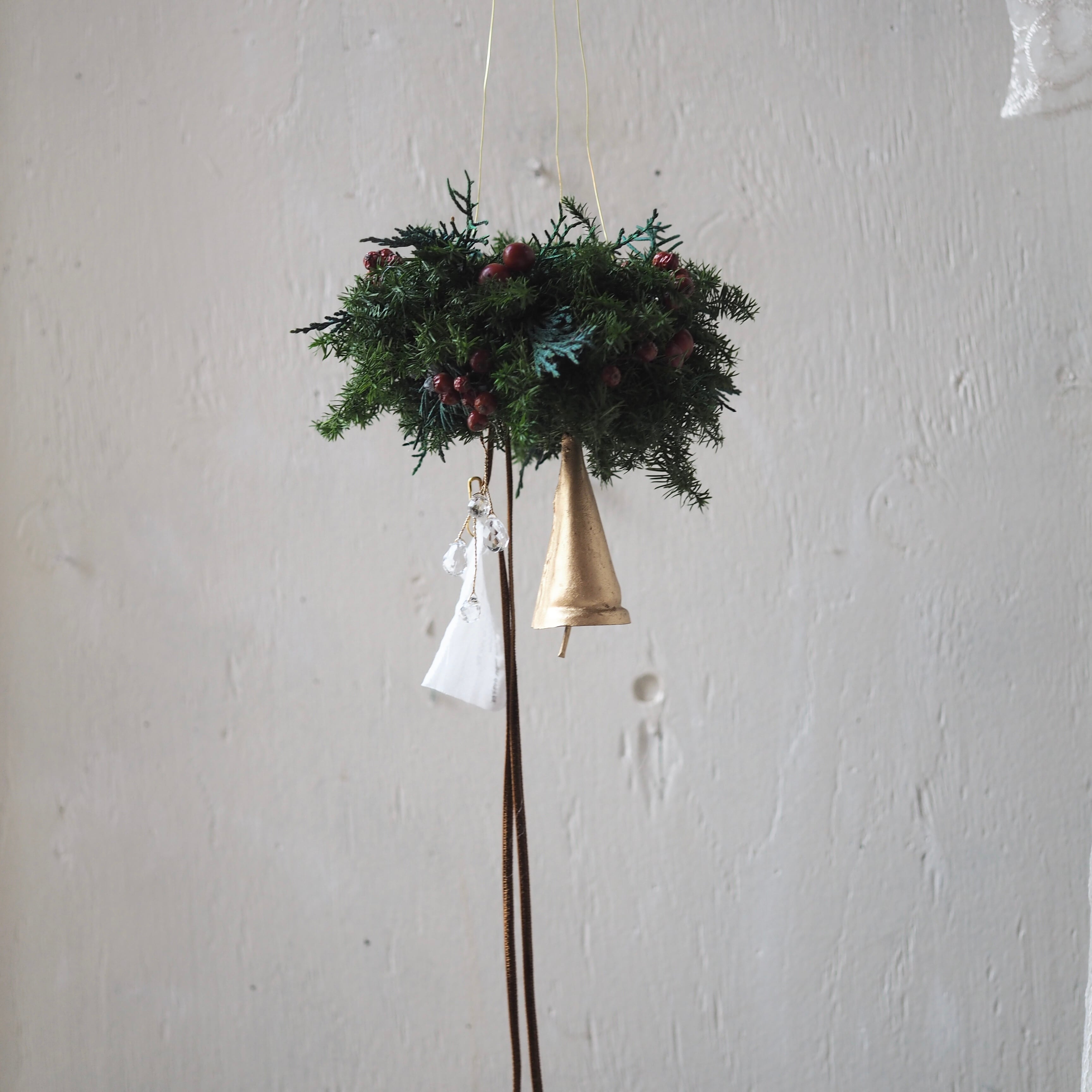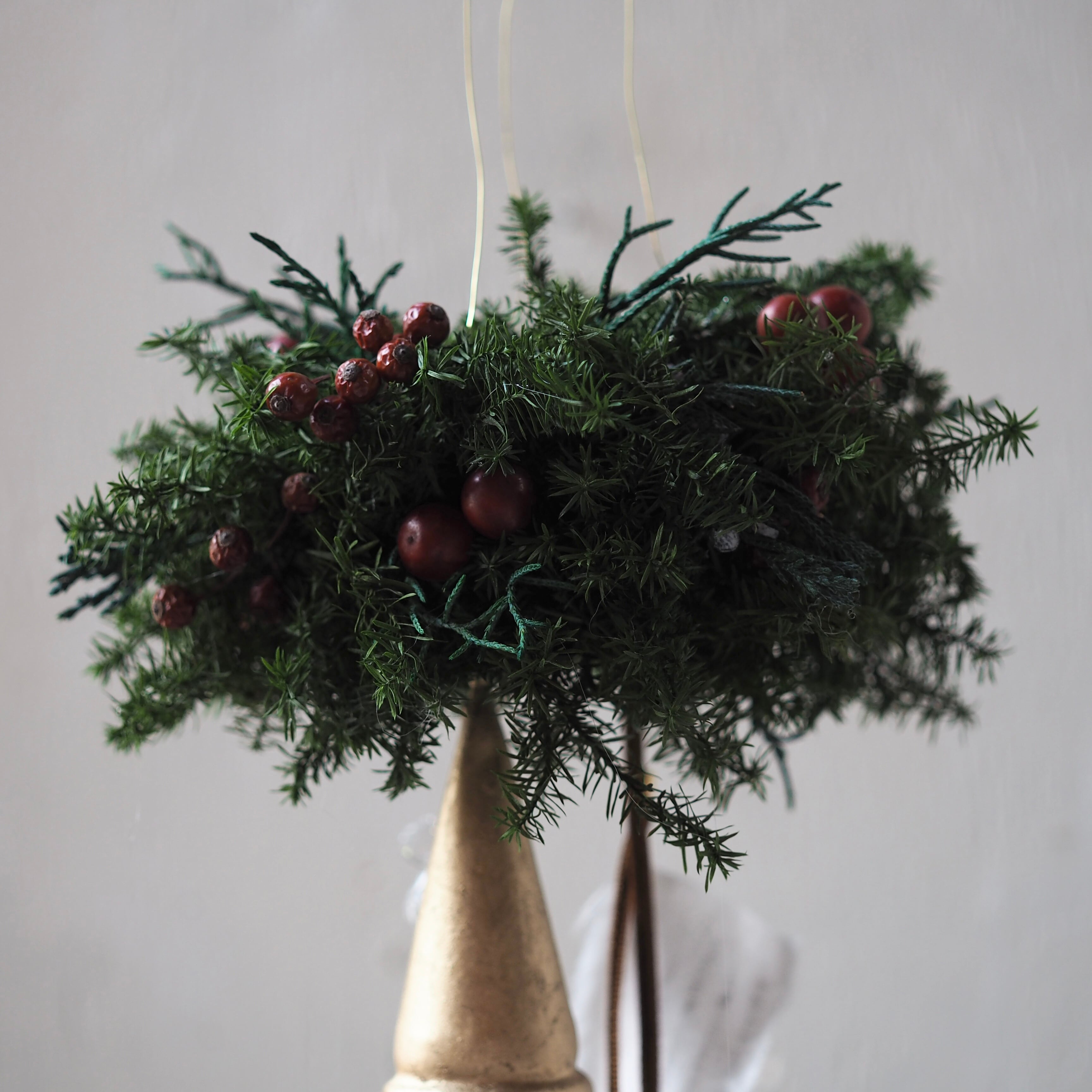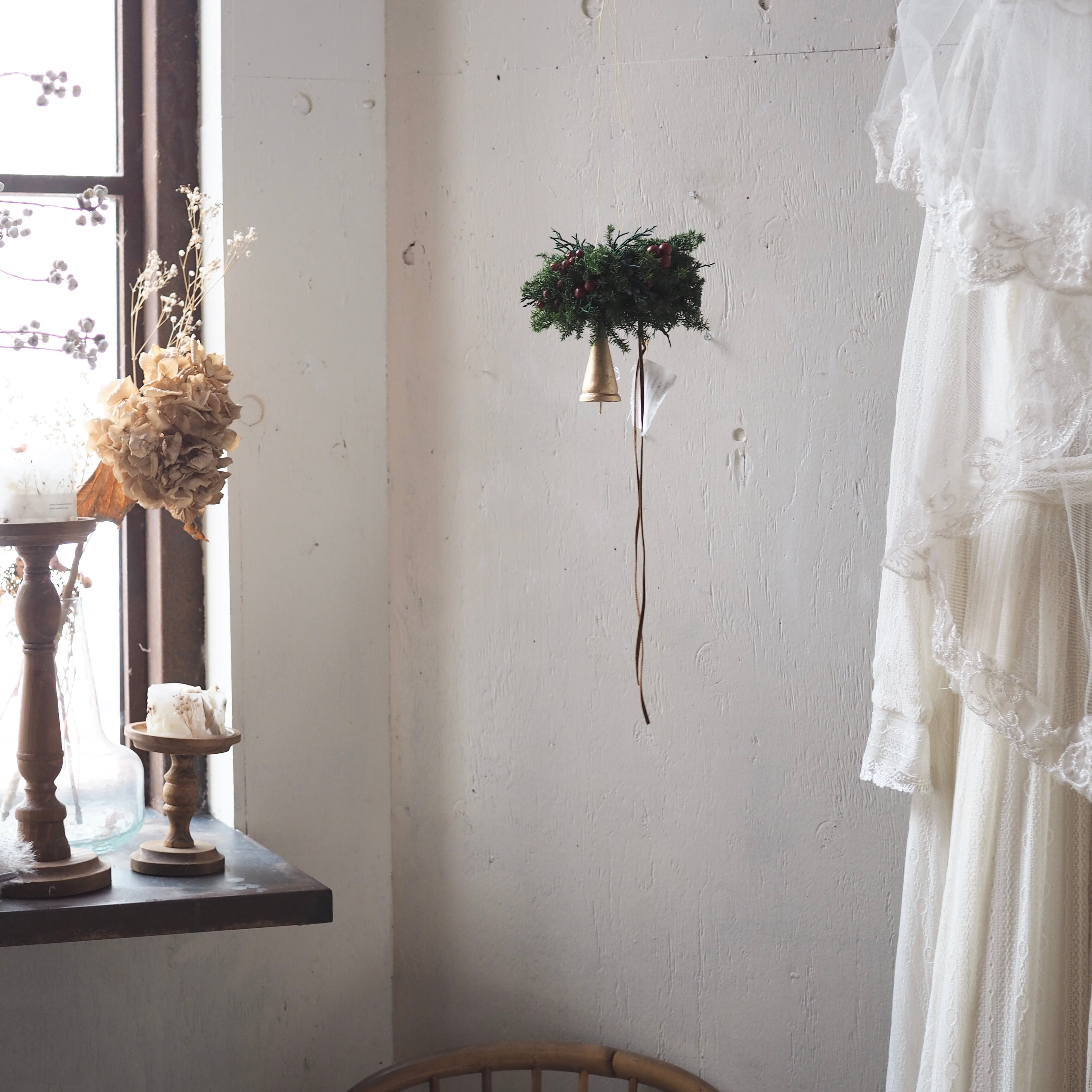 美しいグリーン色が魅力の プリザーブド針葉樹をたっぷりと使い、ところどころにかすみ草をあしらい、上品で柔らかな雰囲気に仕上げました。