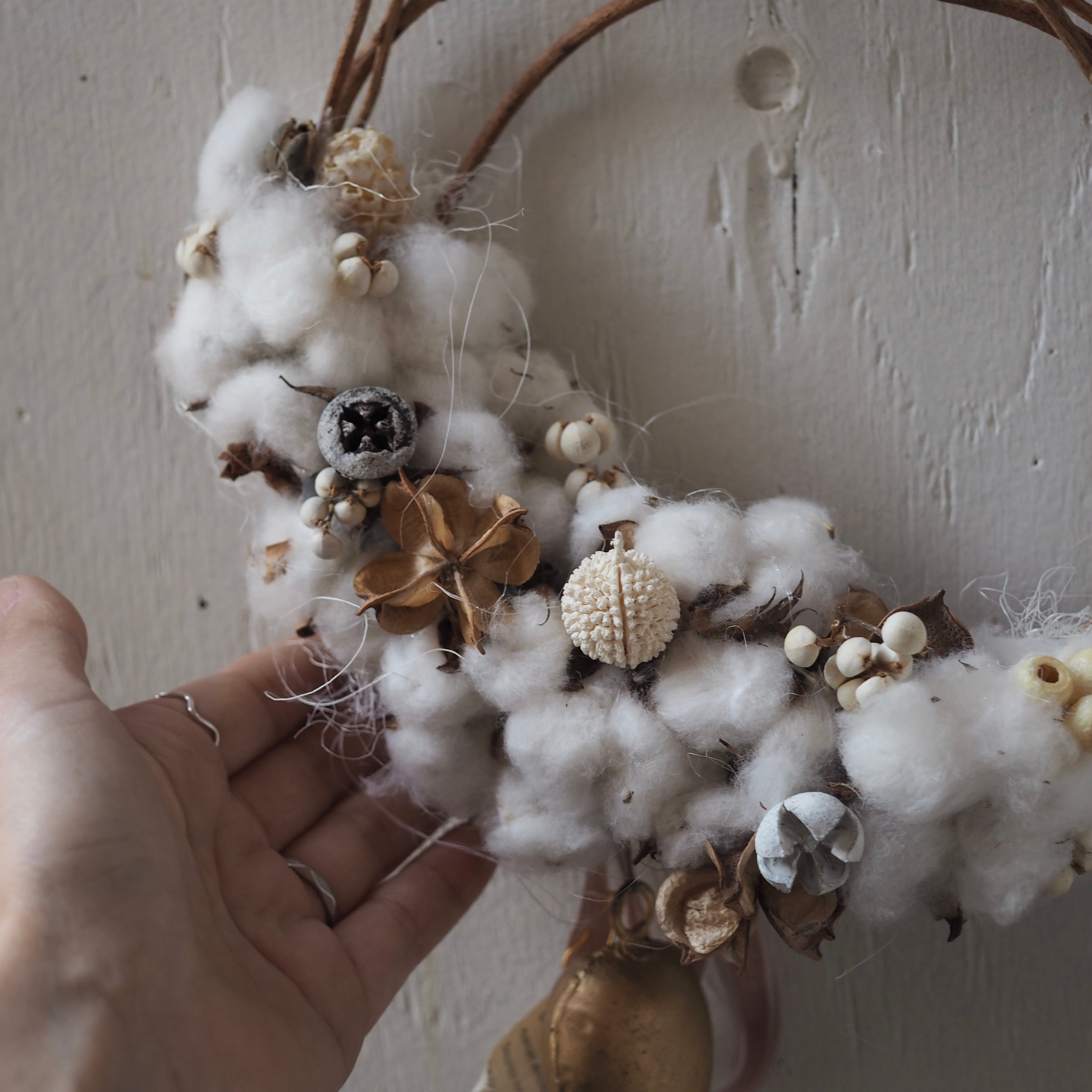 柔らかな風合いのコットンフラワーを贅沢に使用しており、お部屋をあたたかく彩ります。