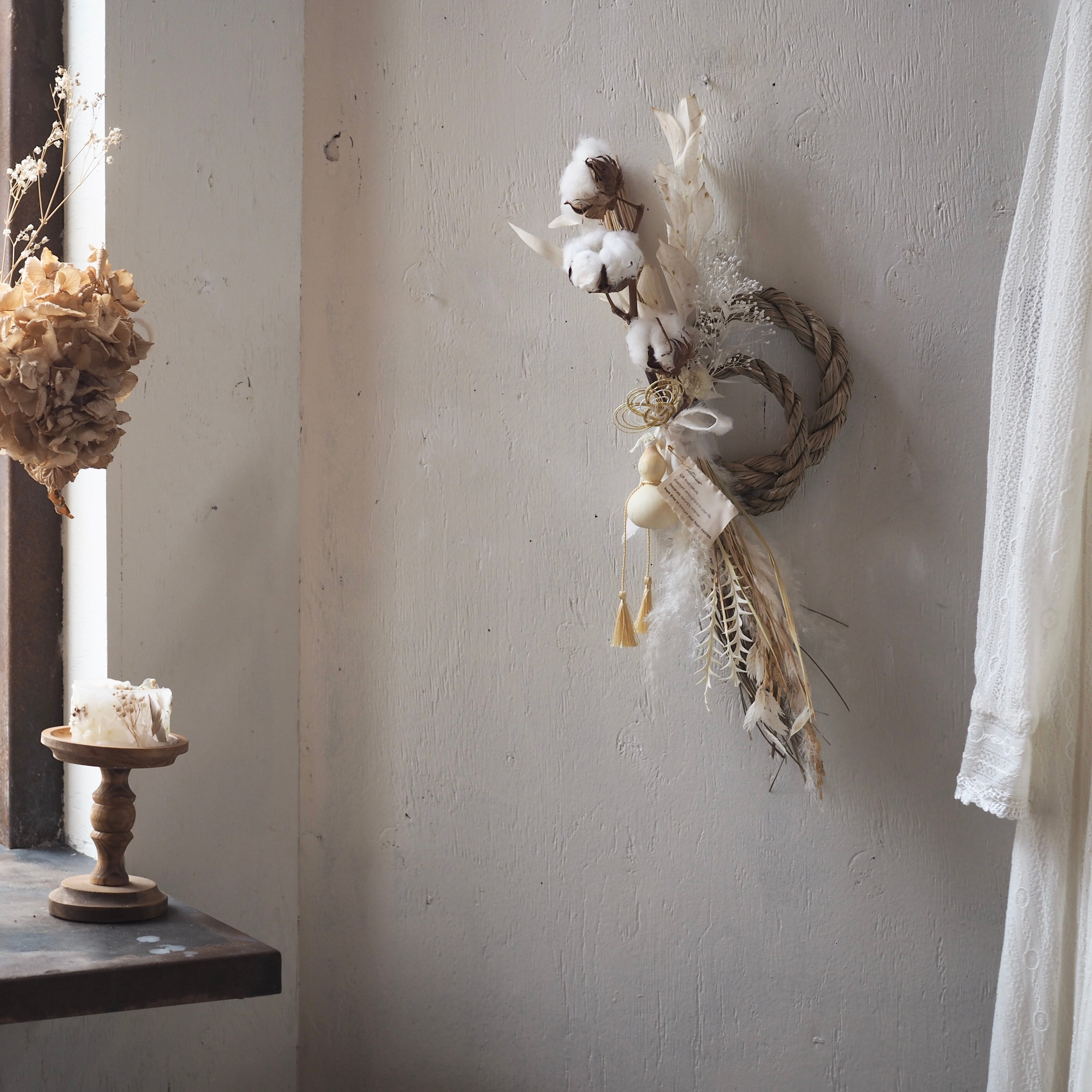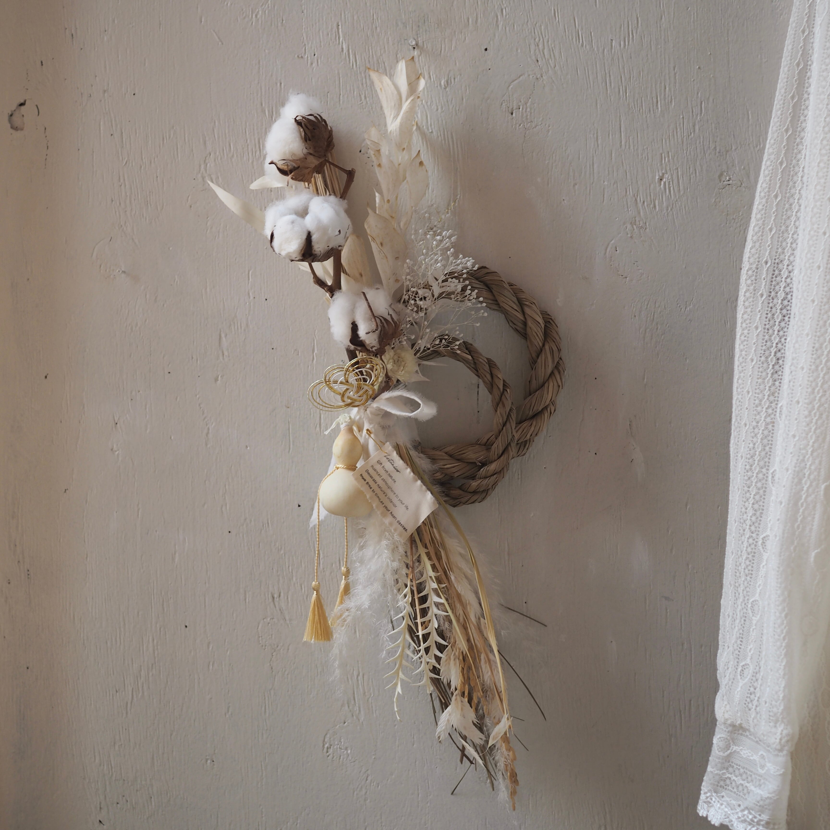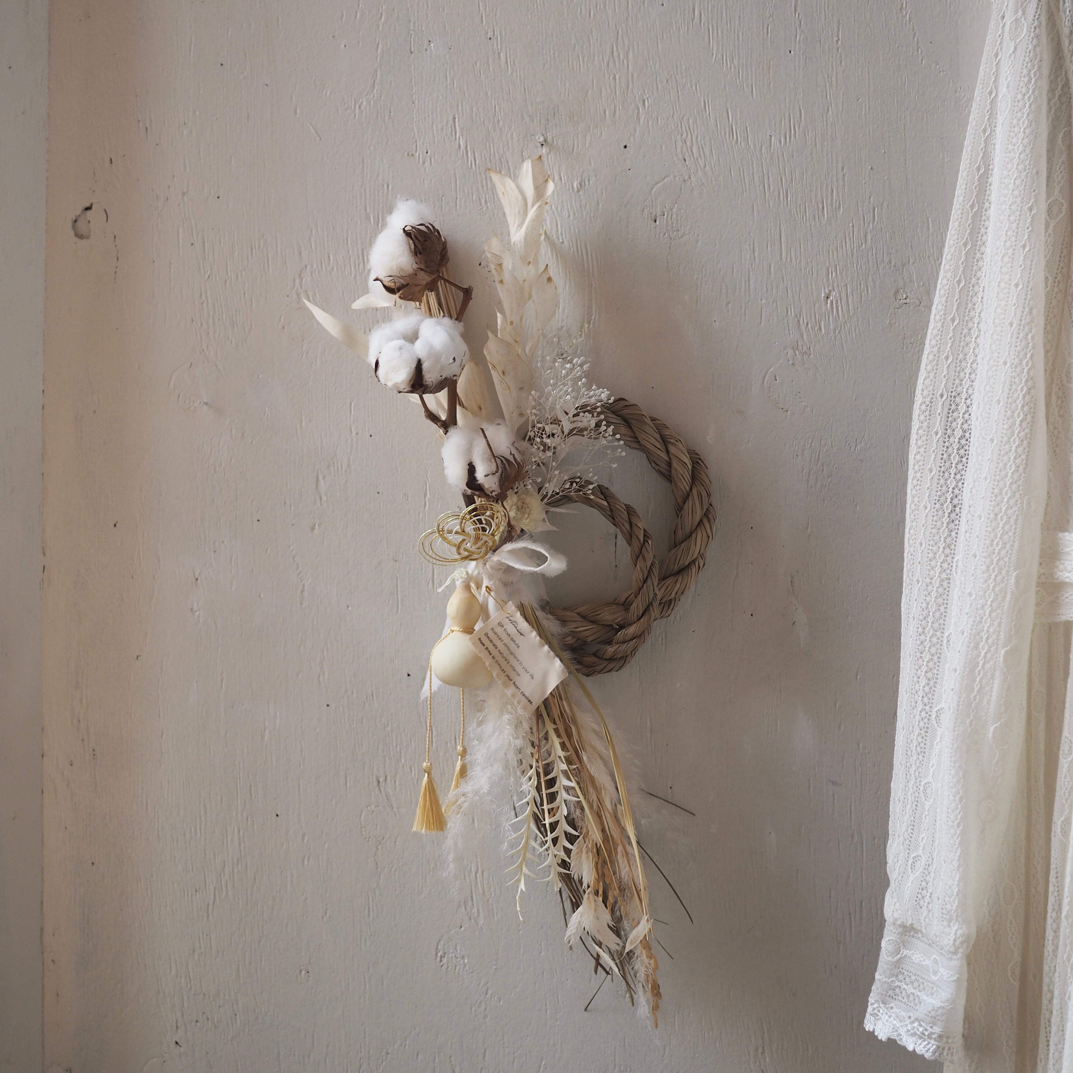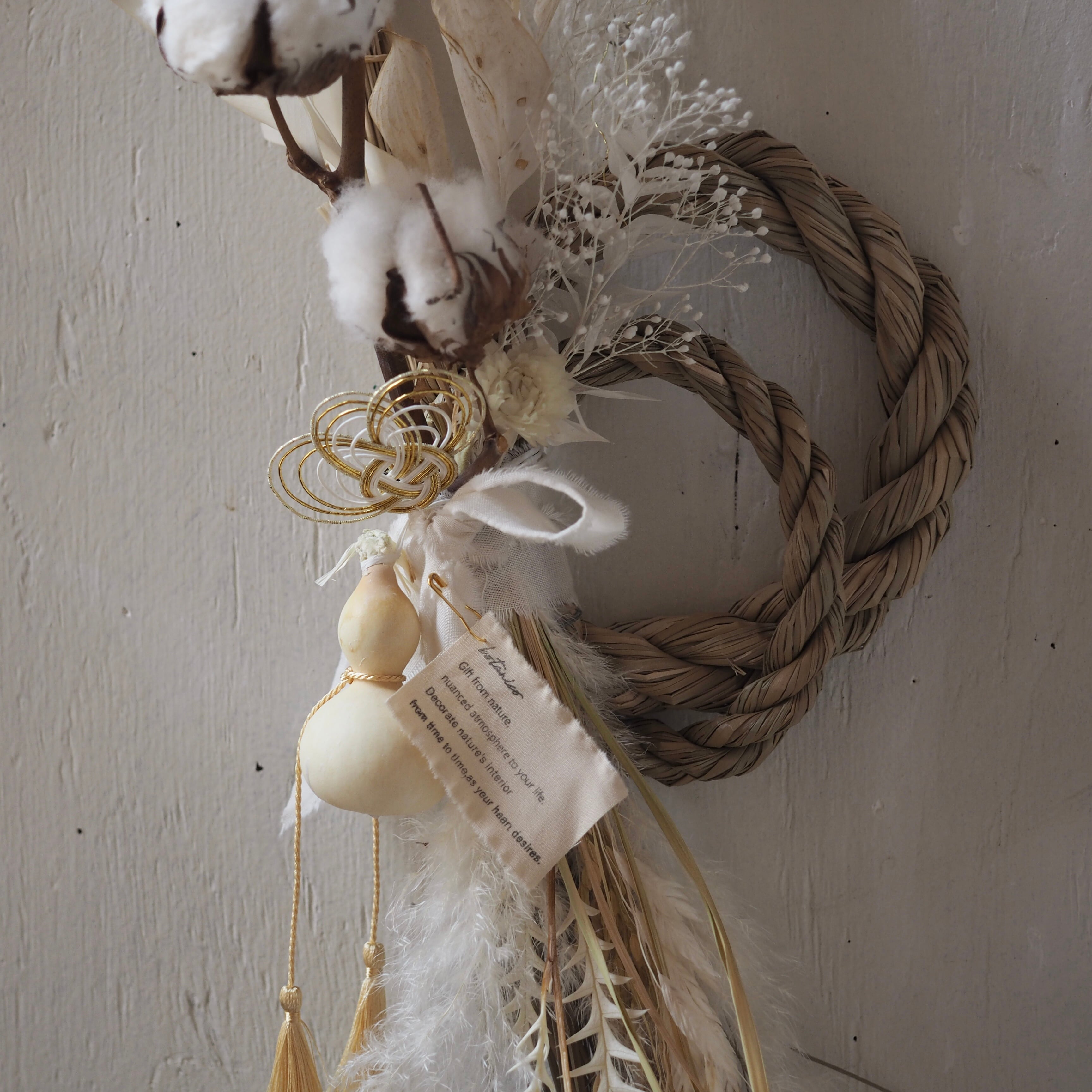 ナチュラルな素材を使った、個性溢れるデザインに仕上げた一点もののしめ飾り。