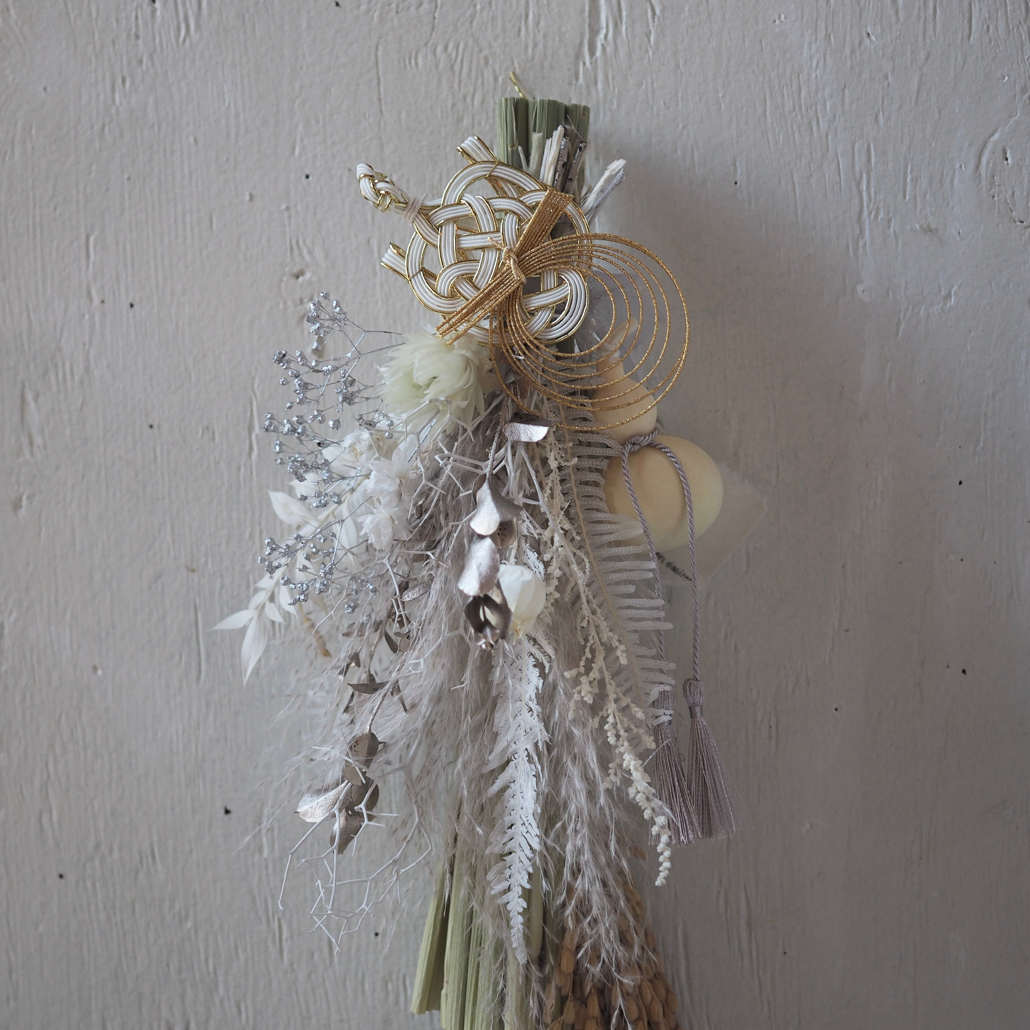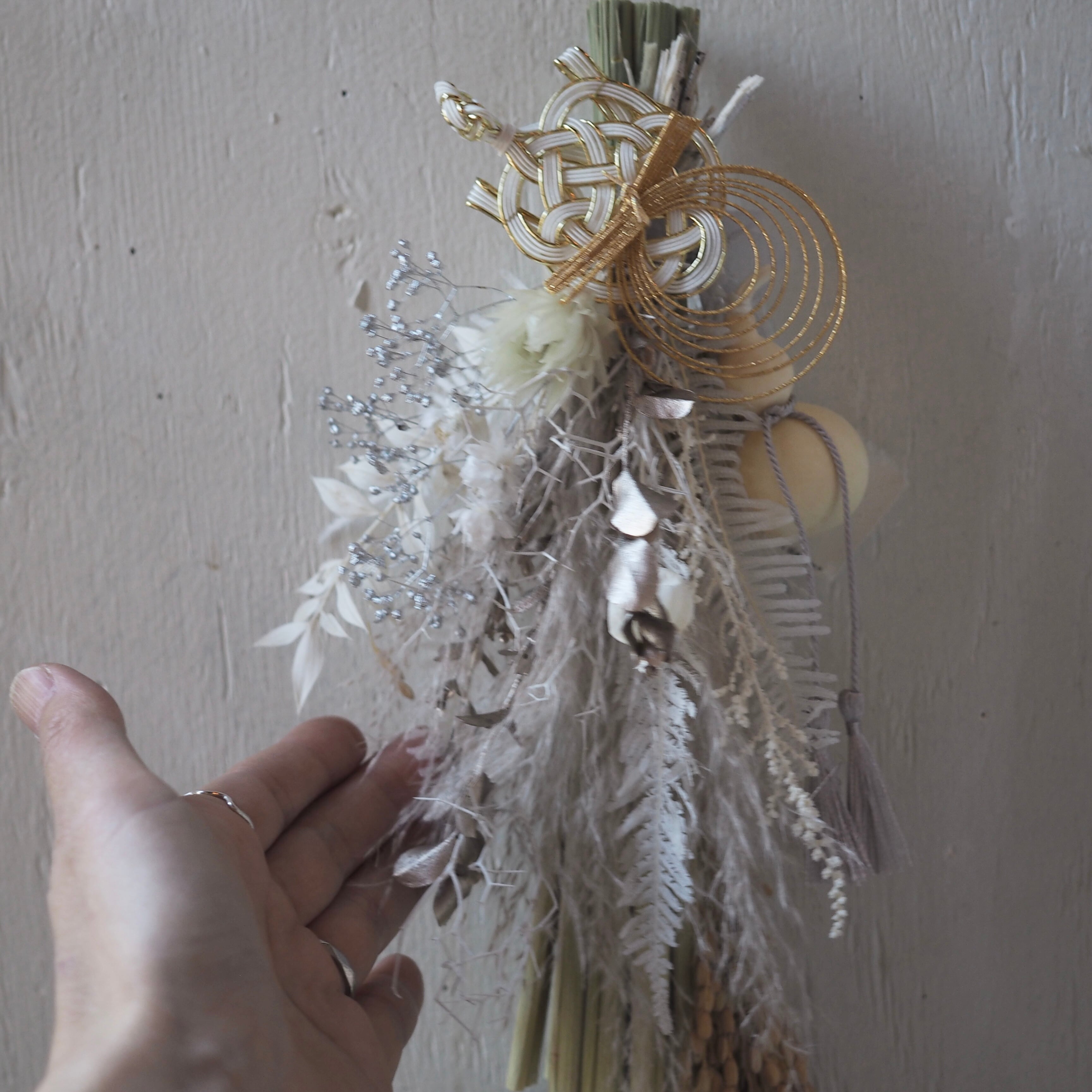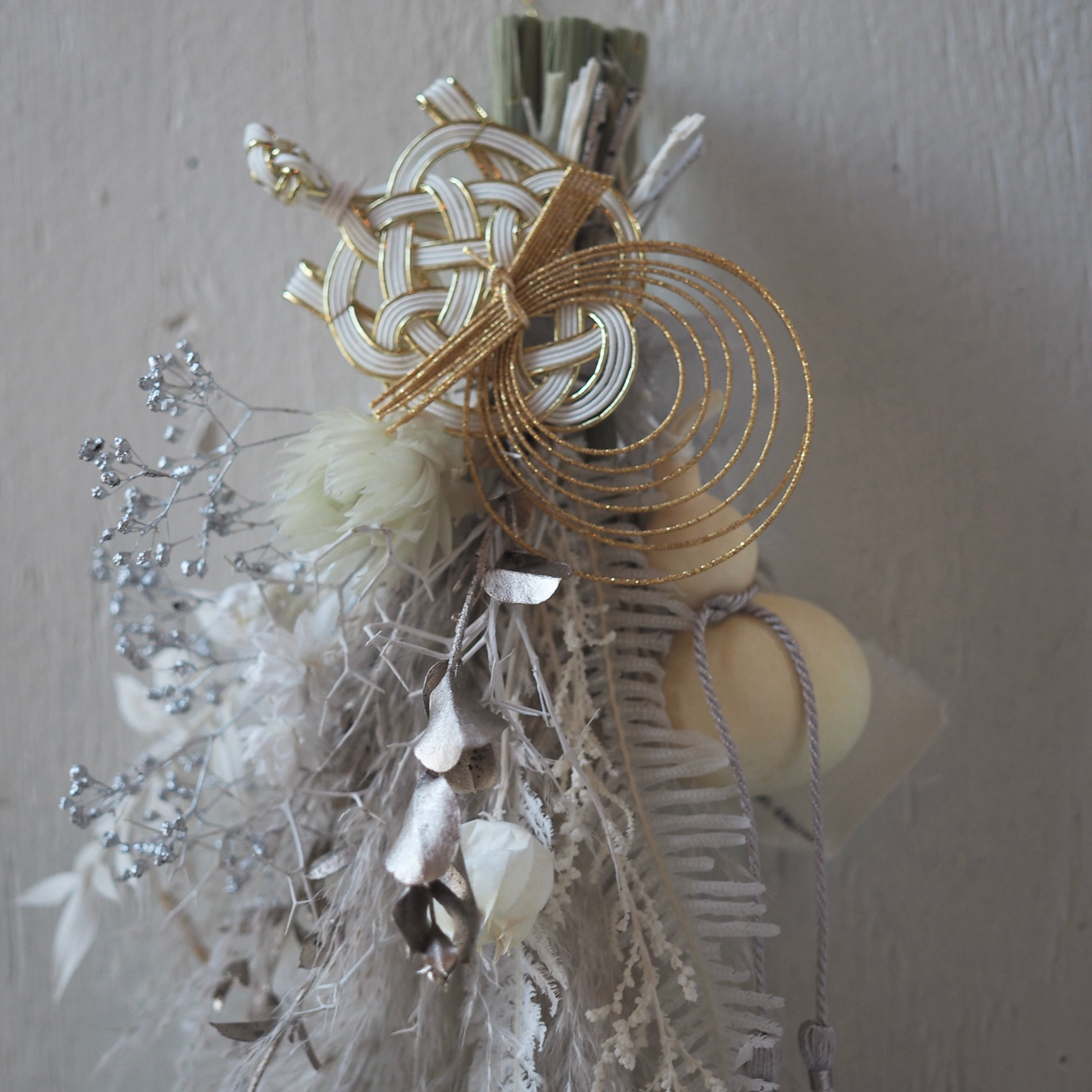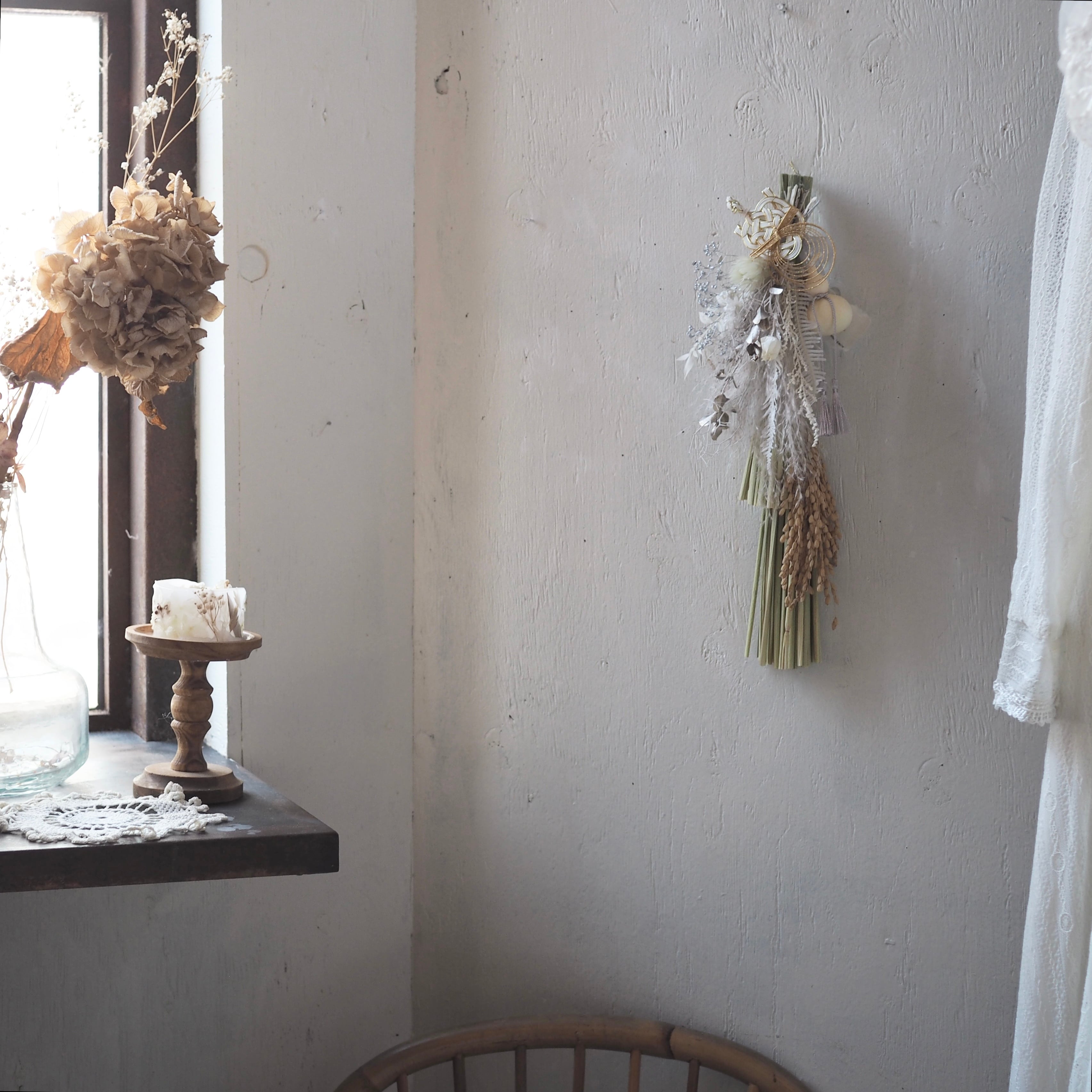 ナチュラルな素材を使った、個性溢れるデザインに仕上げた一点もののしめ飾り。
