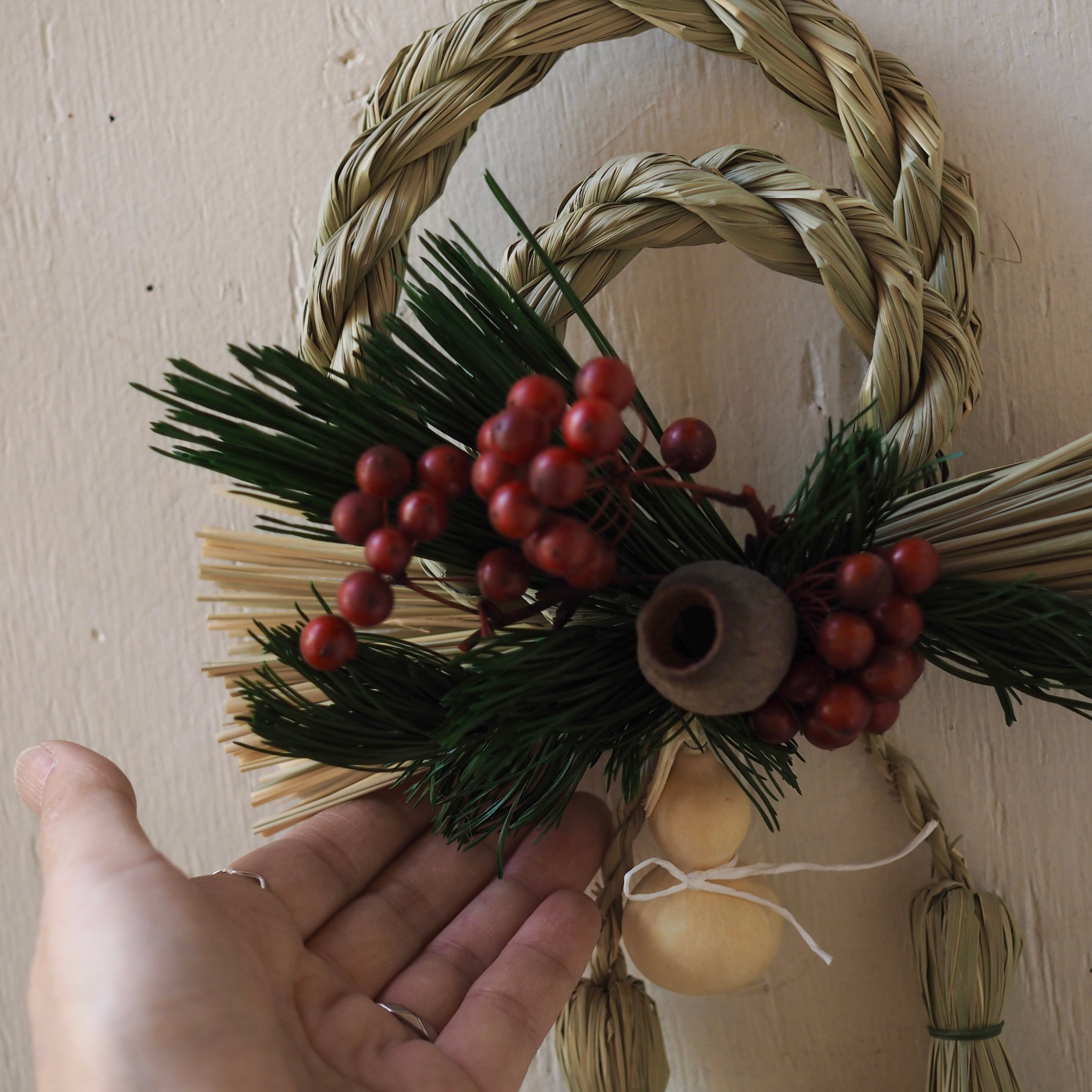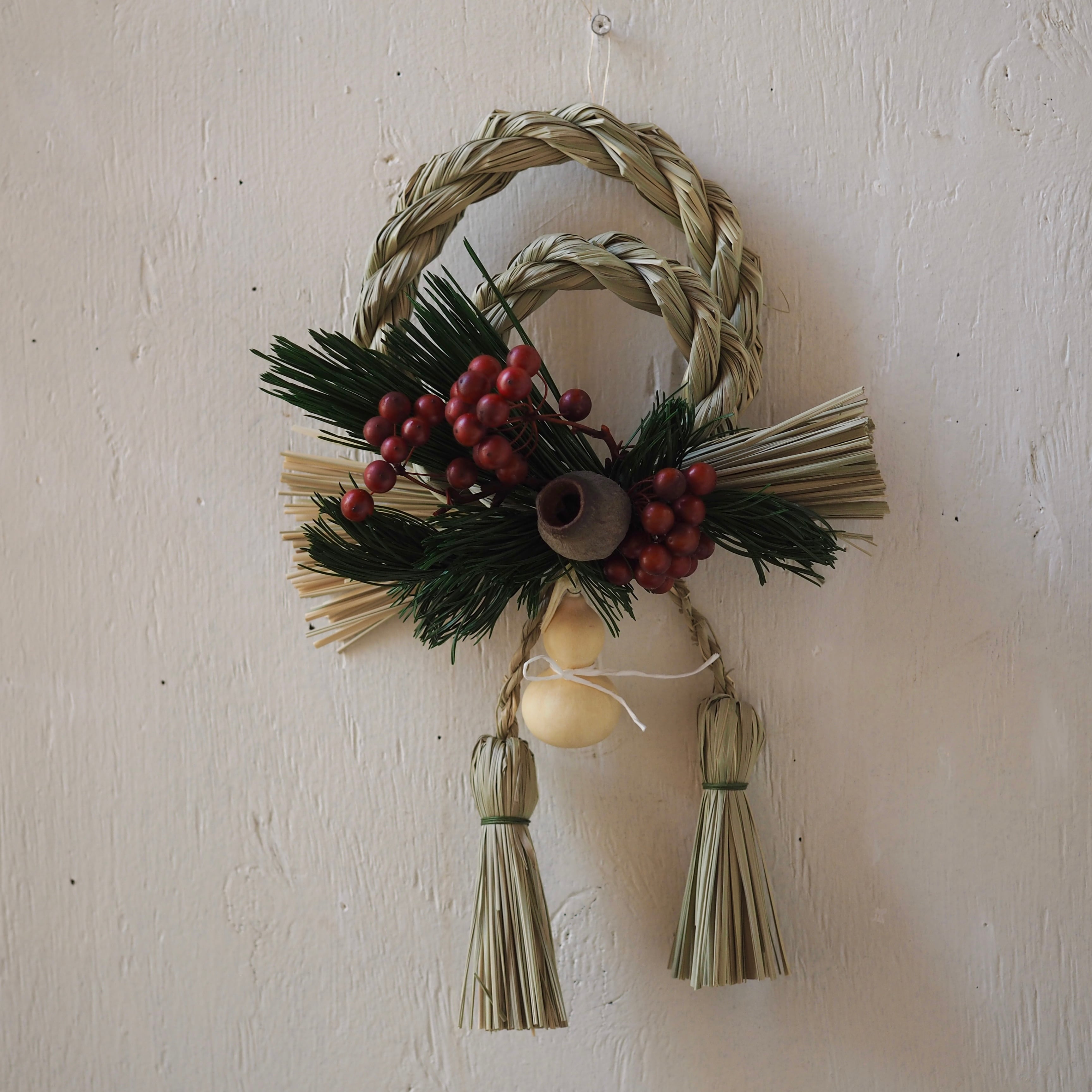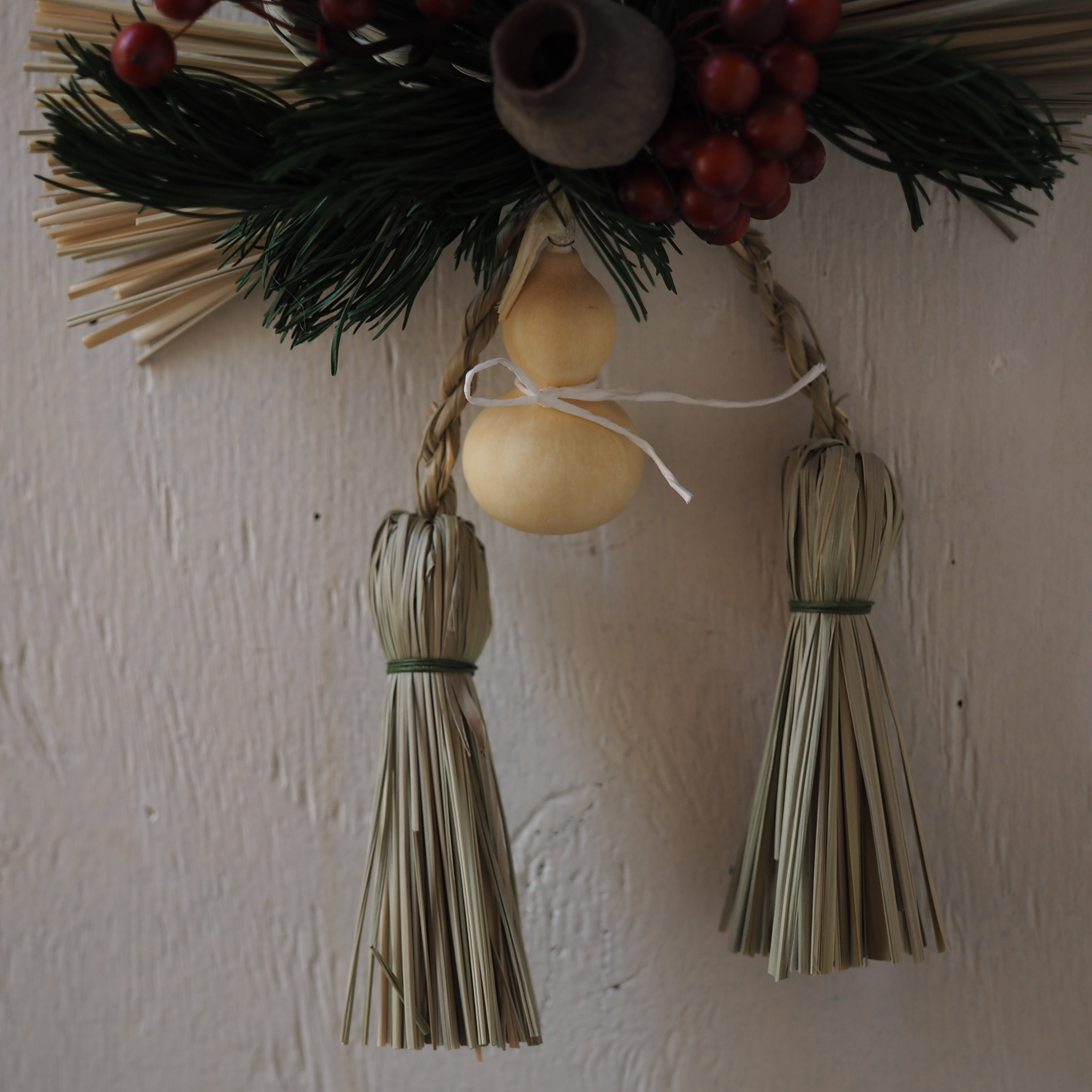 ナチュラルな素材を使った、個性溢れるデザインに仕上げた一点もののしめ飾り。