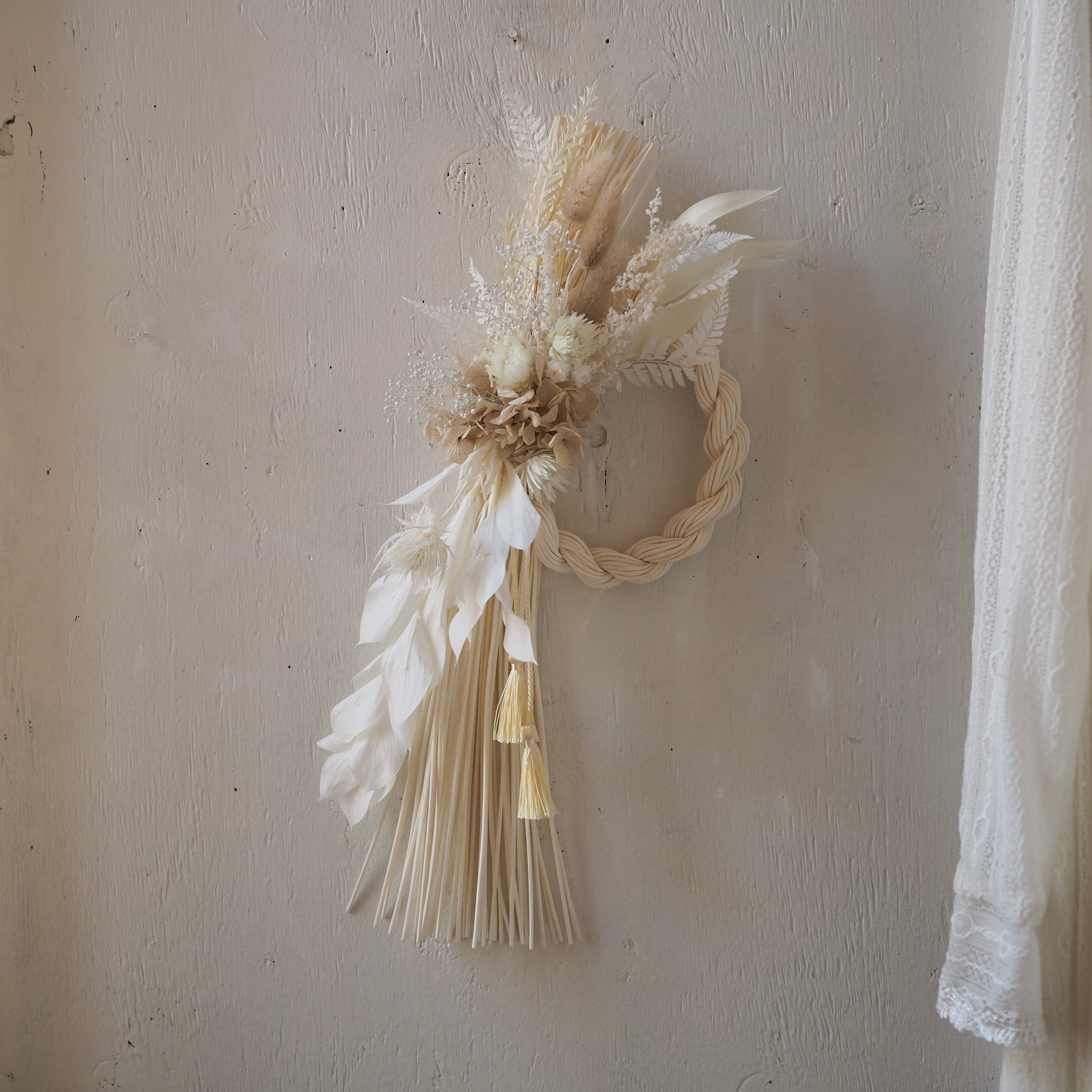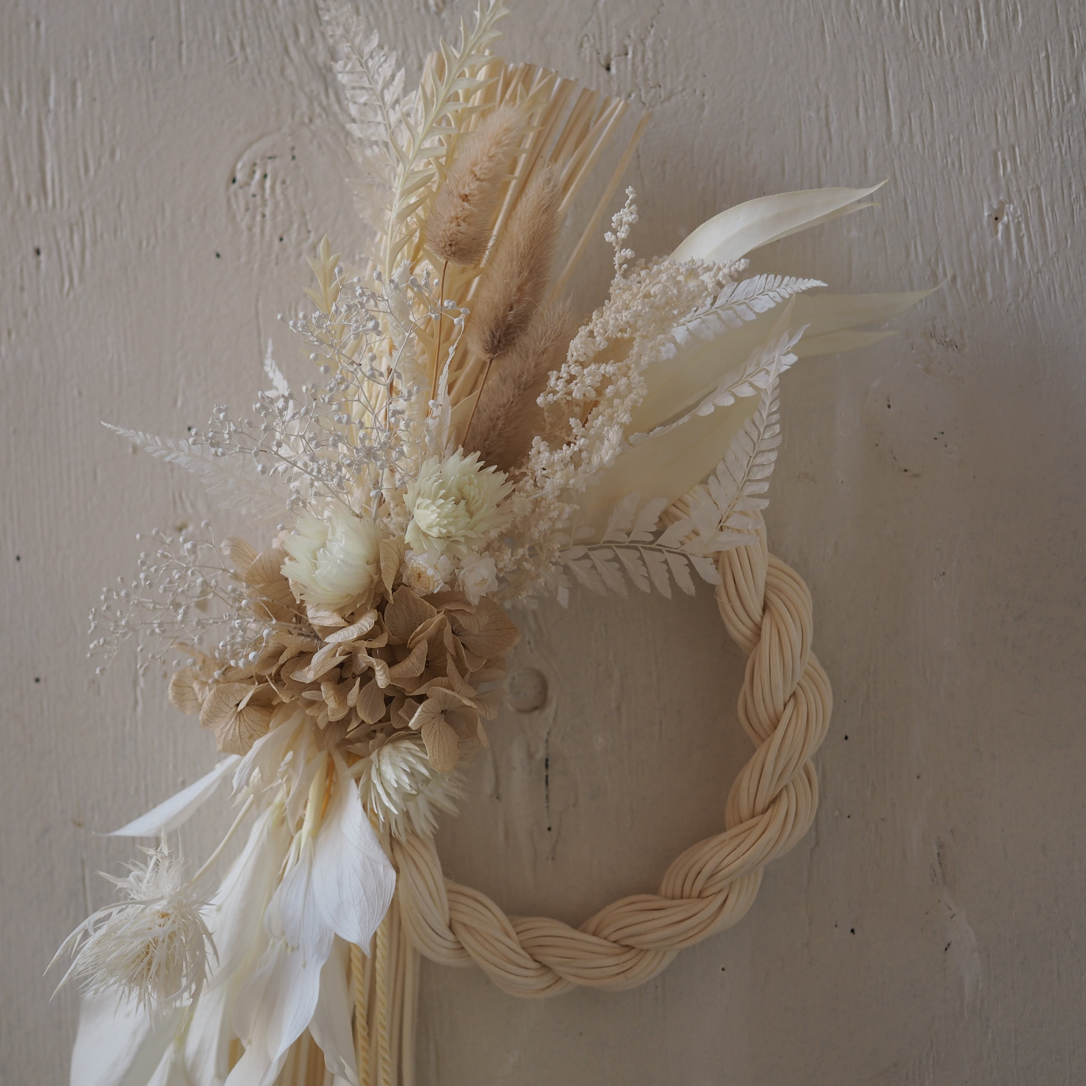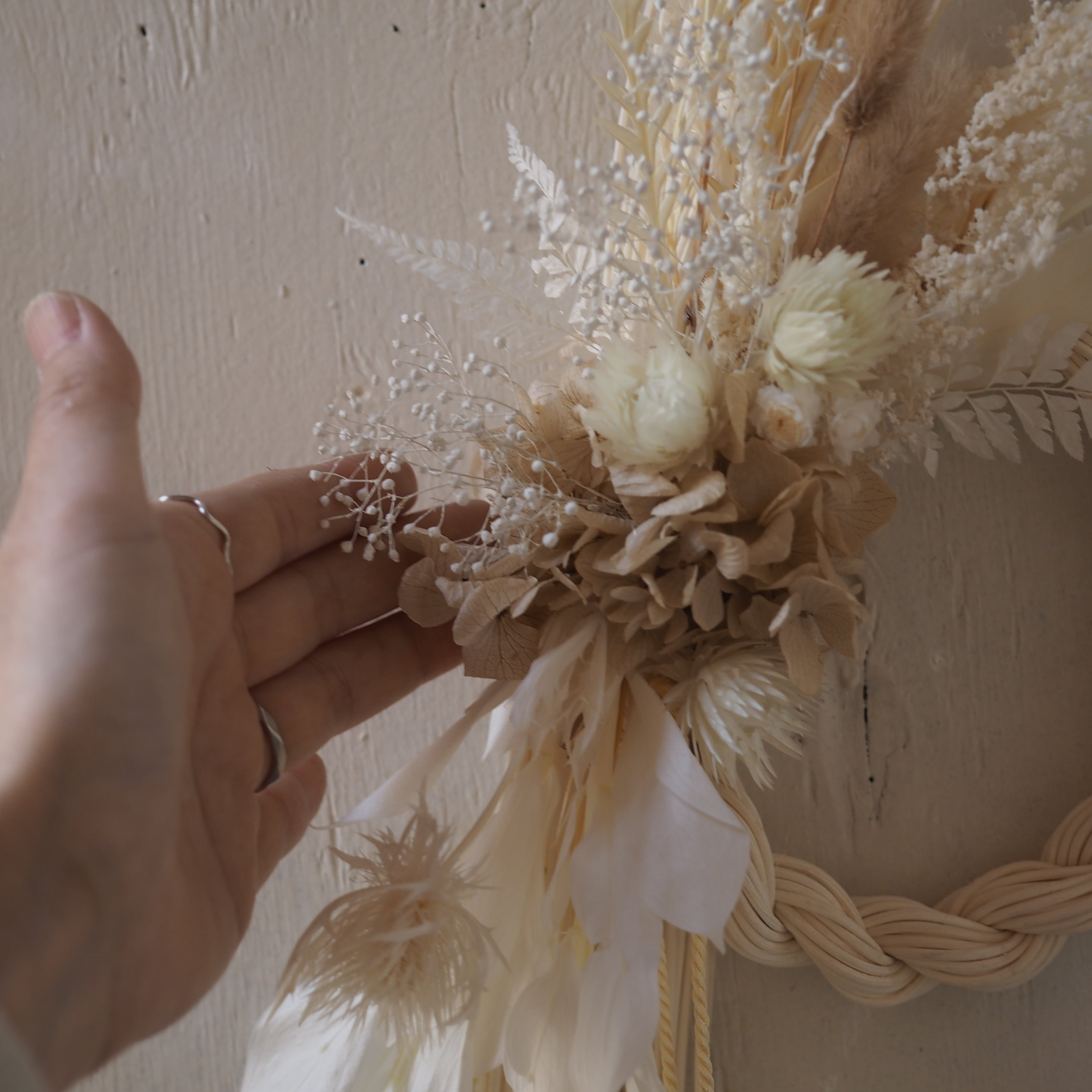 ナチュラルな素材を使った、個性溢れるデザインに仕上げた一点もののしめ飾り。