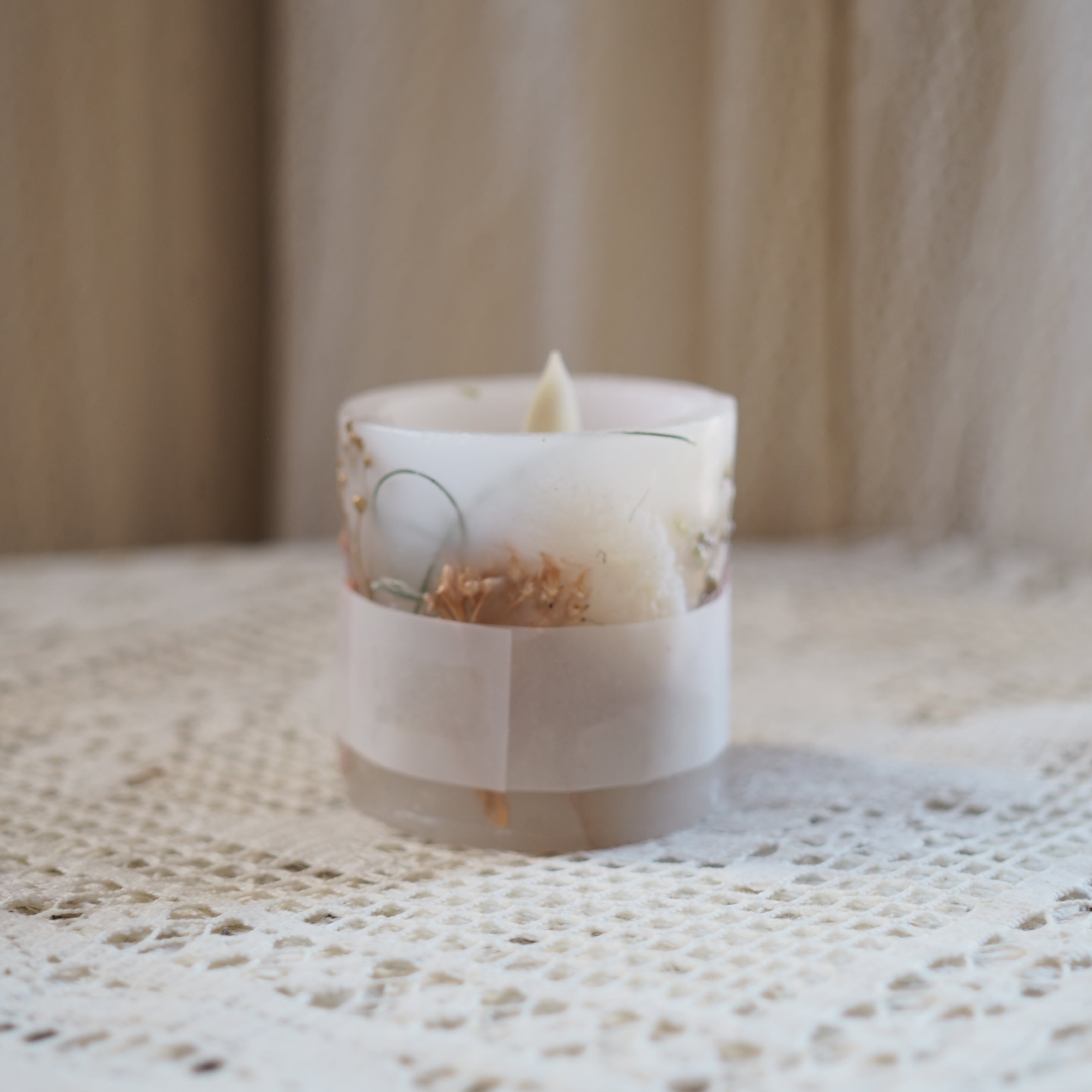 火を使わず、安全に楽しめるLEDのゆらめきライトをセットでお届けします。