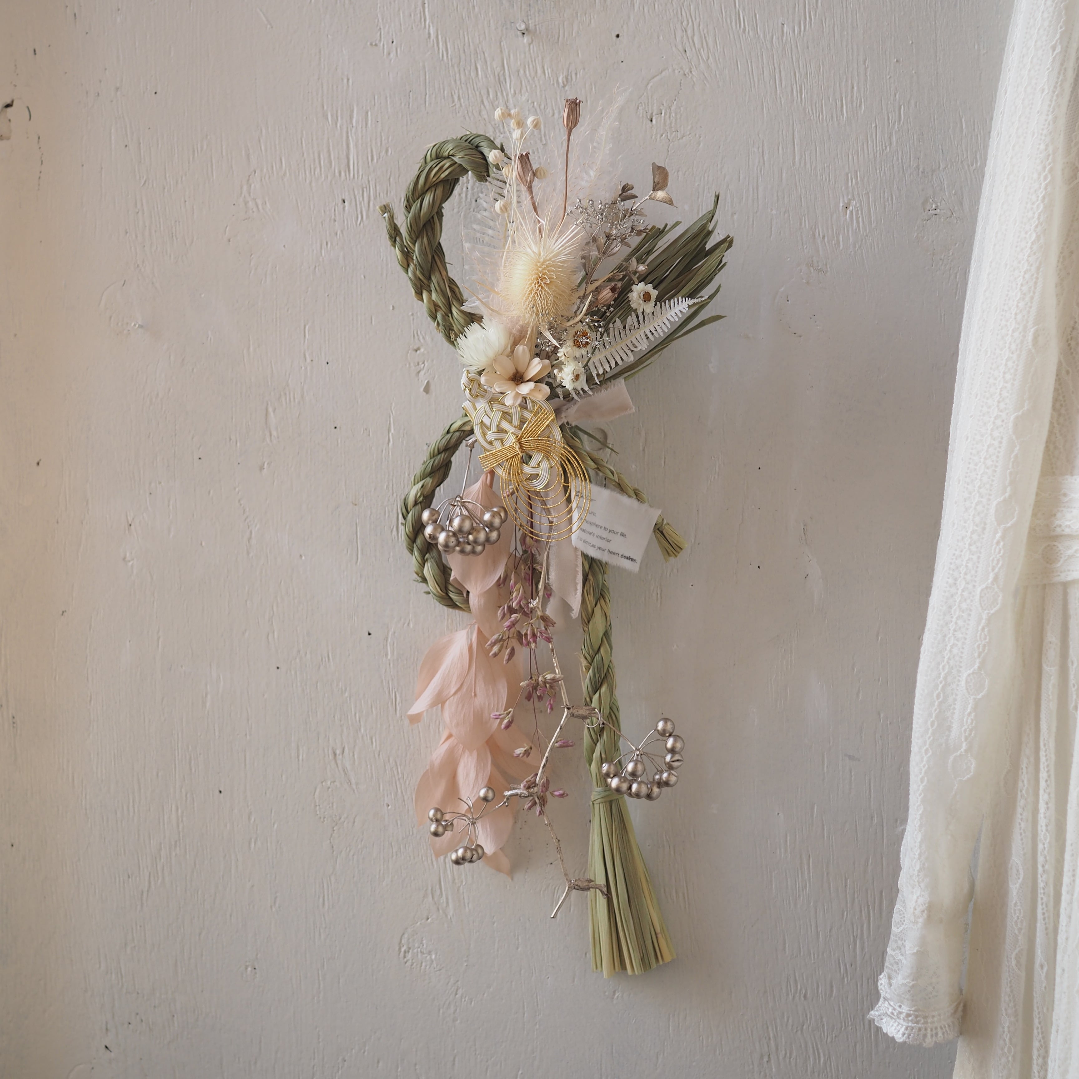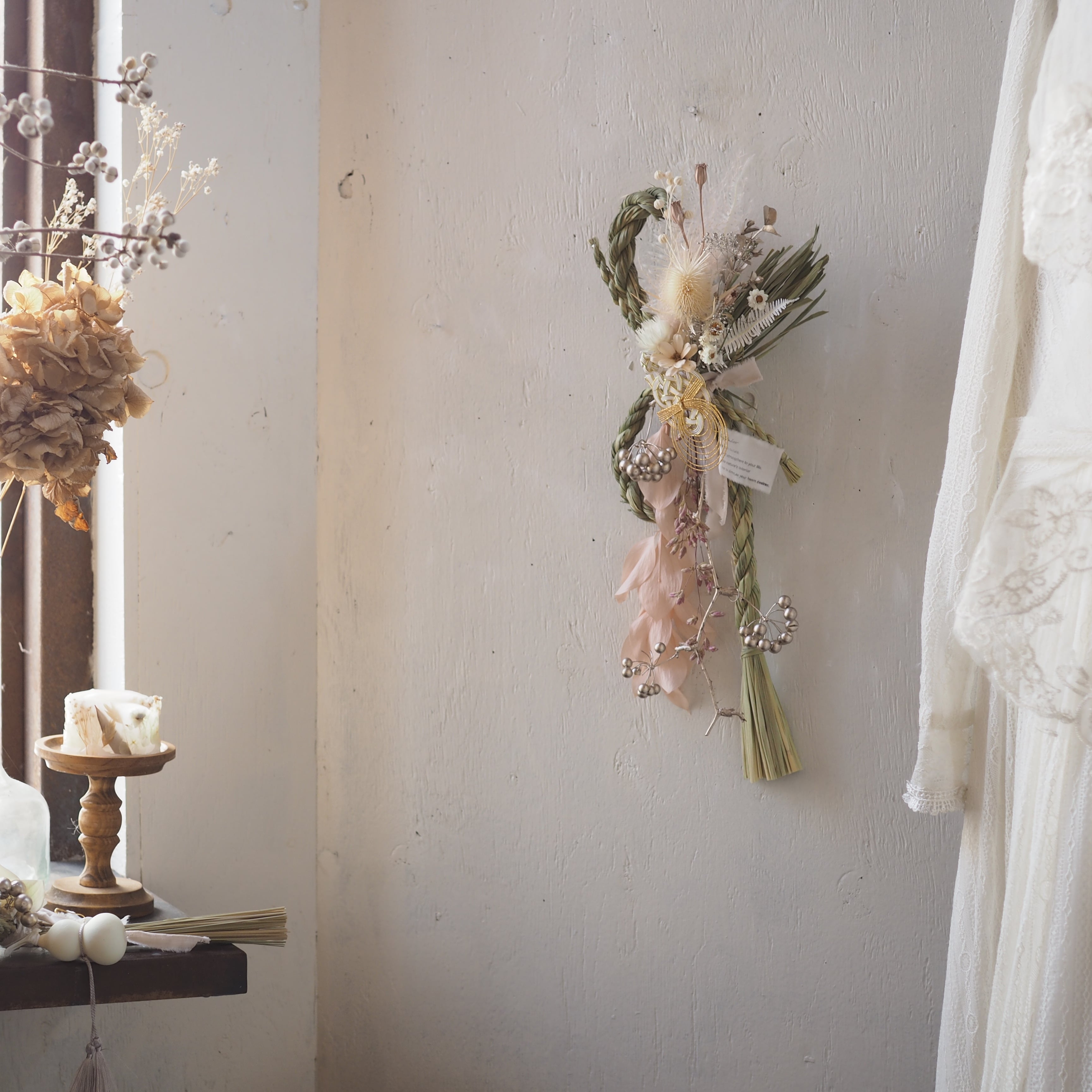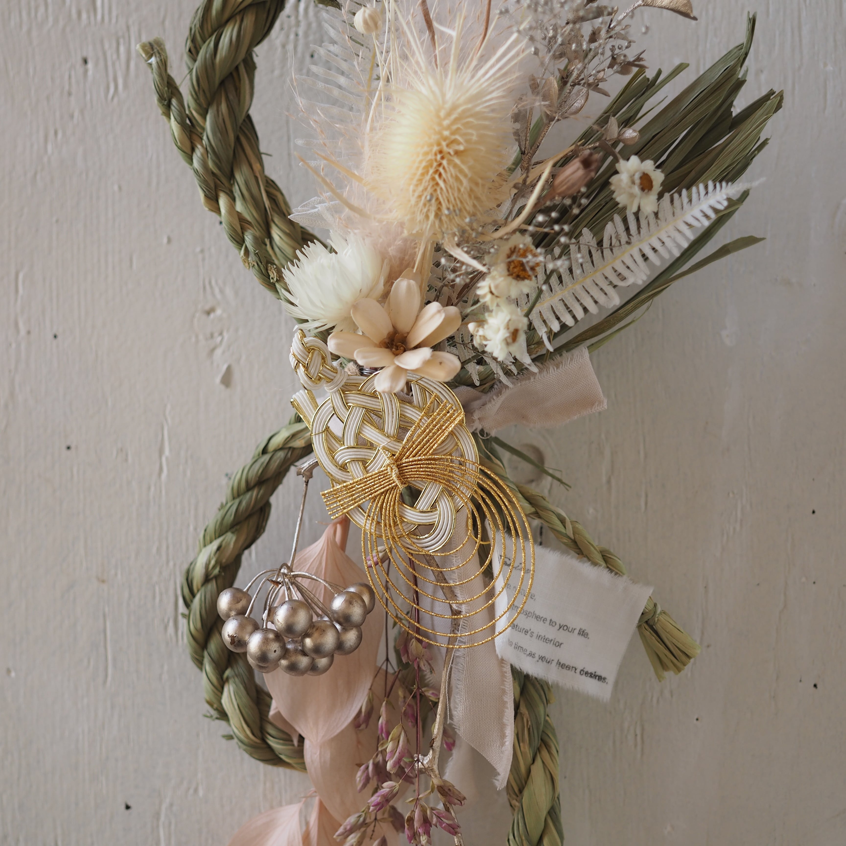 ナチュラルな素材を使った、個性溢れるデザインに仕上げた一点もののしめ飾り。