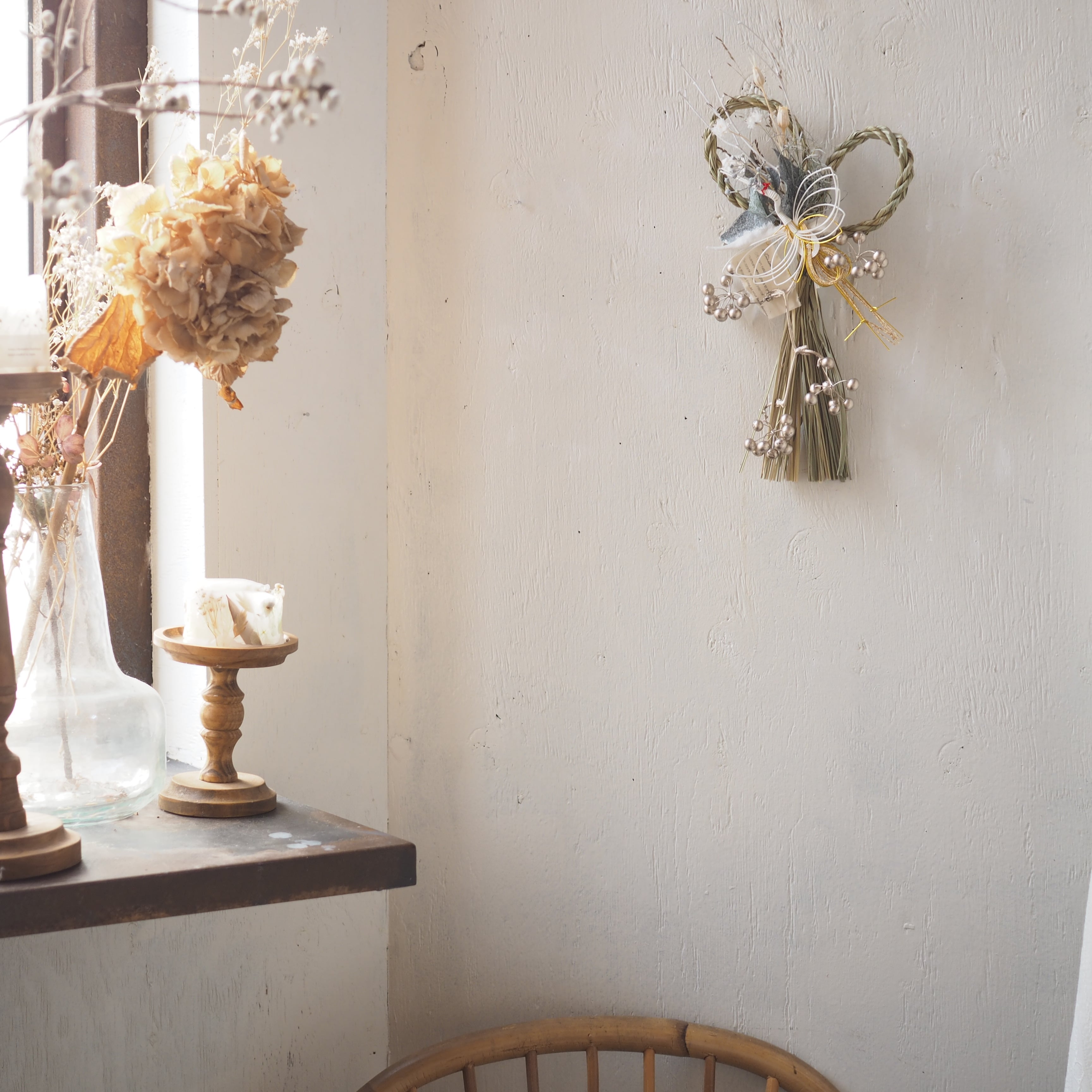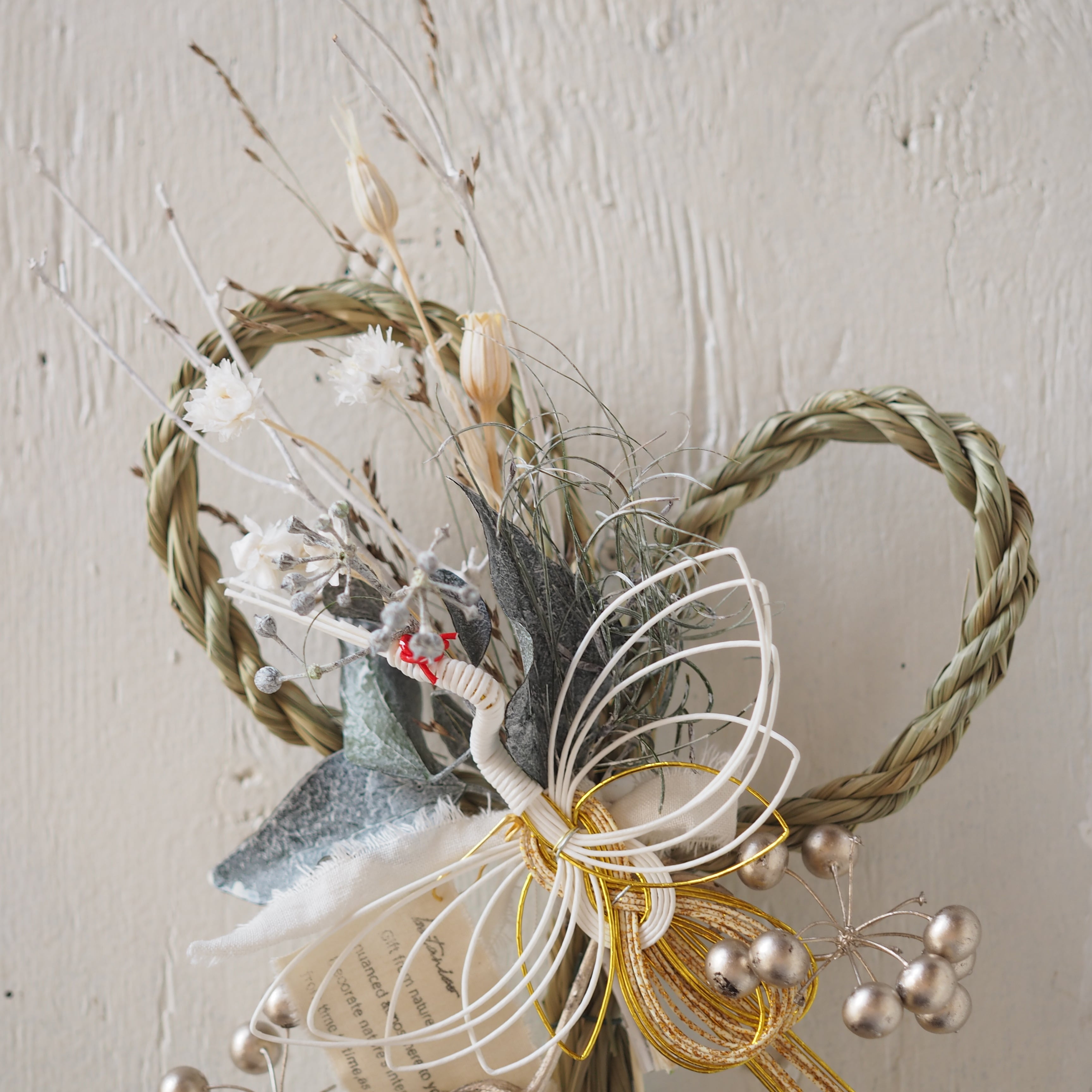 ナチュラルな素材を使った、個性溢れるデザインに仕上げた一点もののしめ飾り。
