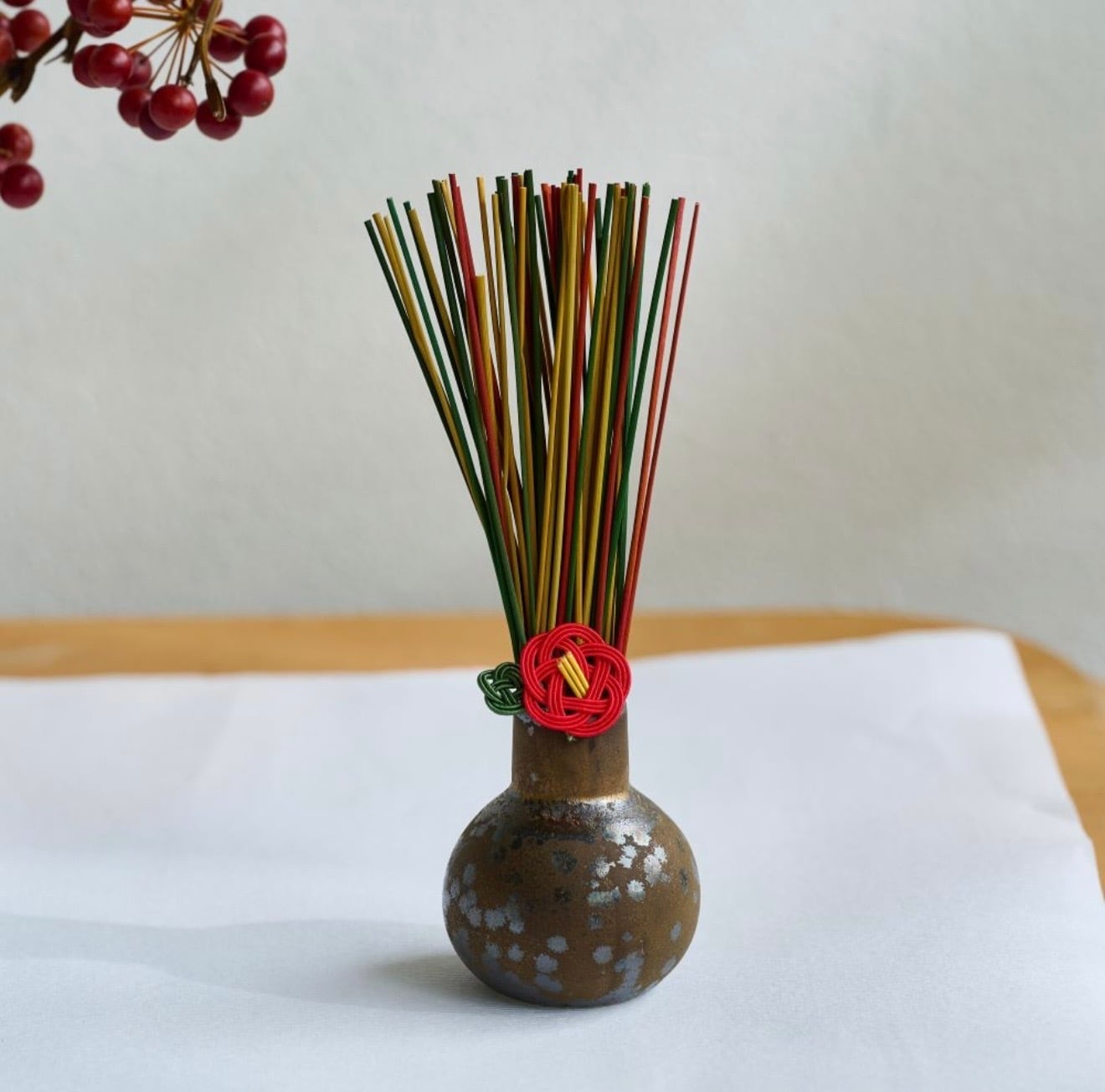 椿の水引とい草を花瓶に入れて、お正月飾りとしてお楽しみいただけます。