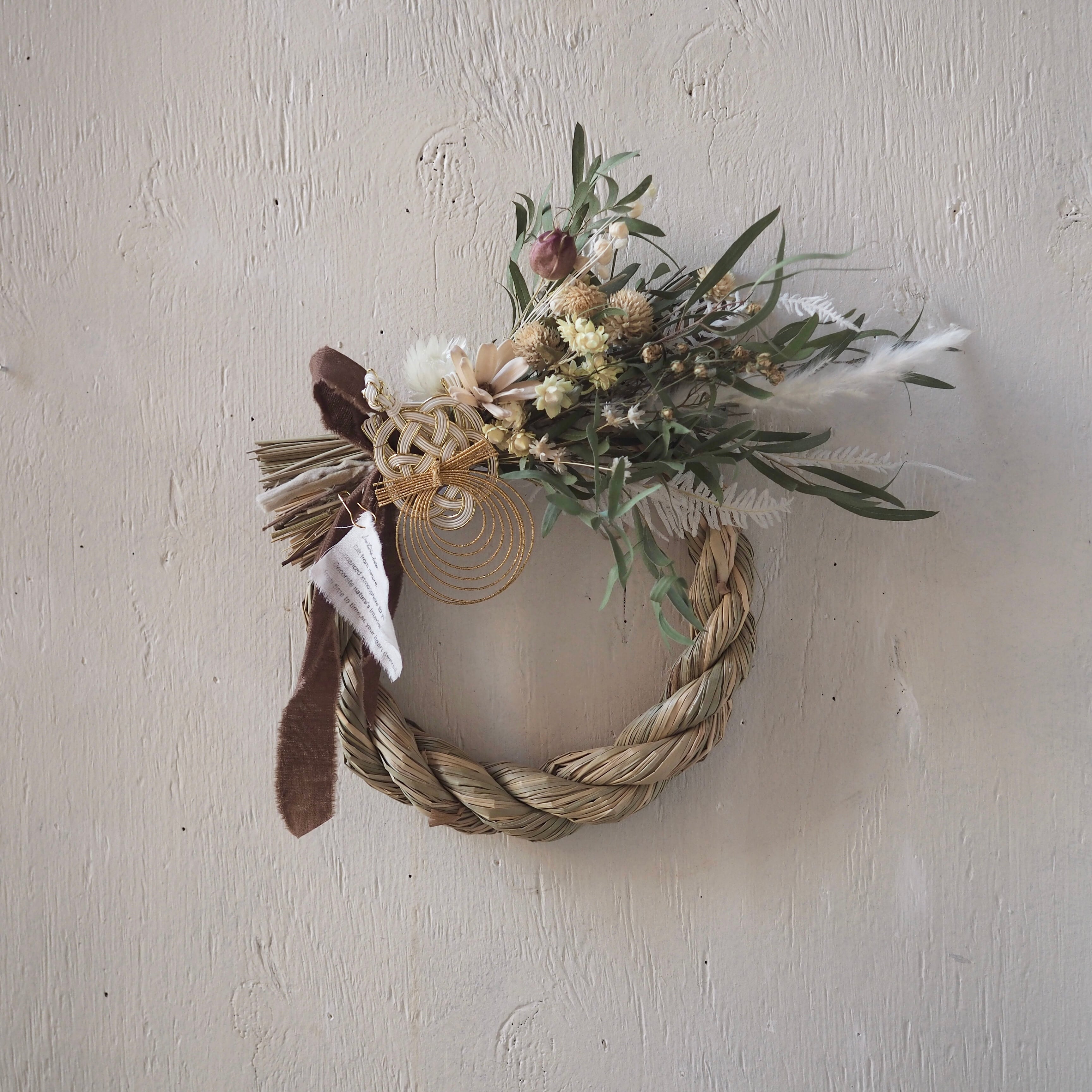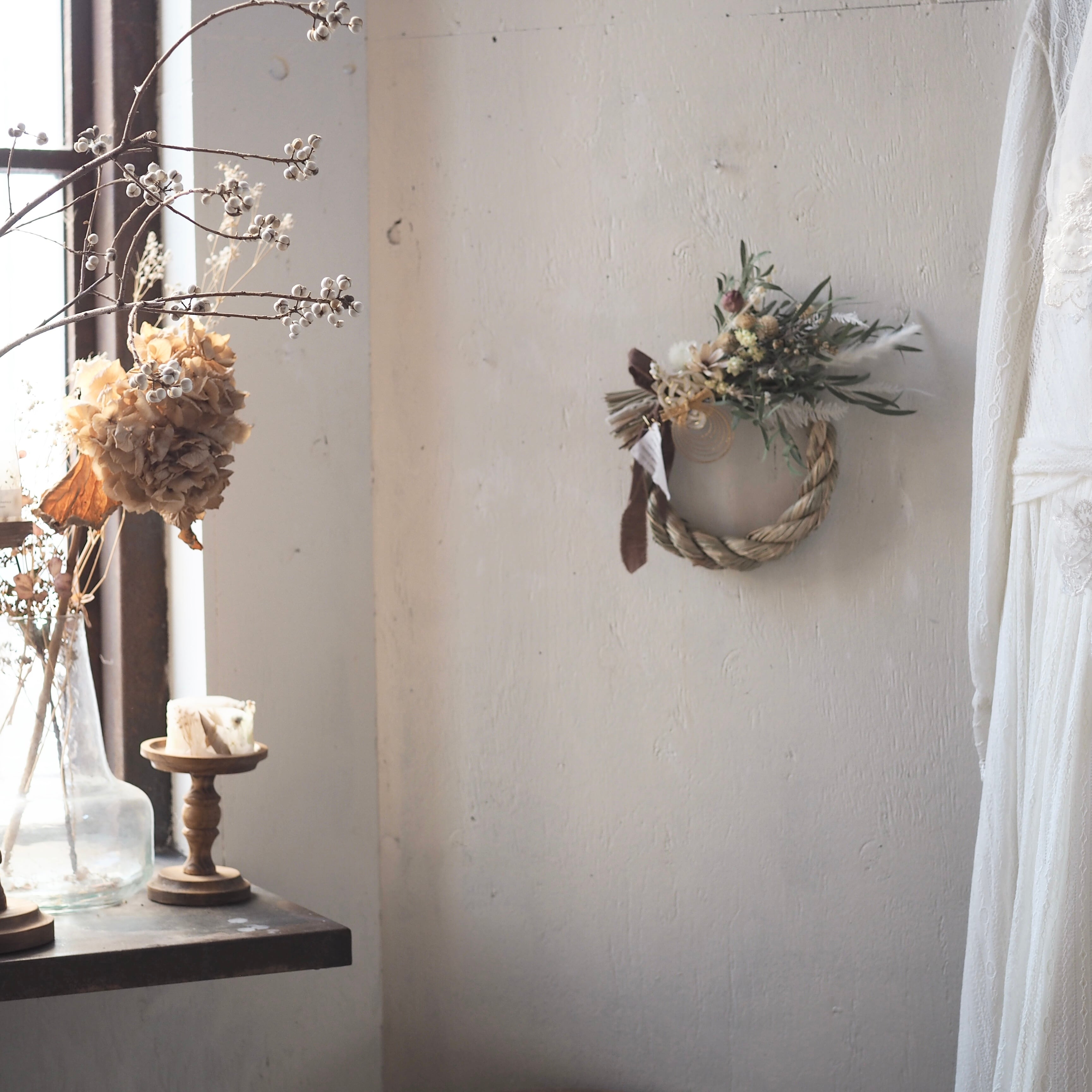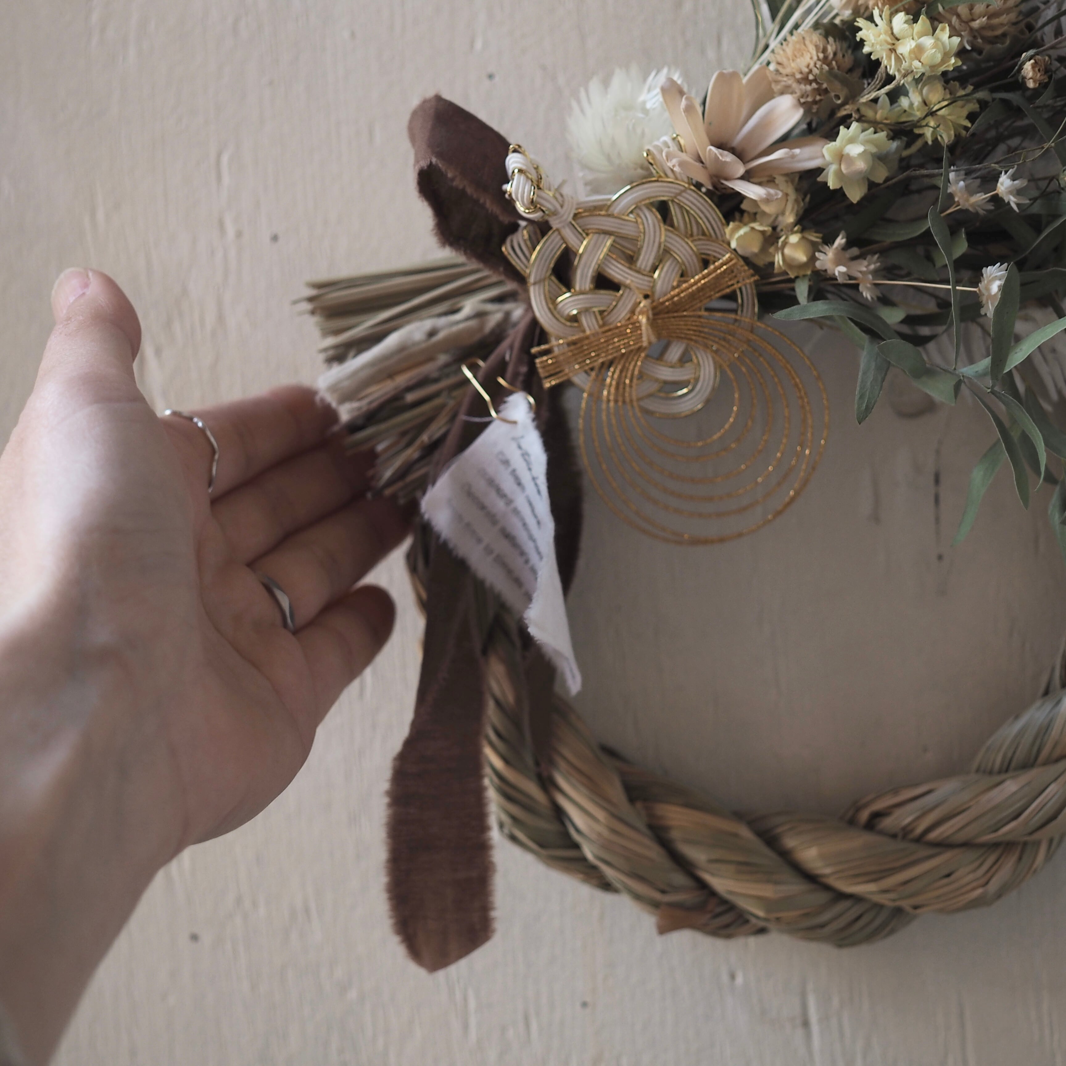 ナチュラルな素材を使った、個性溢れるデザインに仕上げた一点もののしめ飾り。