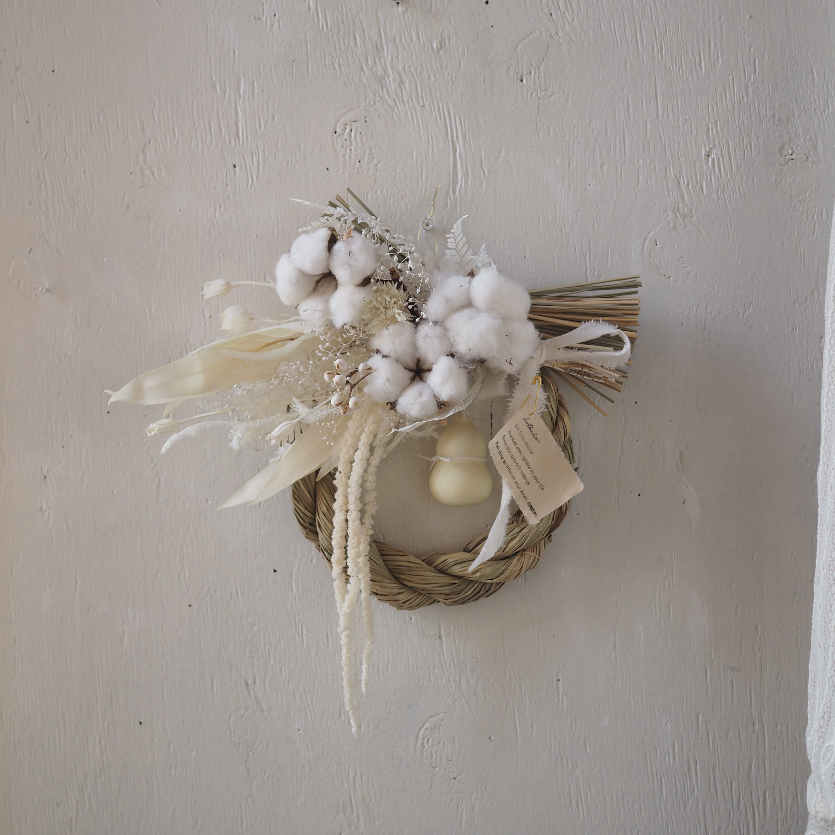ナチュラルな素材を使った、個性溢れるデザインに仕上げた一点もののしめ飾り。