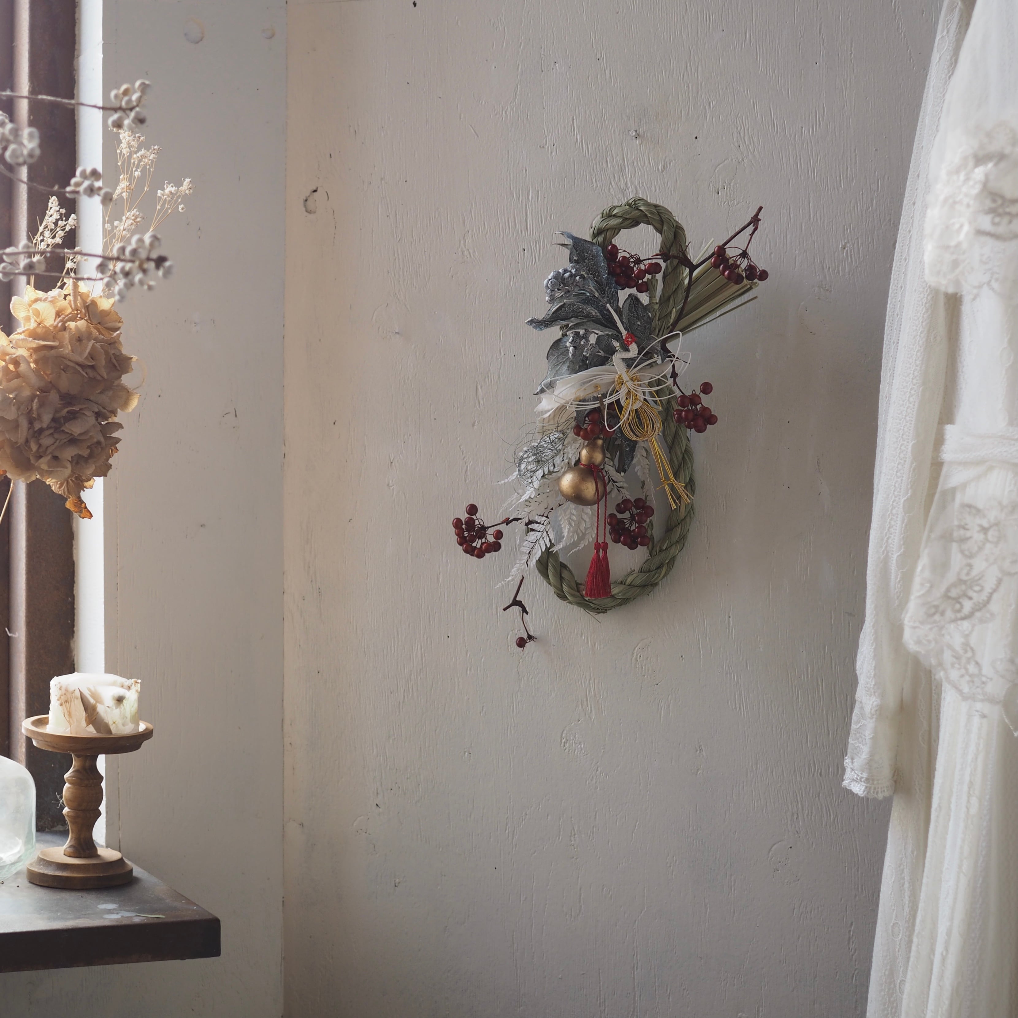 ナチュラルな素材を使った、個性溢れるデザインに仕上げた一点もののしめ飾り。