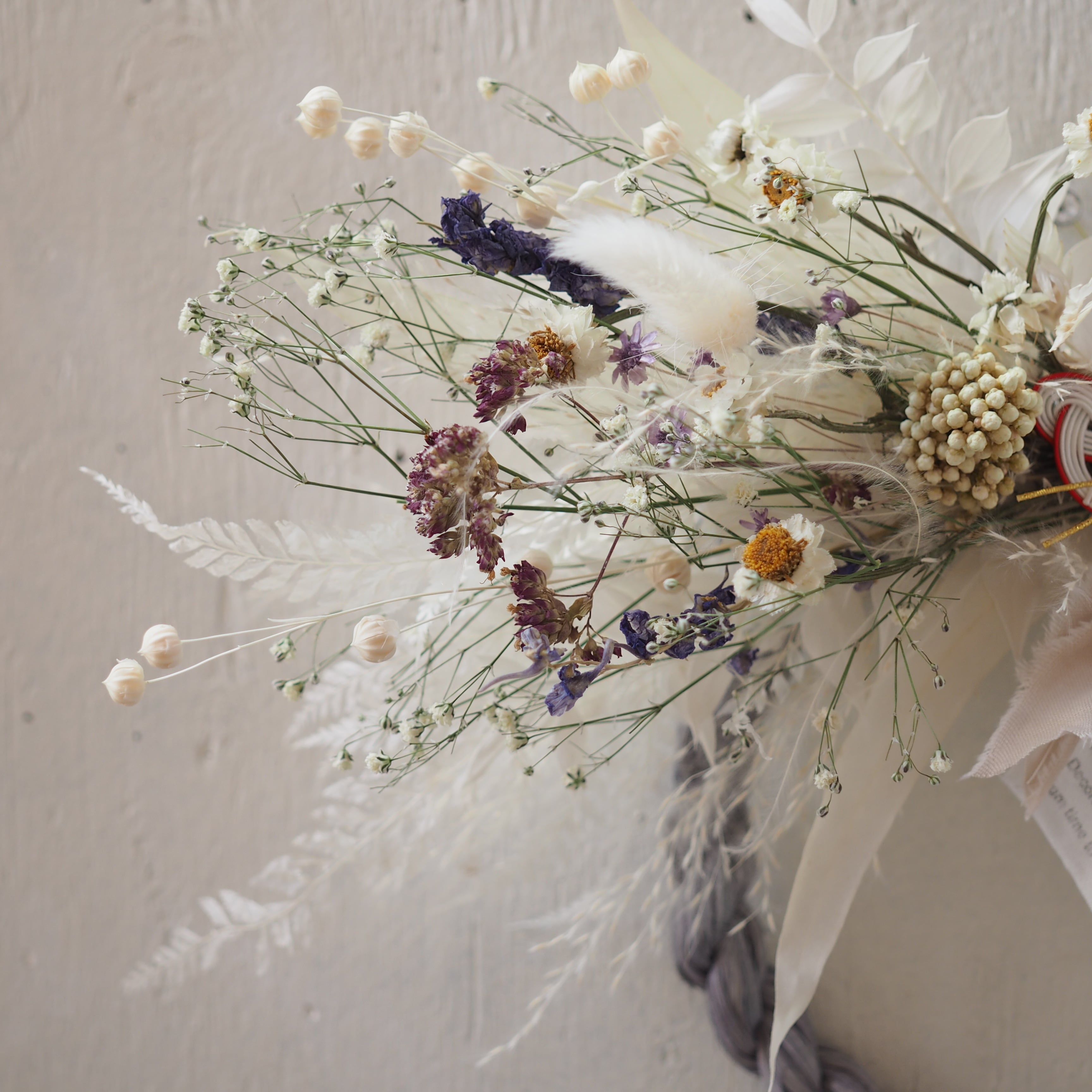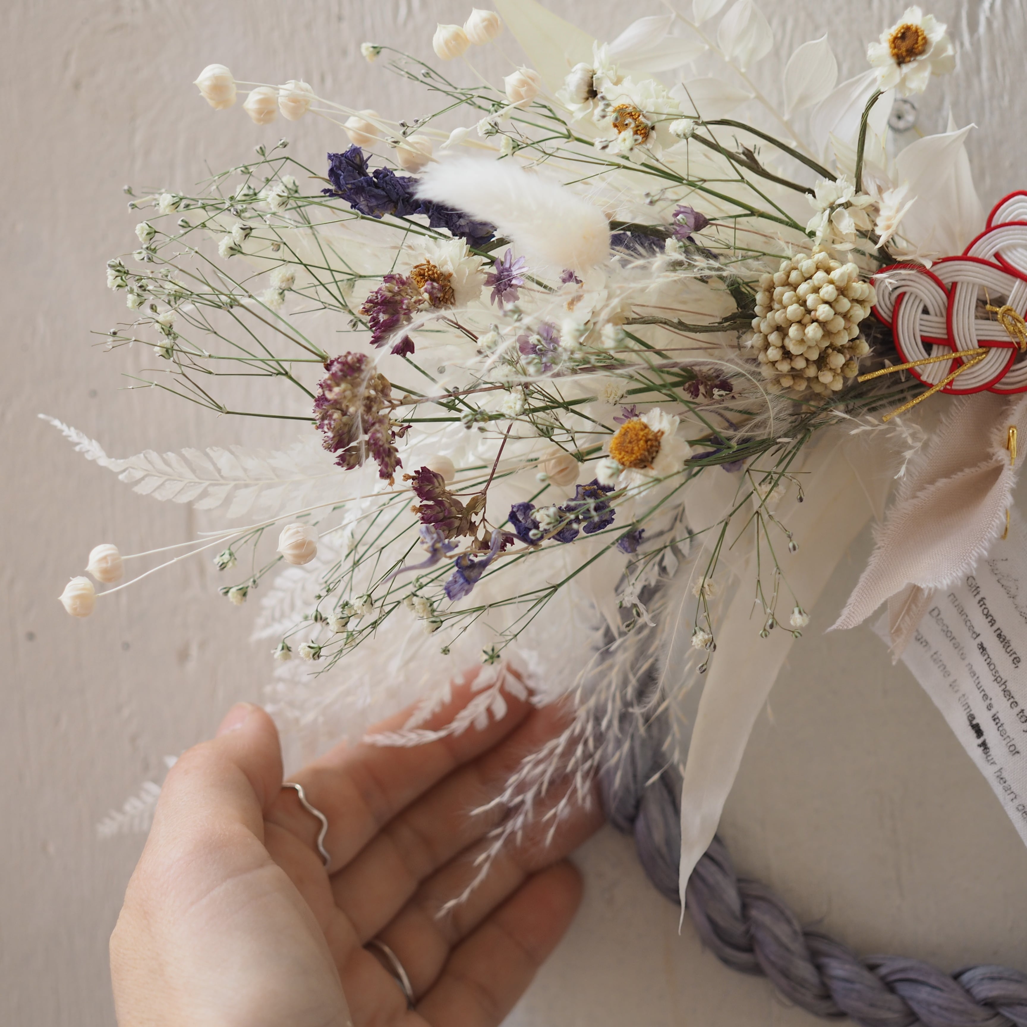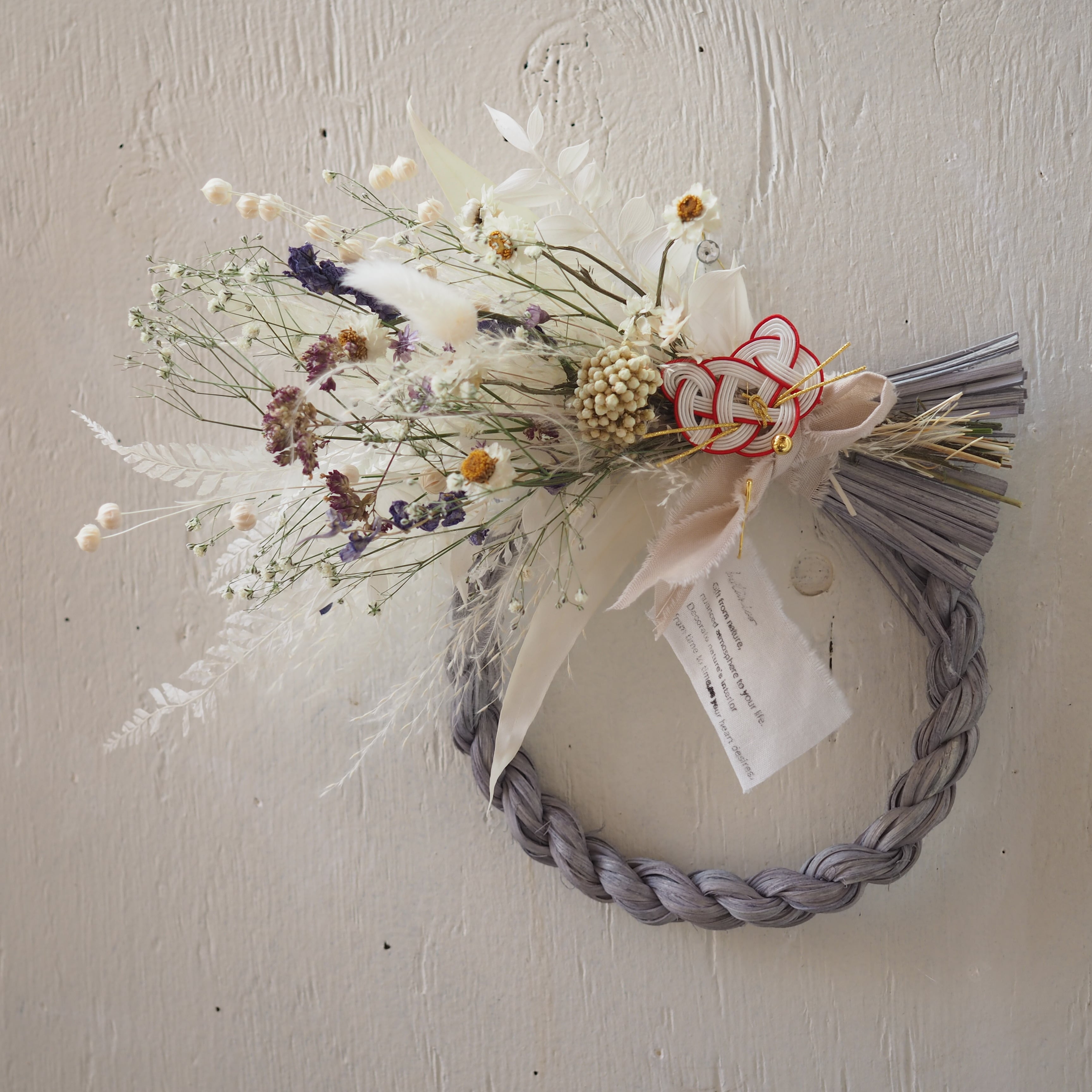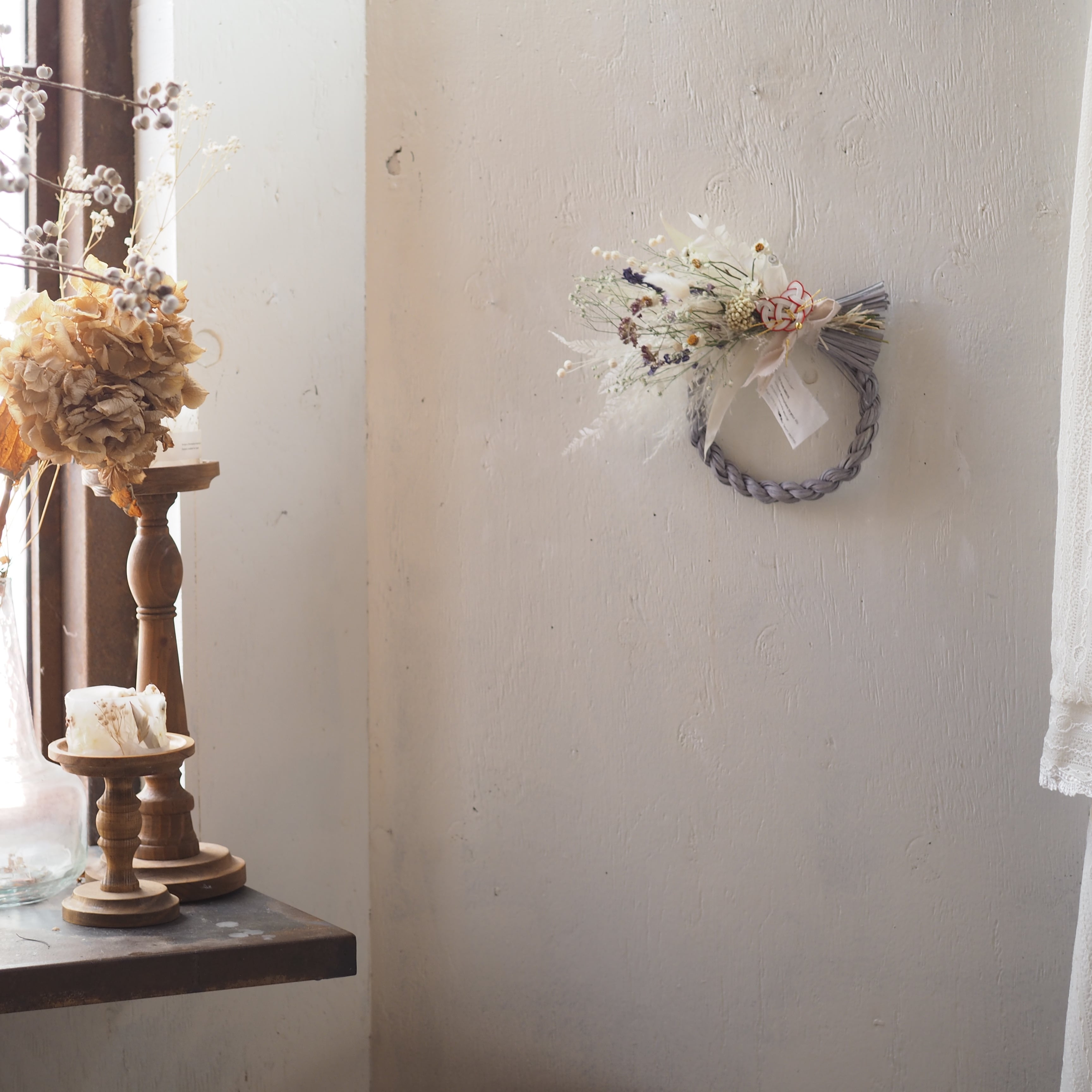 ナチュラルな素材を使った、個性溢れるデザインに仕上げた一点もののしめ飾り。