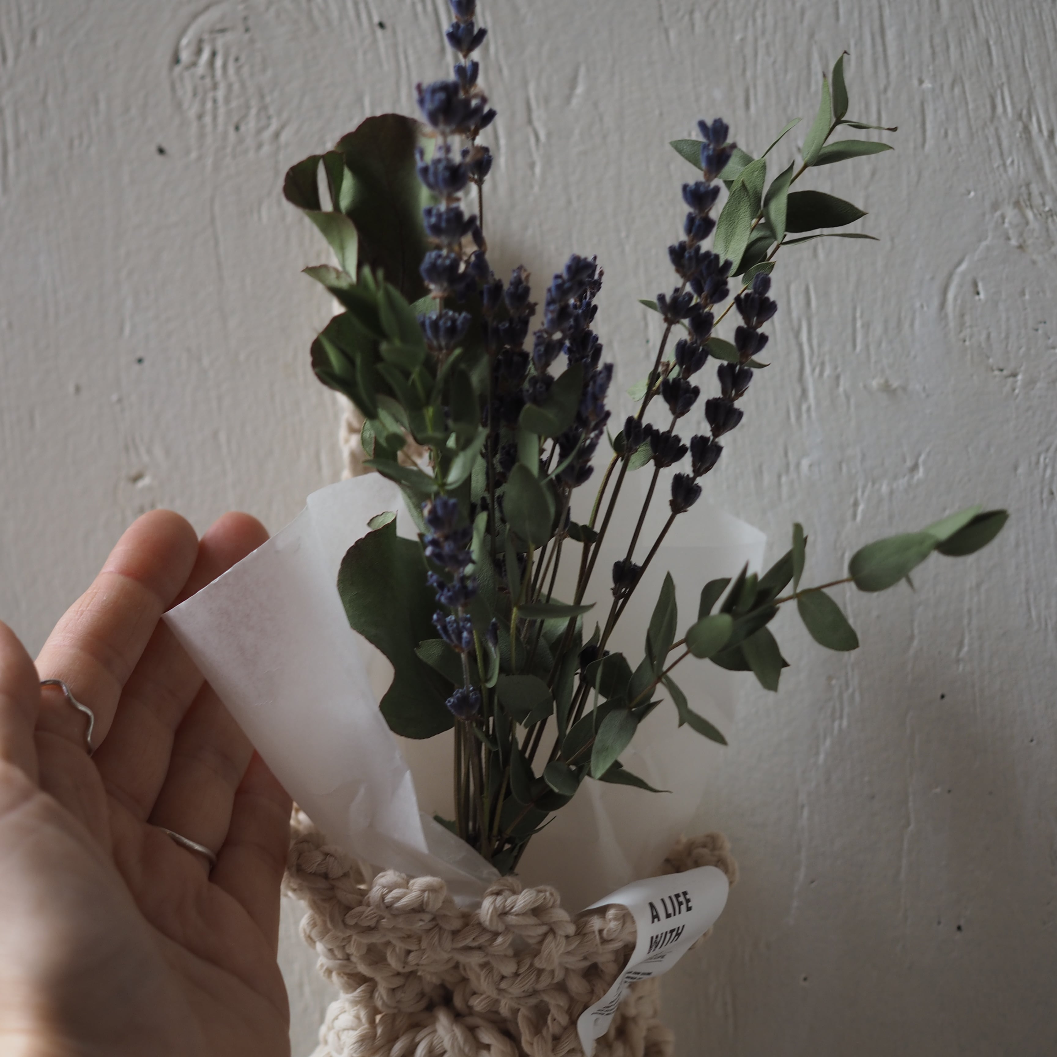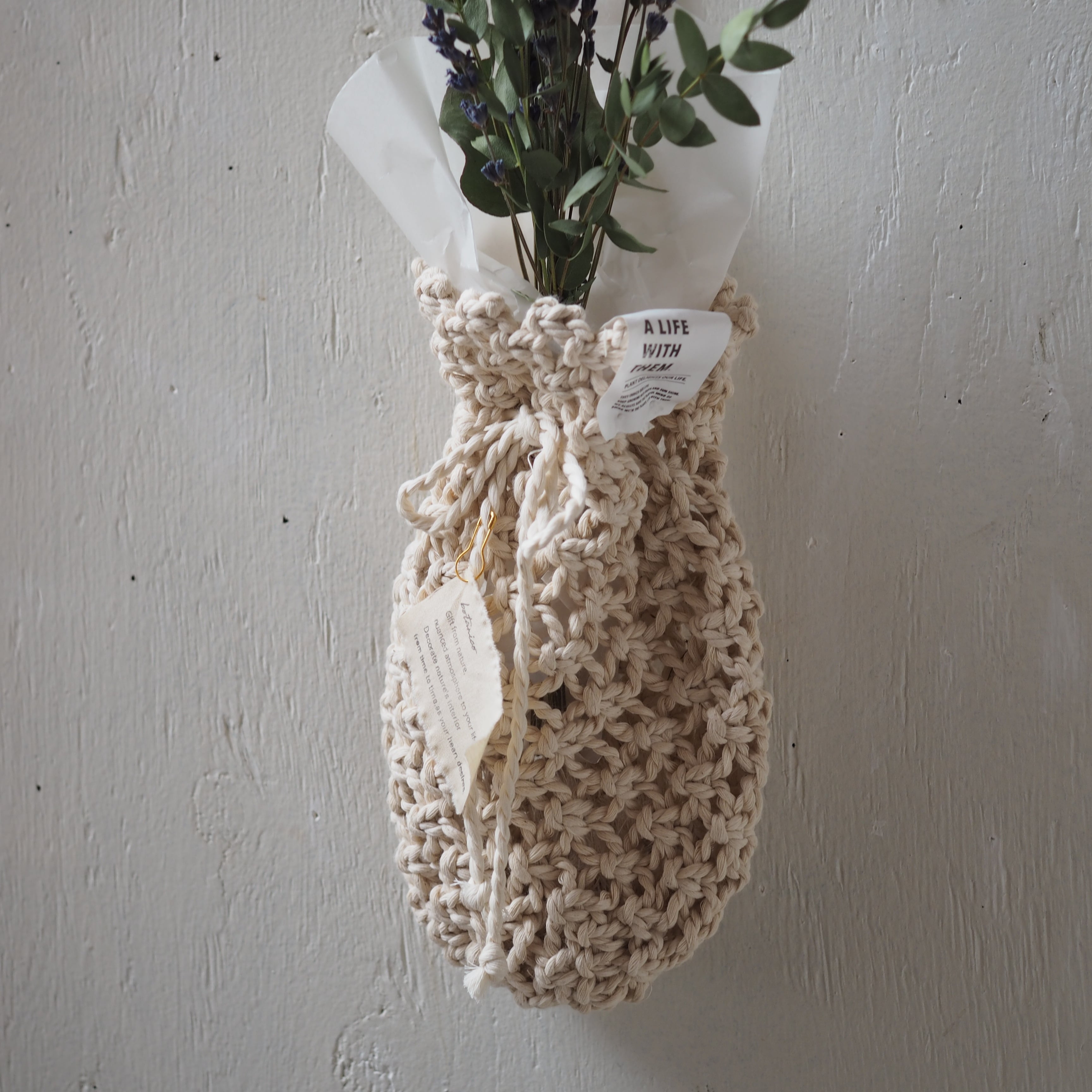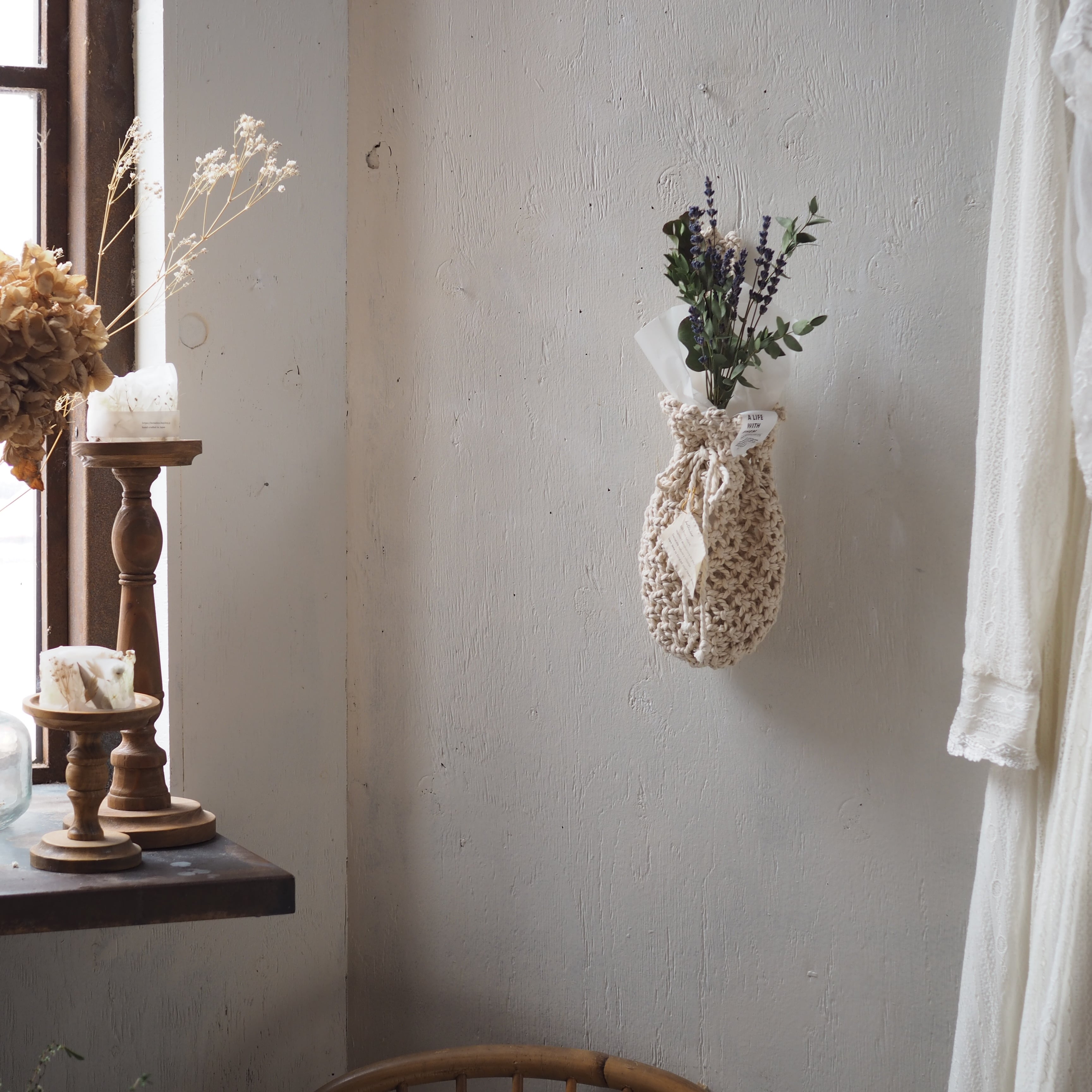 コットンのナチュラルな風合いがドライフラワーにぴったり!