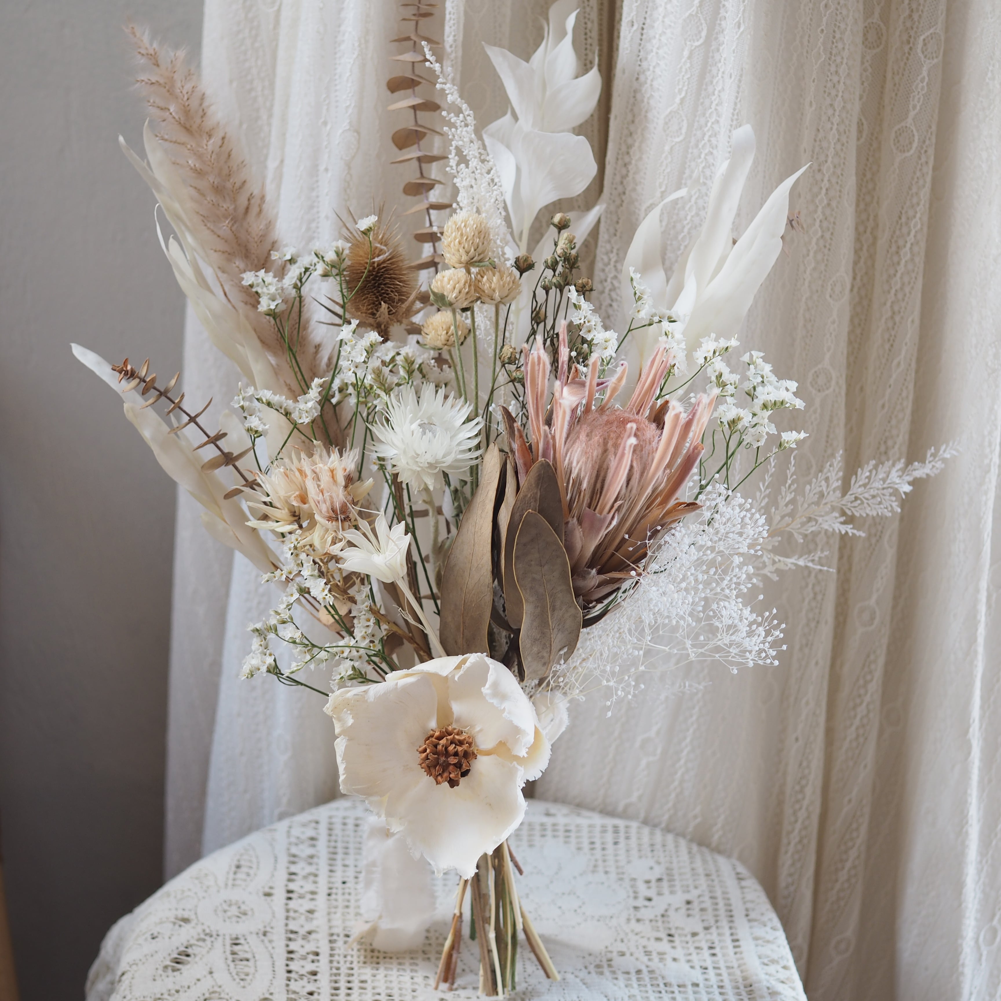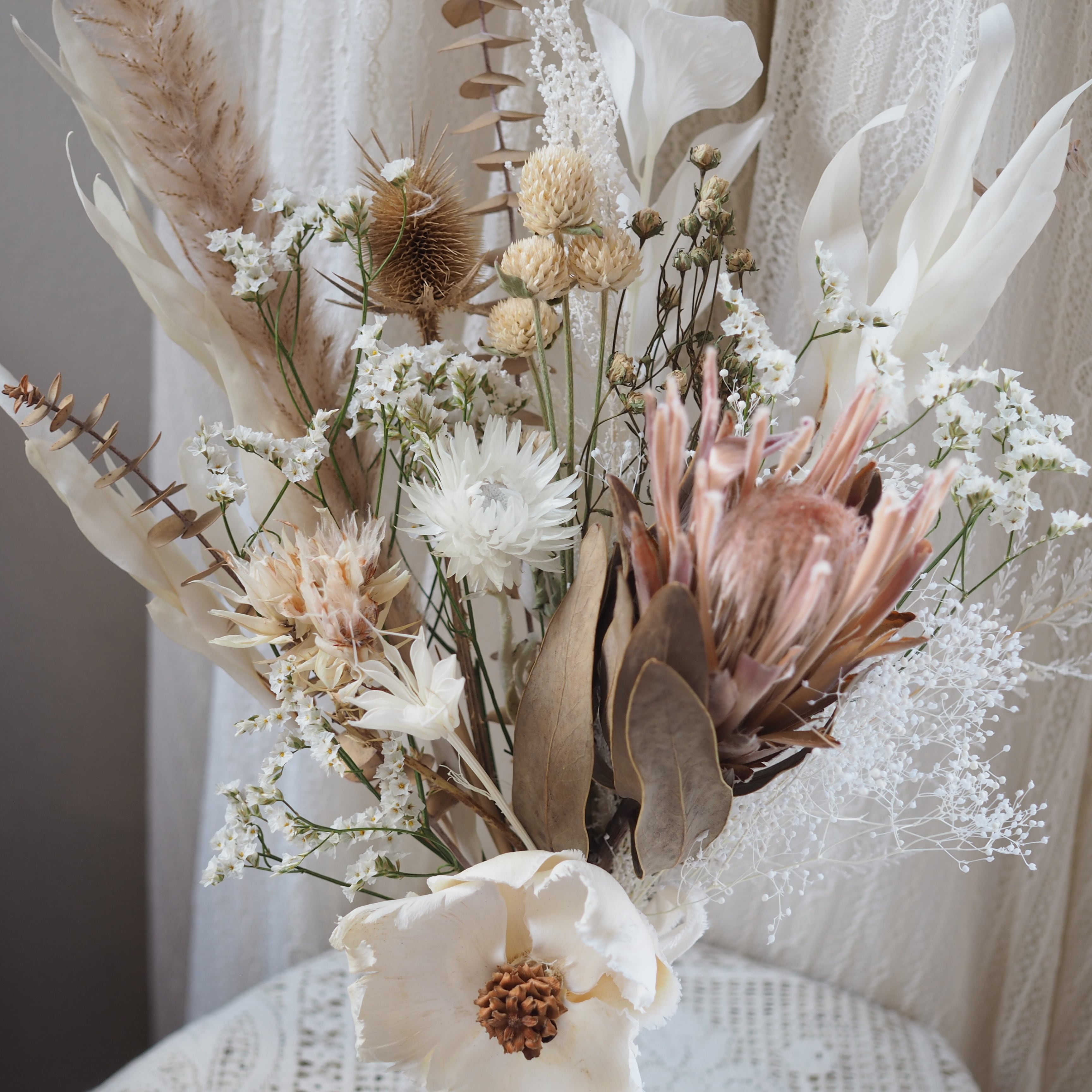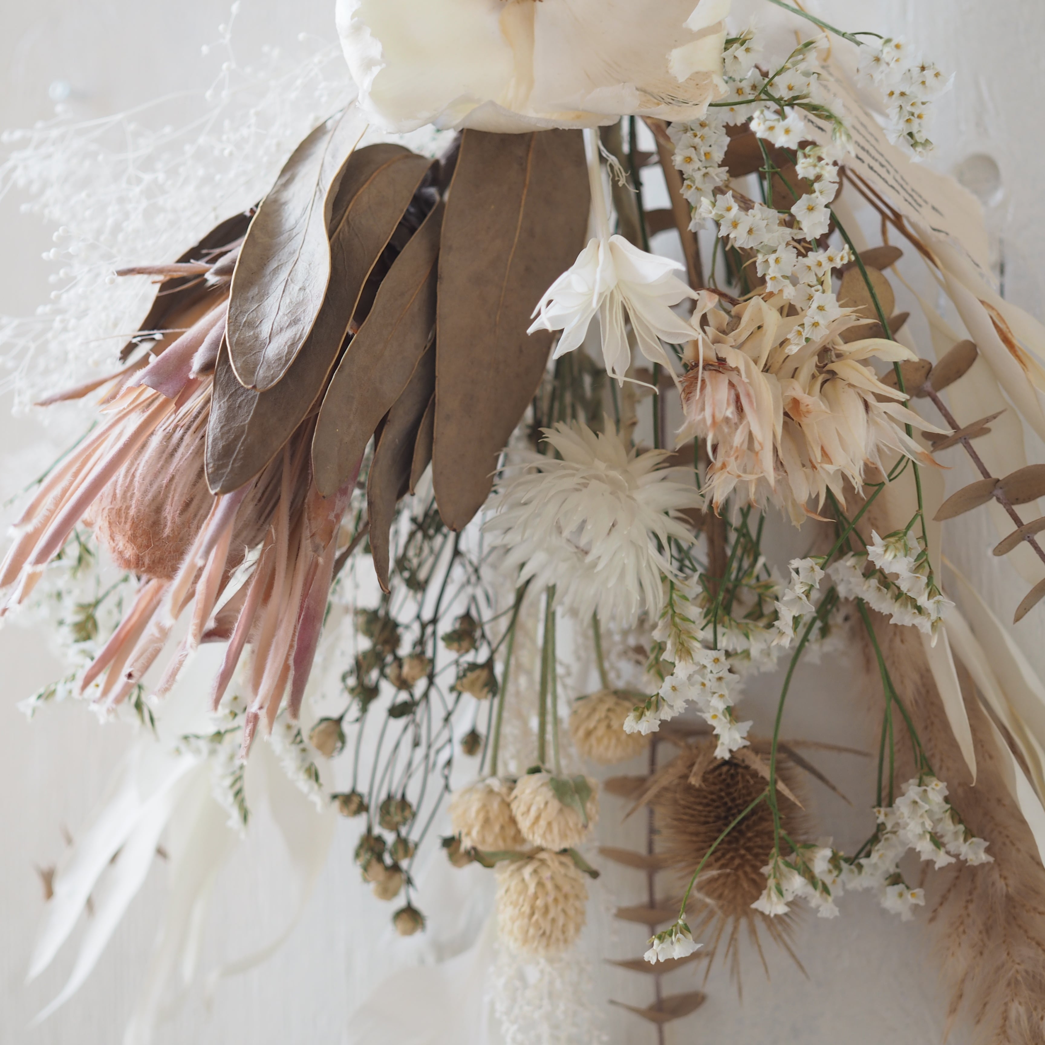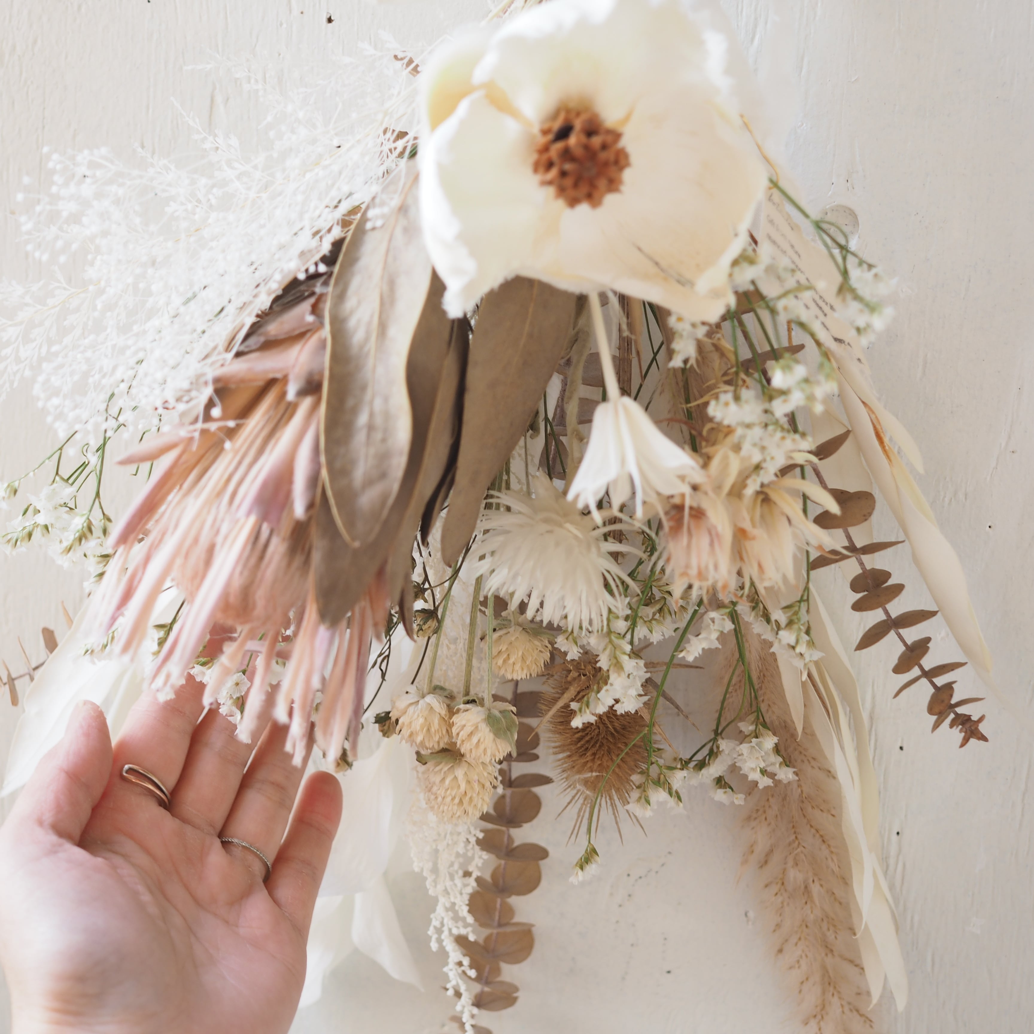 自然の美しさが詰まったドライフラワーのスワッグ。