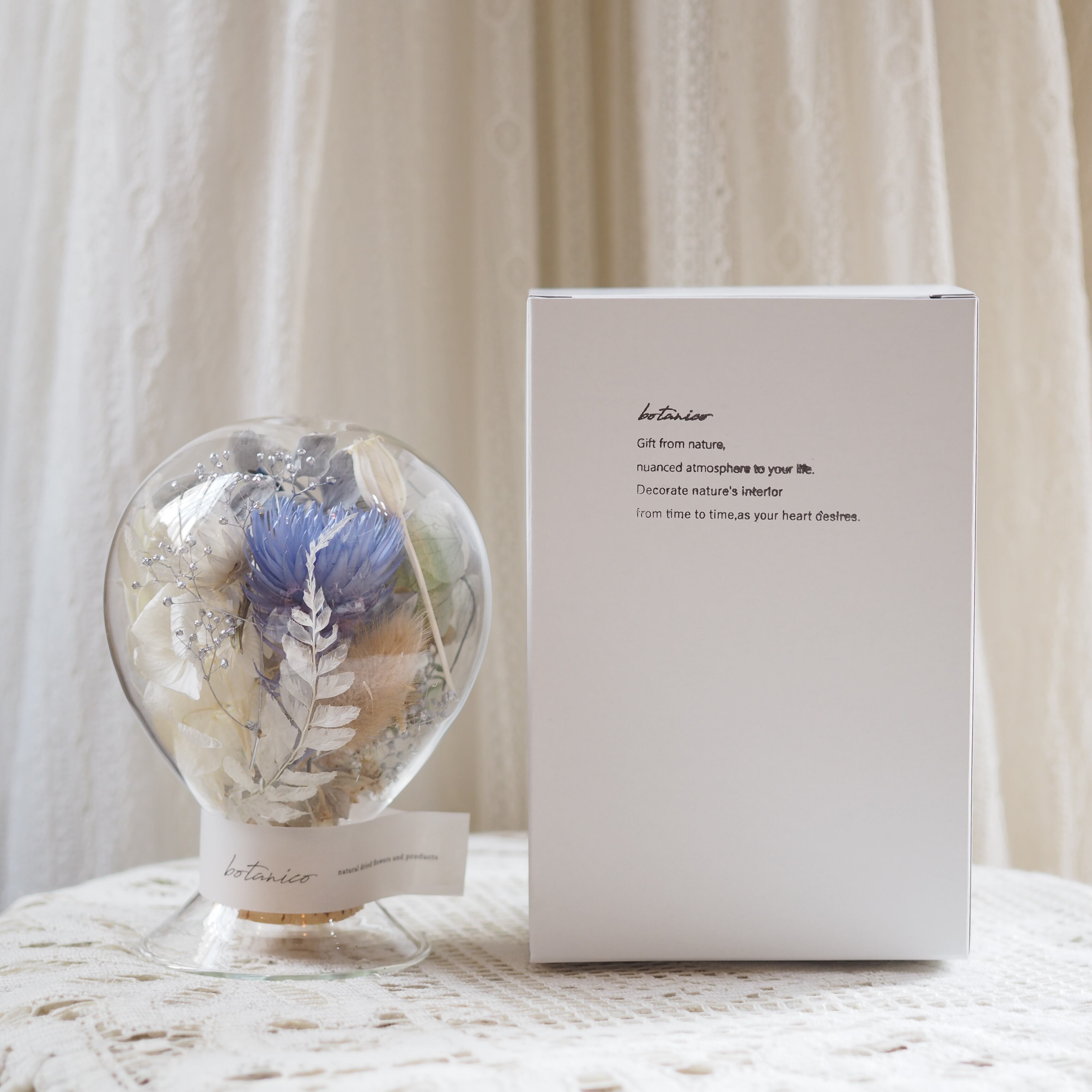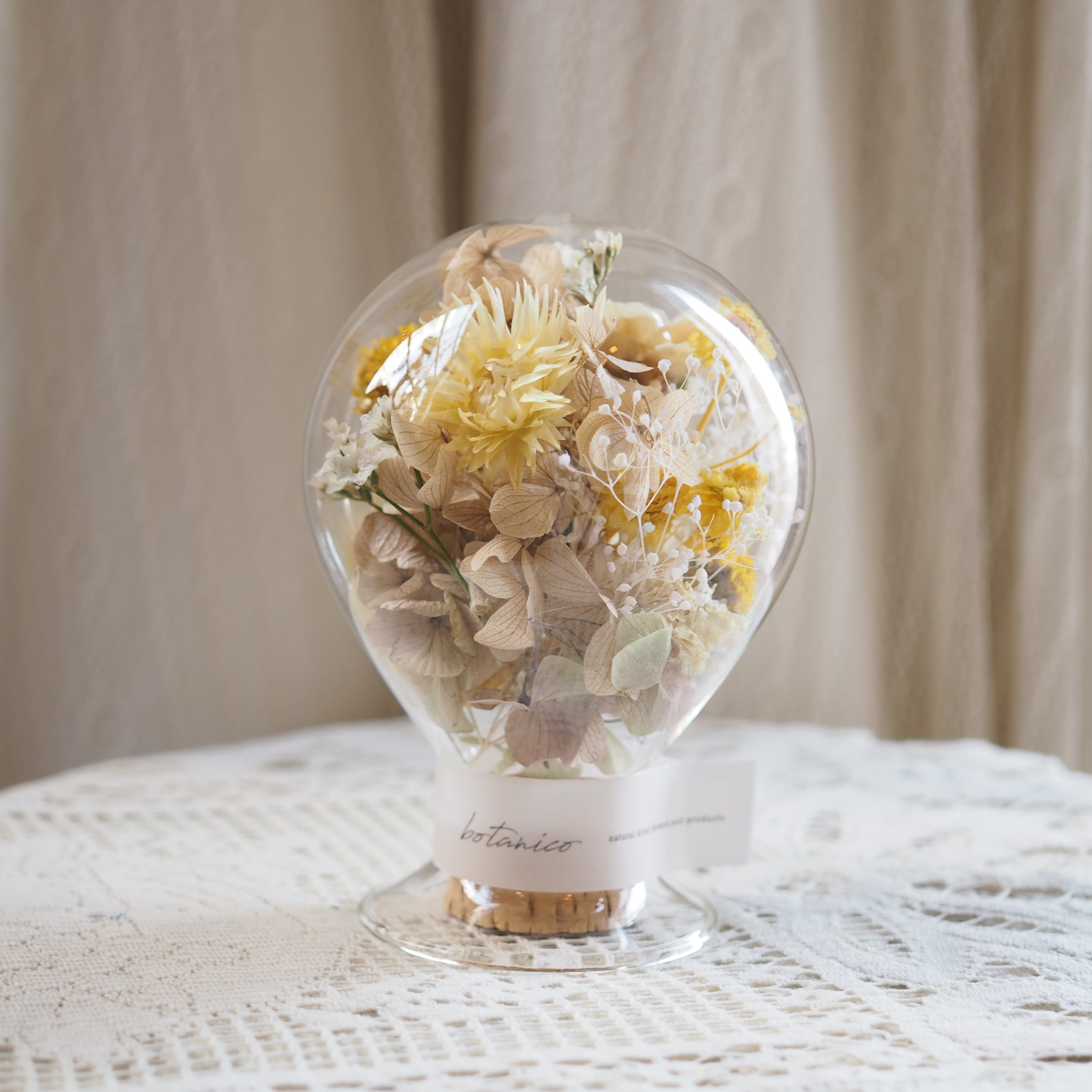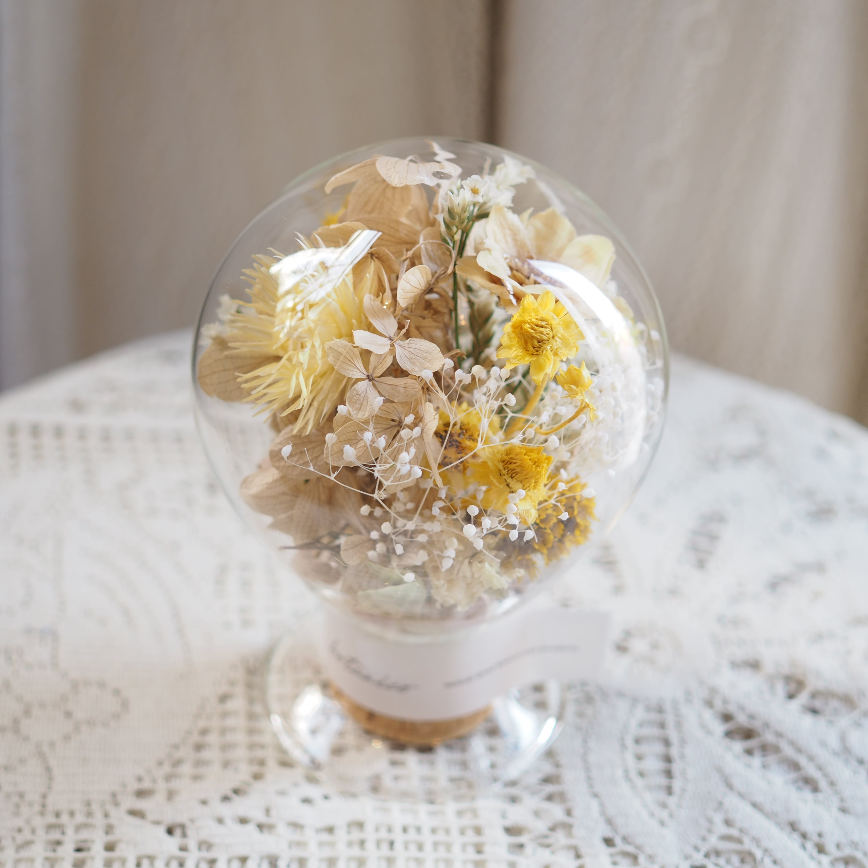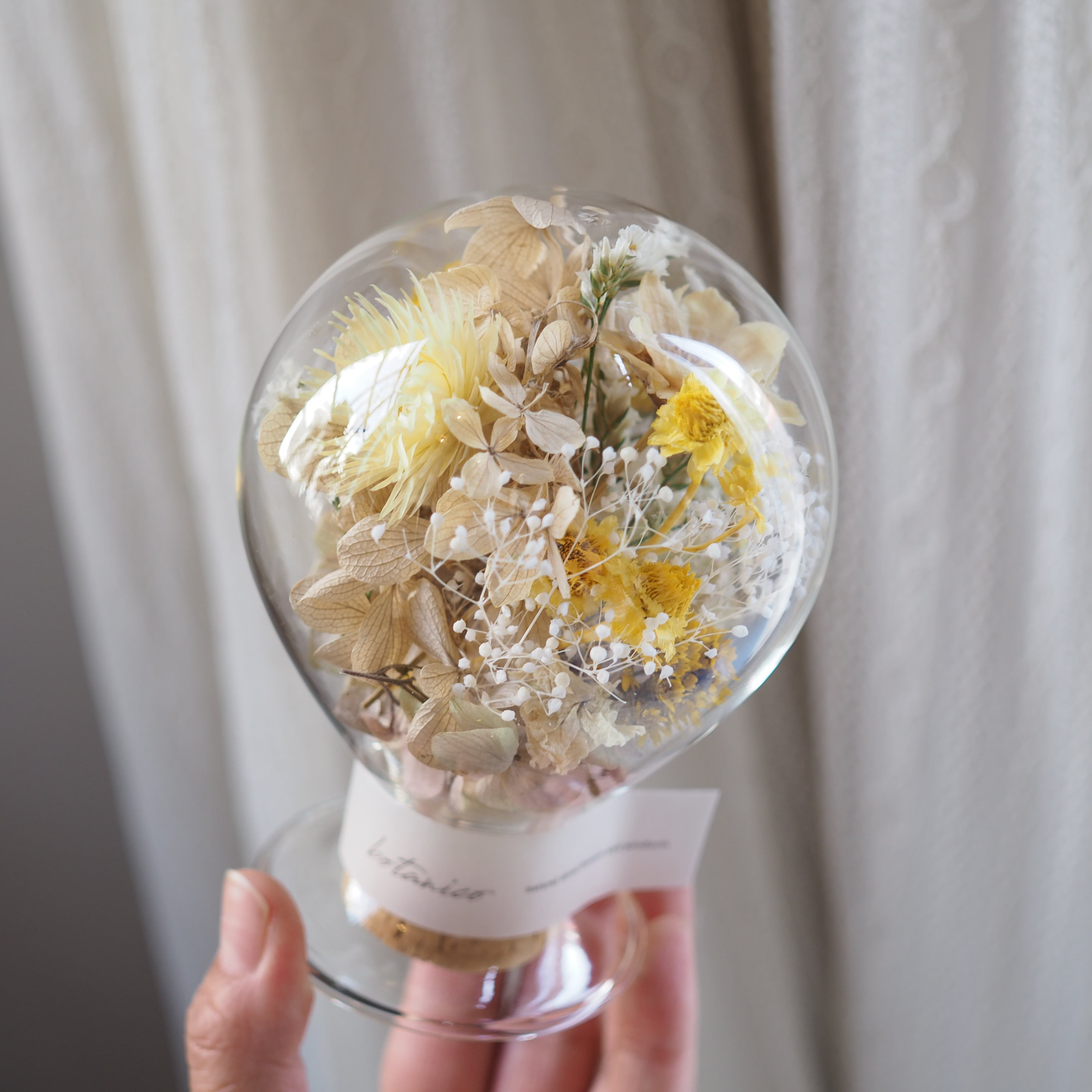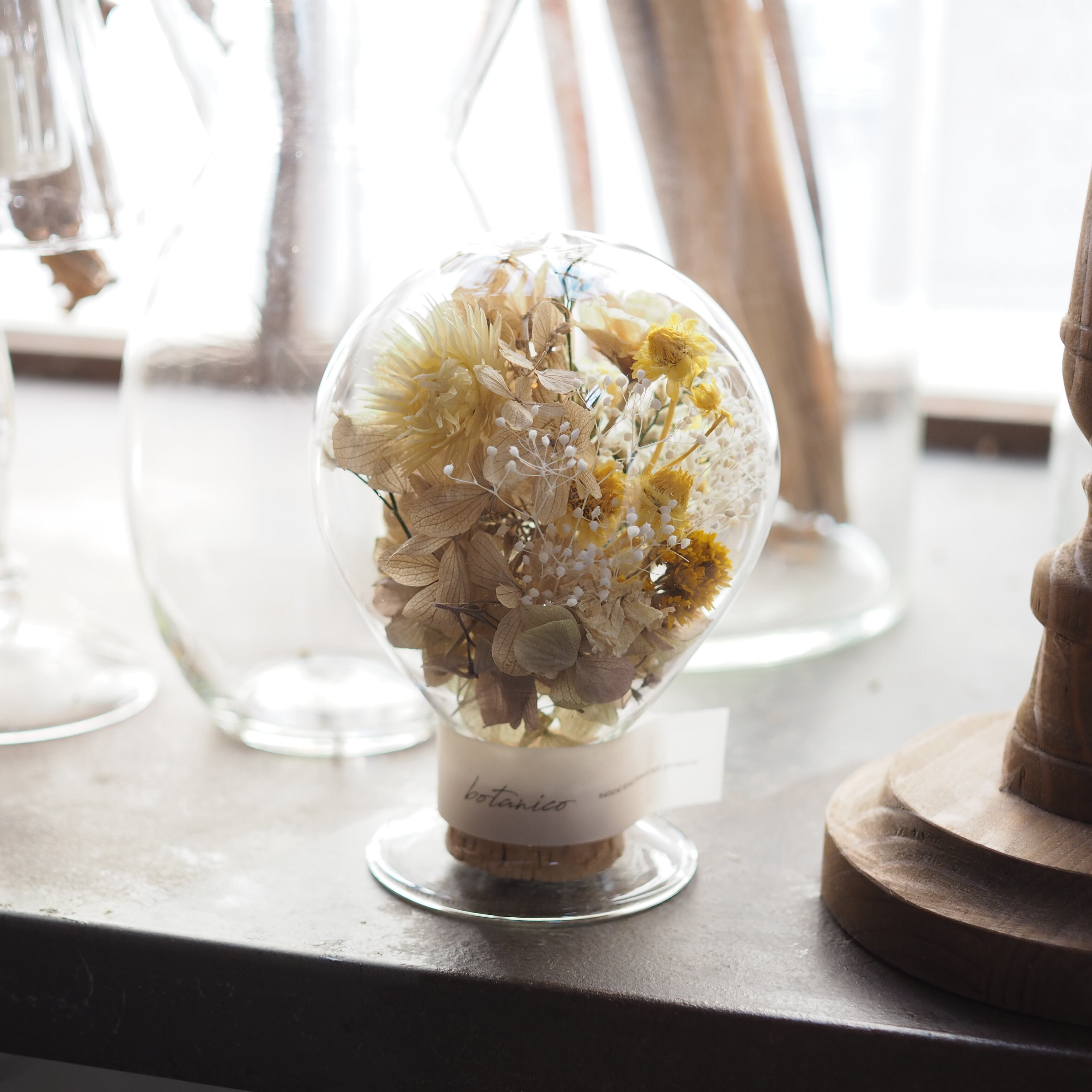 手作業で丁寧に仕上げたコルク瓶の中には、通年で扱いやすいドライフラワーを使用しています。