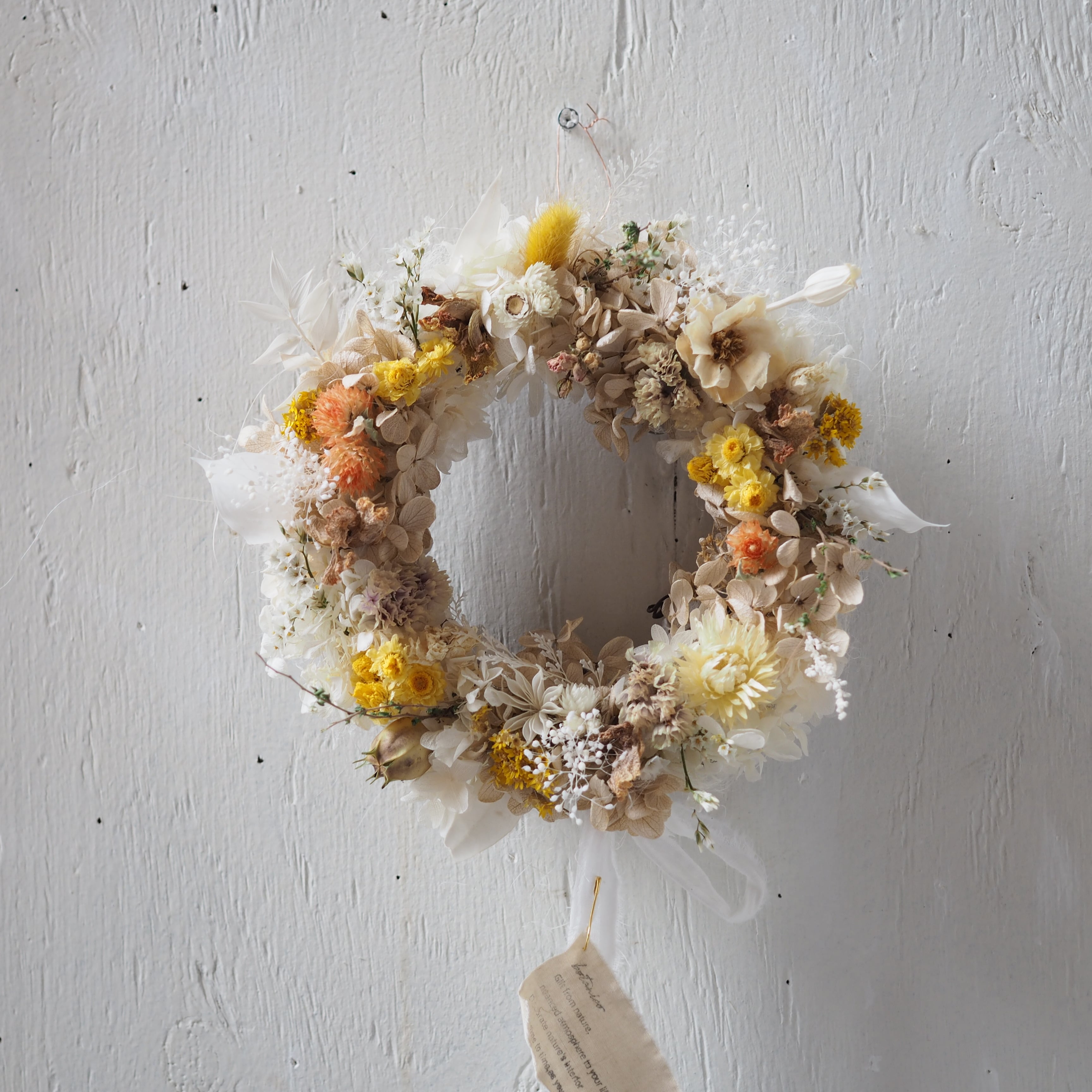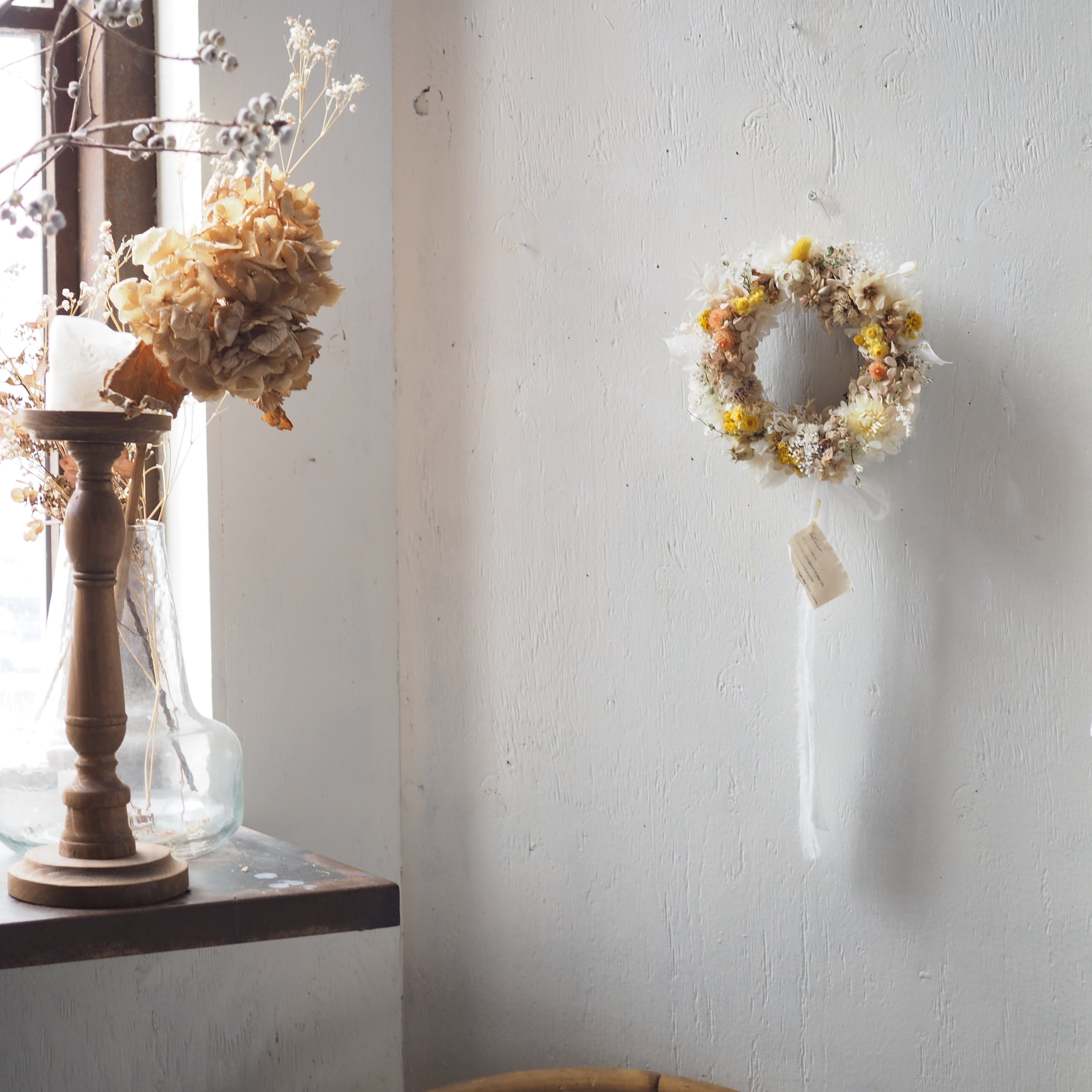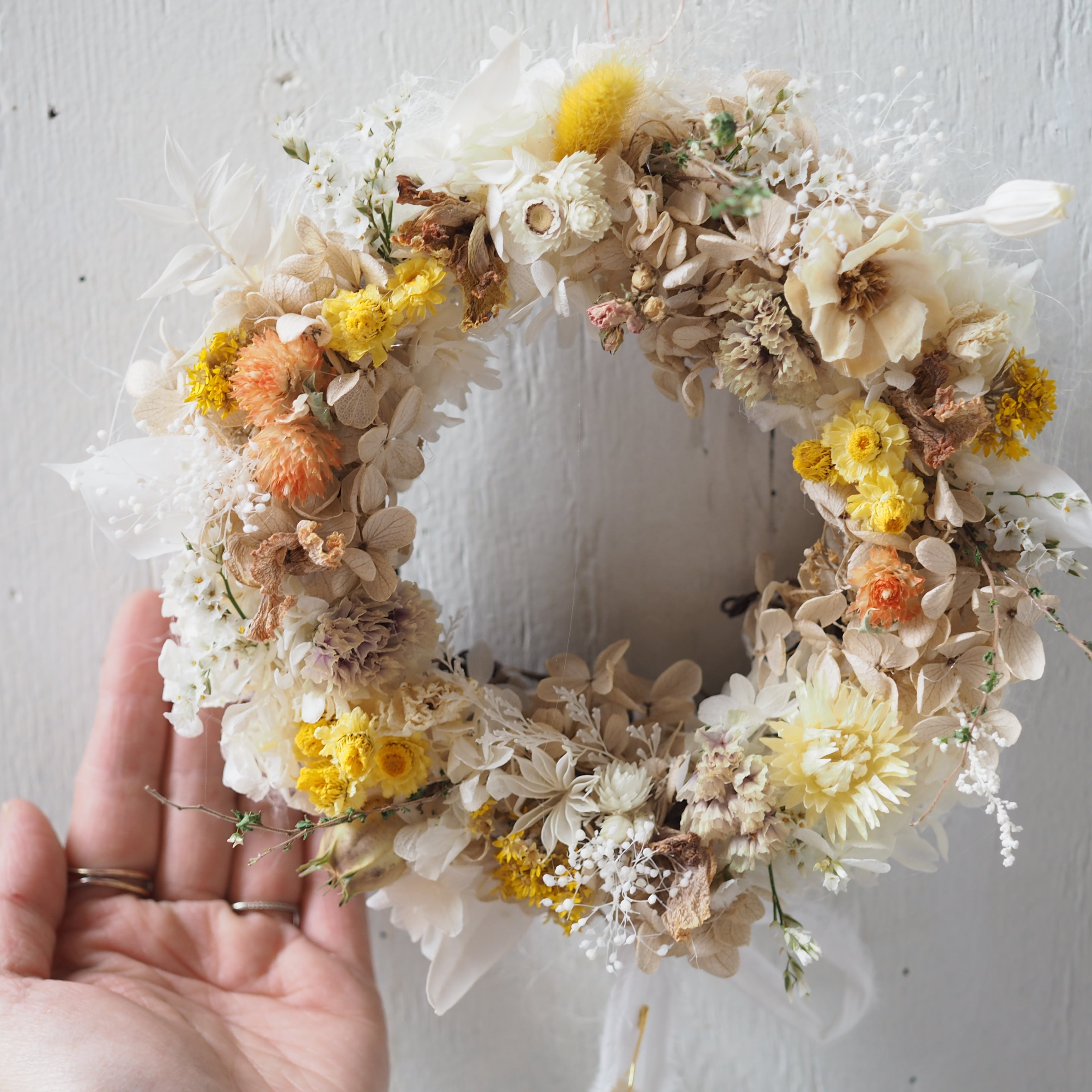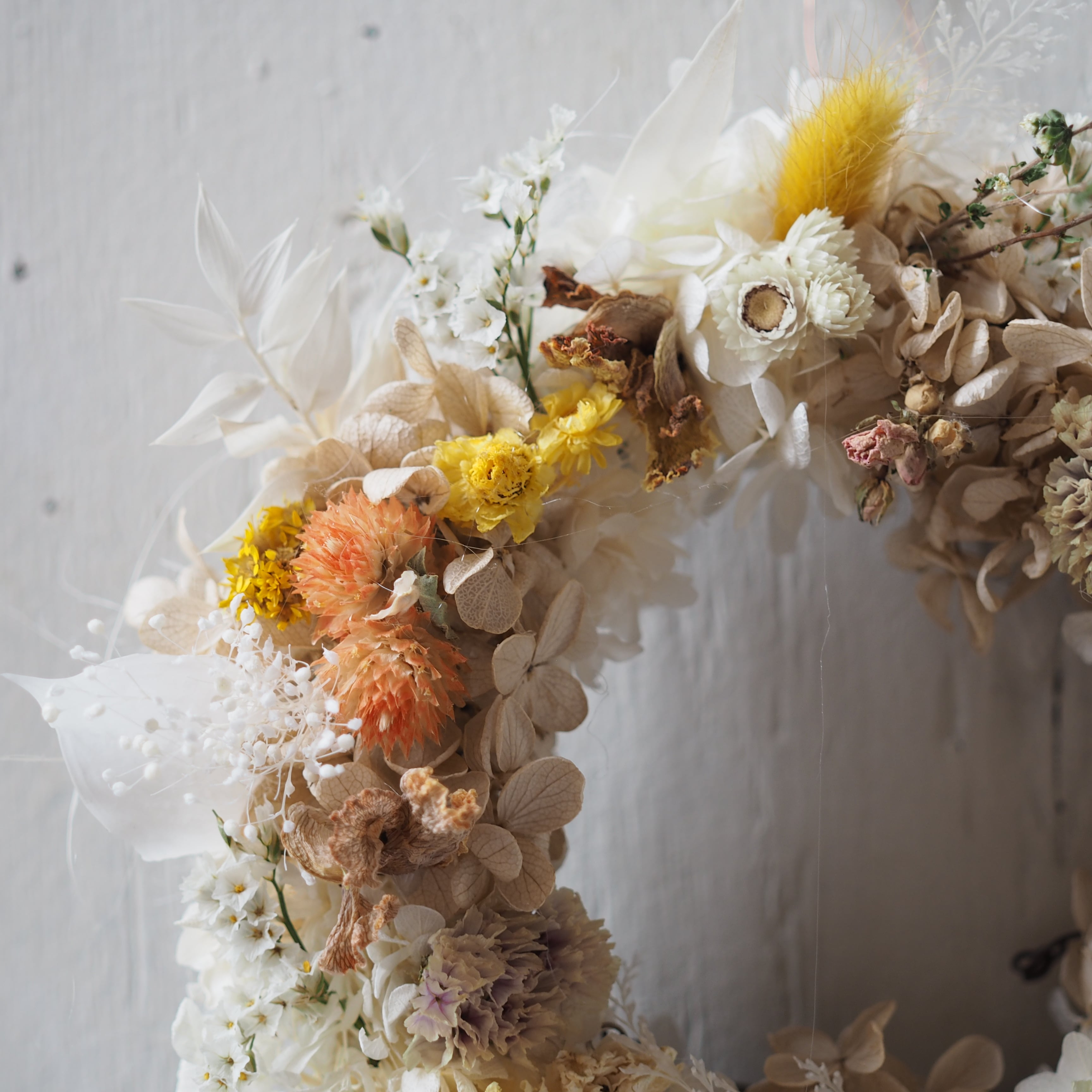 ドライフラワーをぐるっと一周、たっぷりと贅沢にあしらったリースです。