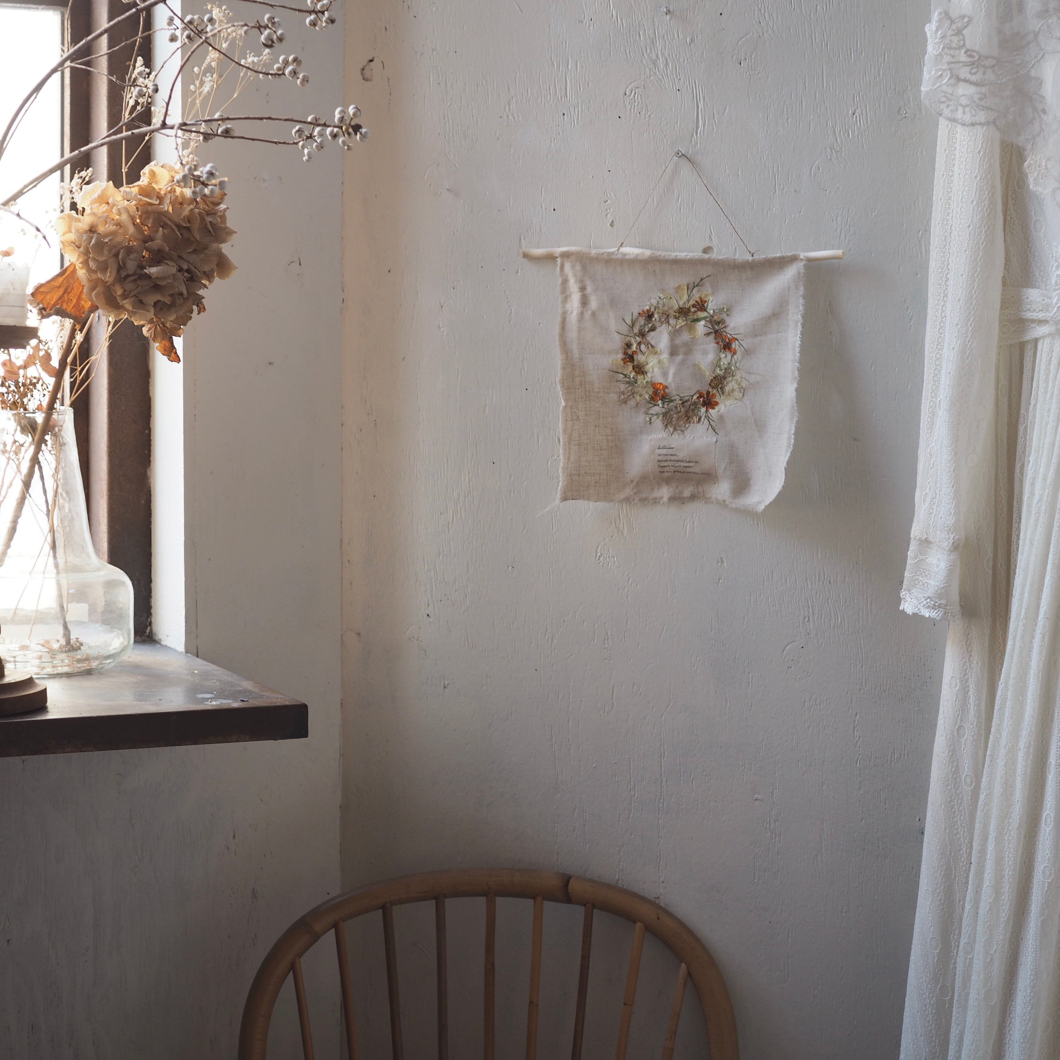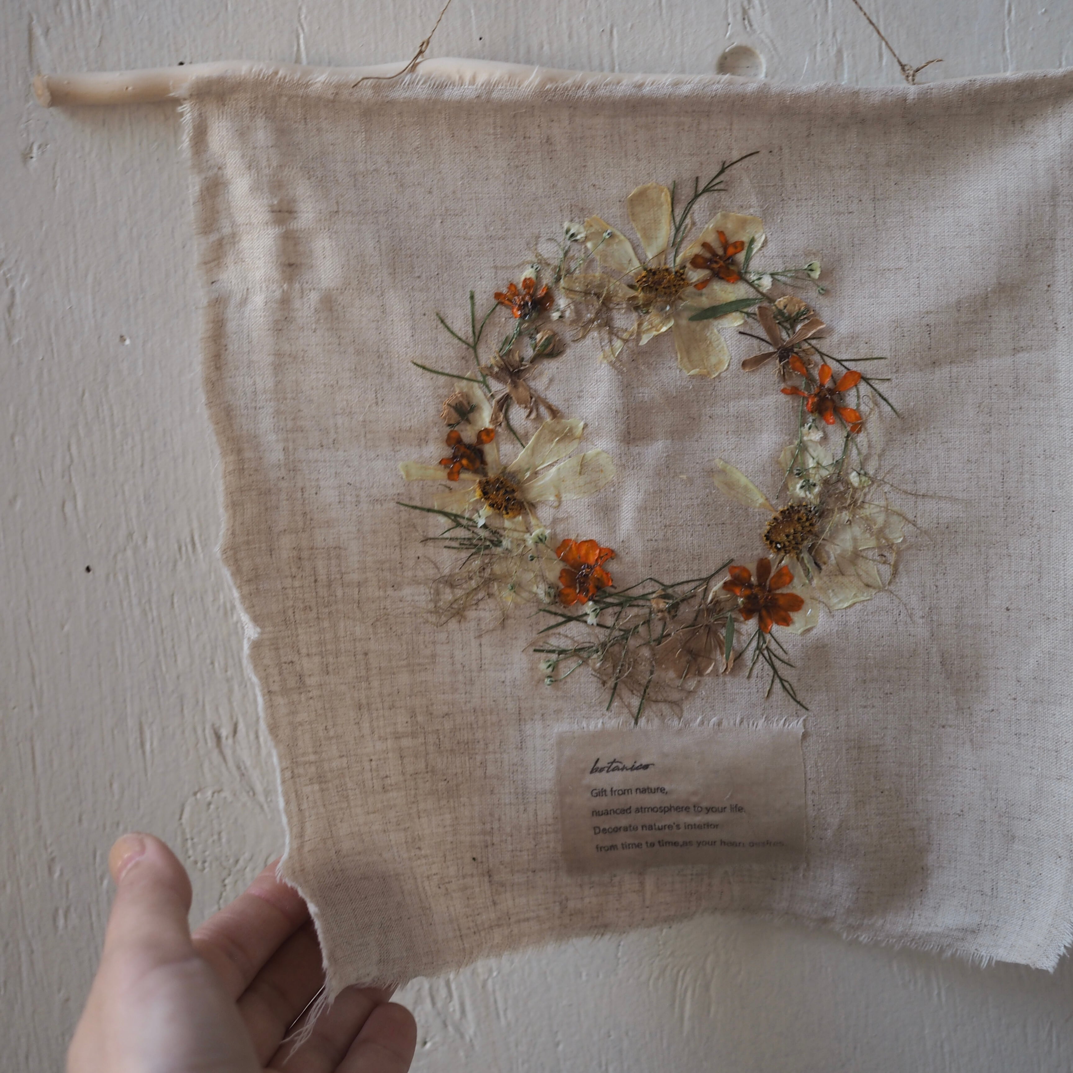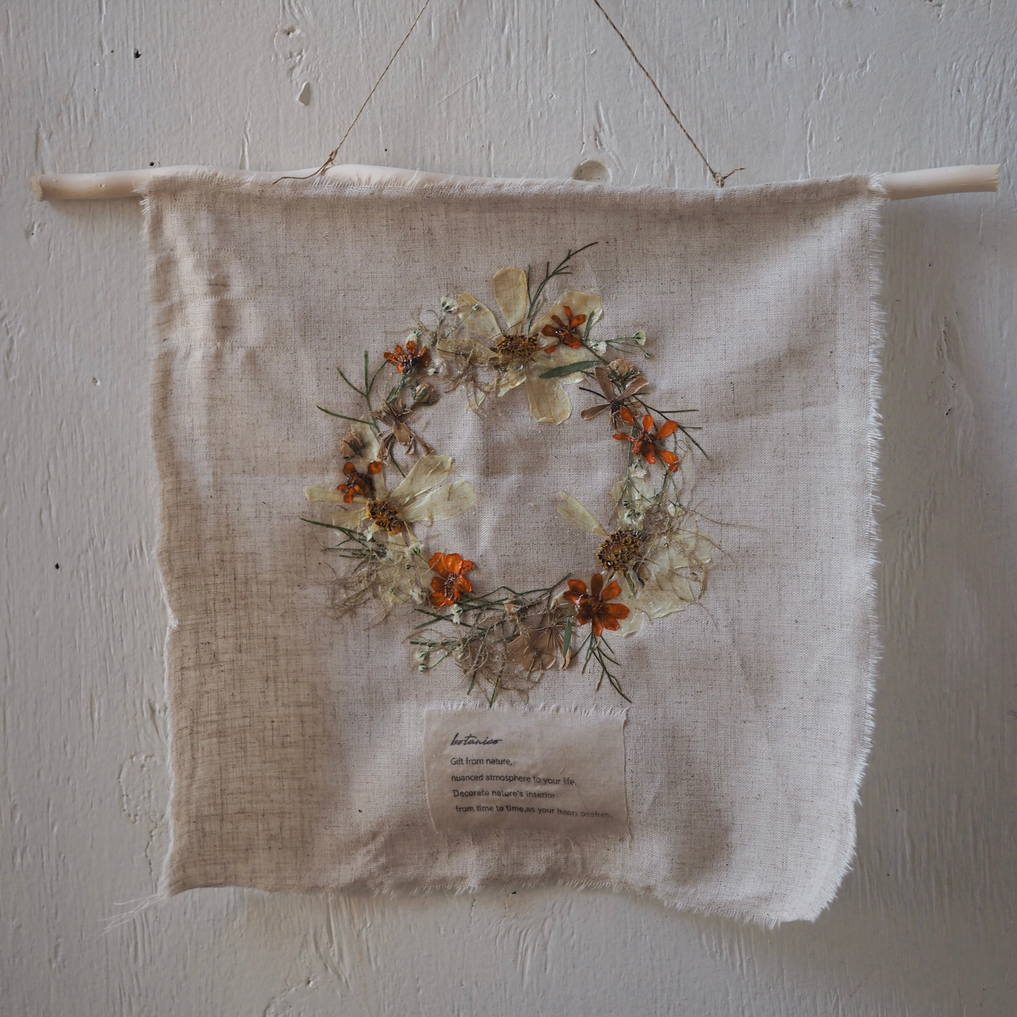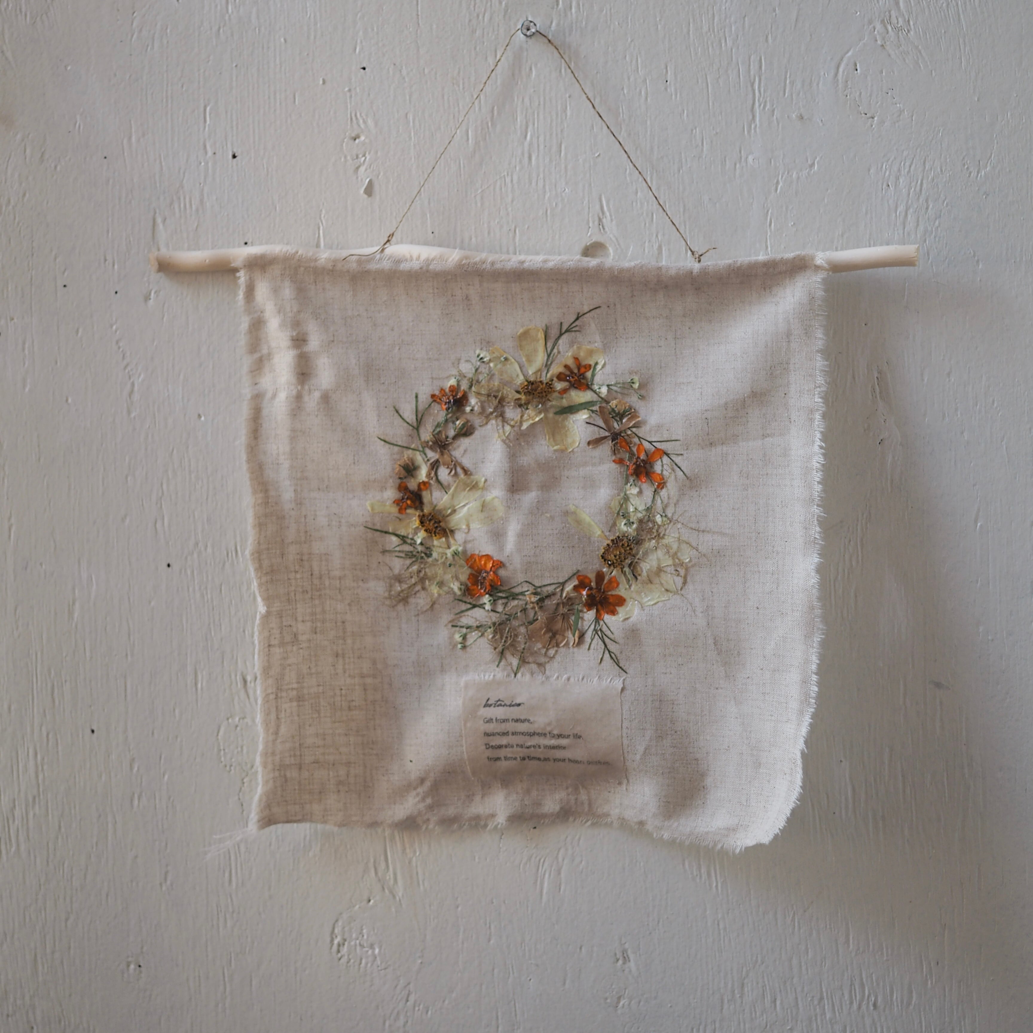 布にデコパージュして仕上げたタペストリーです。