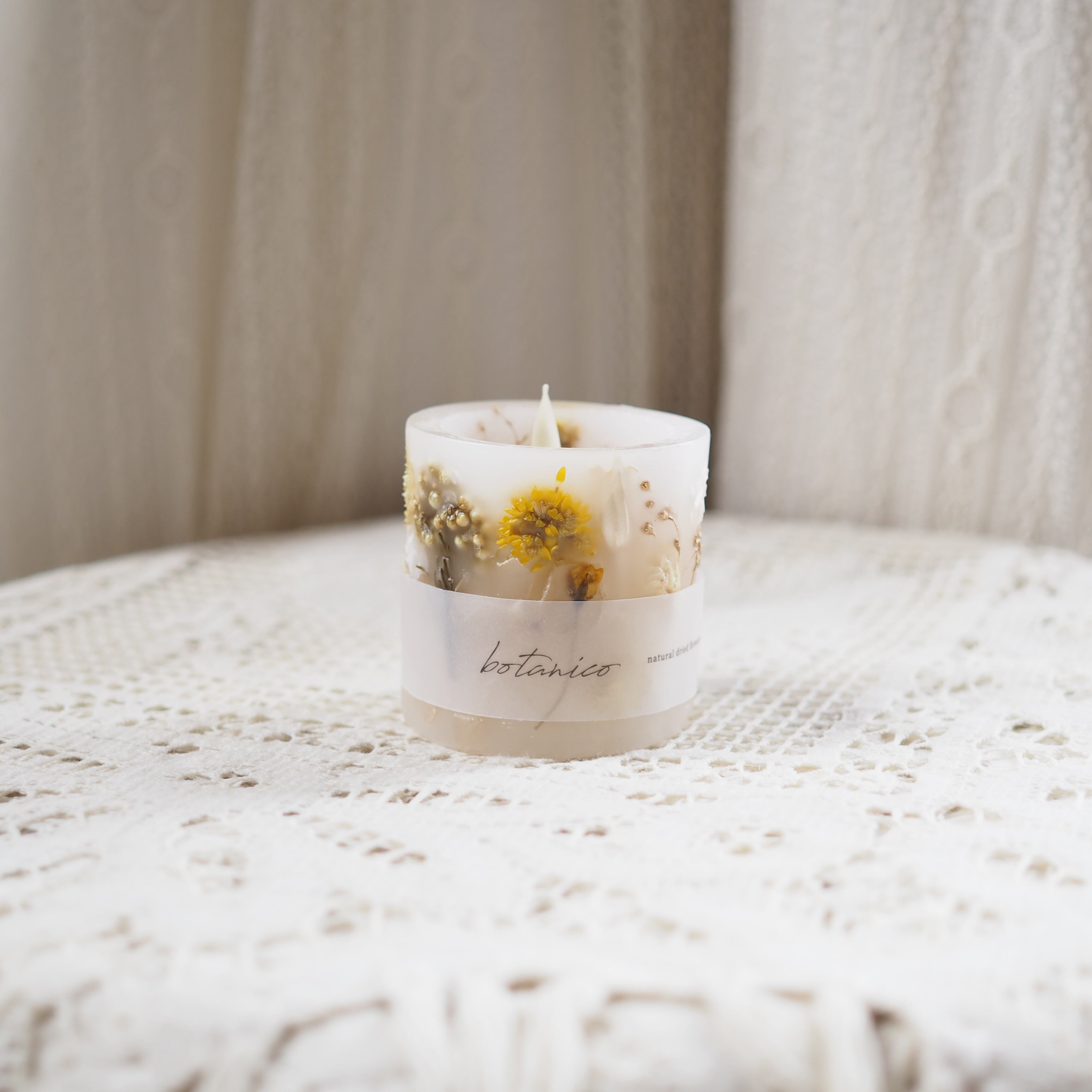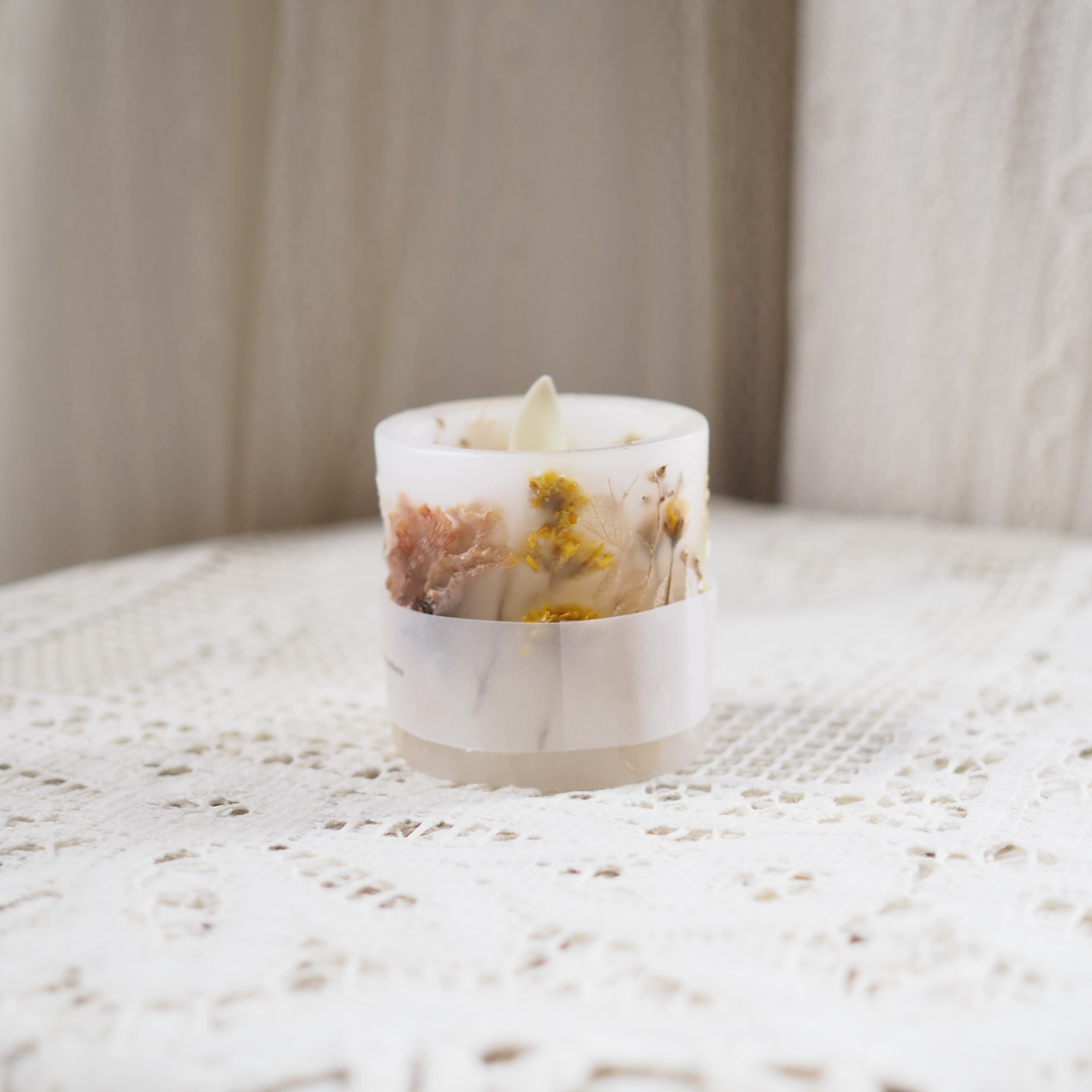 ドライフラワーや押し花など、さまざまな形状のお花を使用しました。