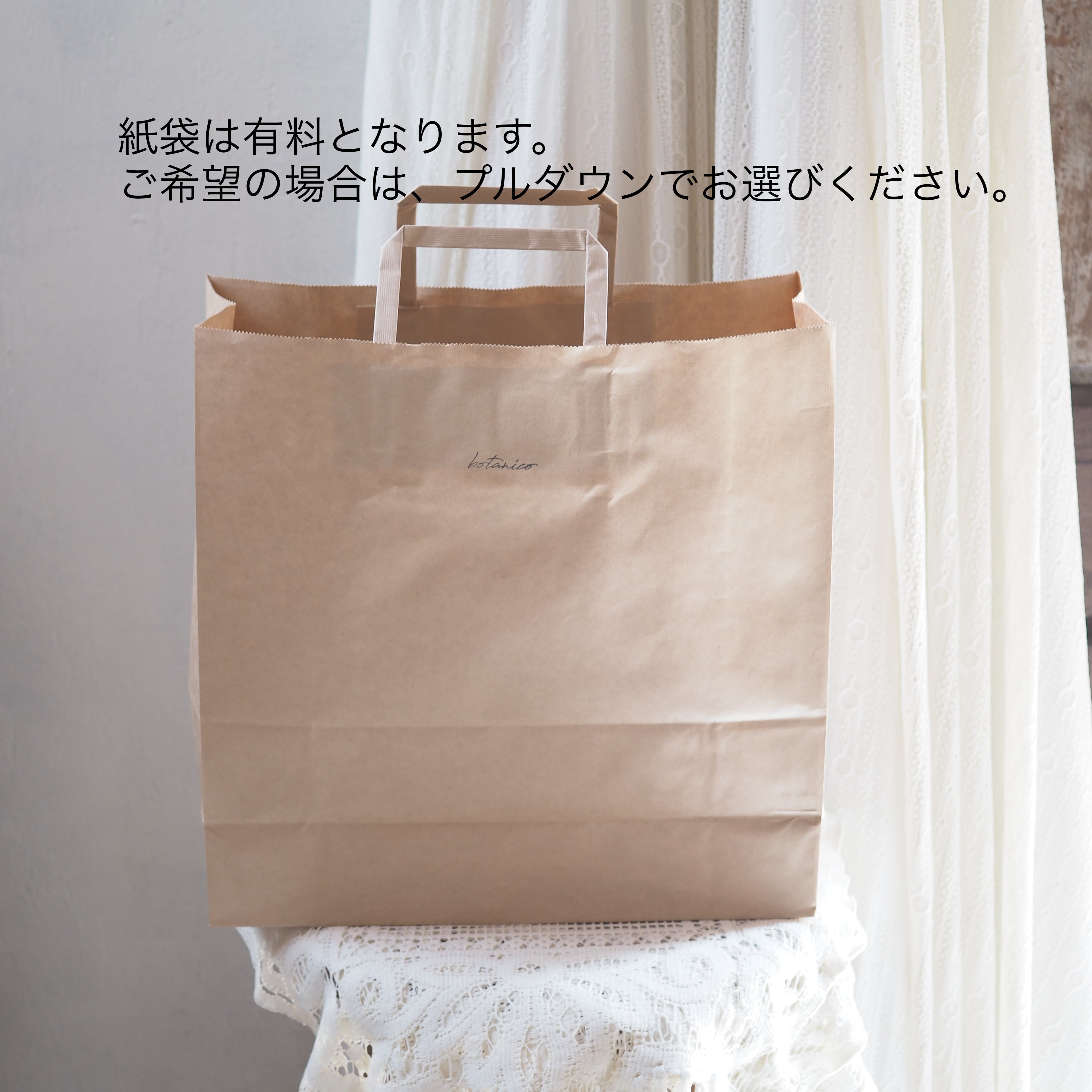 紙袋は有料となっております。ご希望の方は、オプション欄のプルダウンよりお選びください。