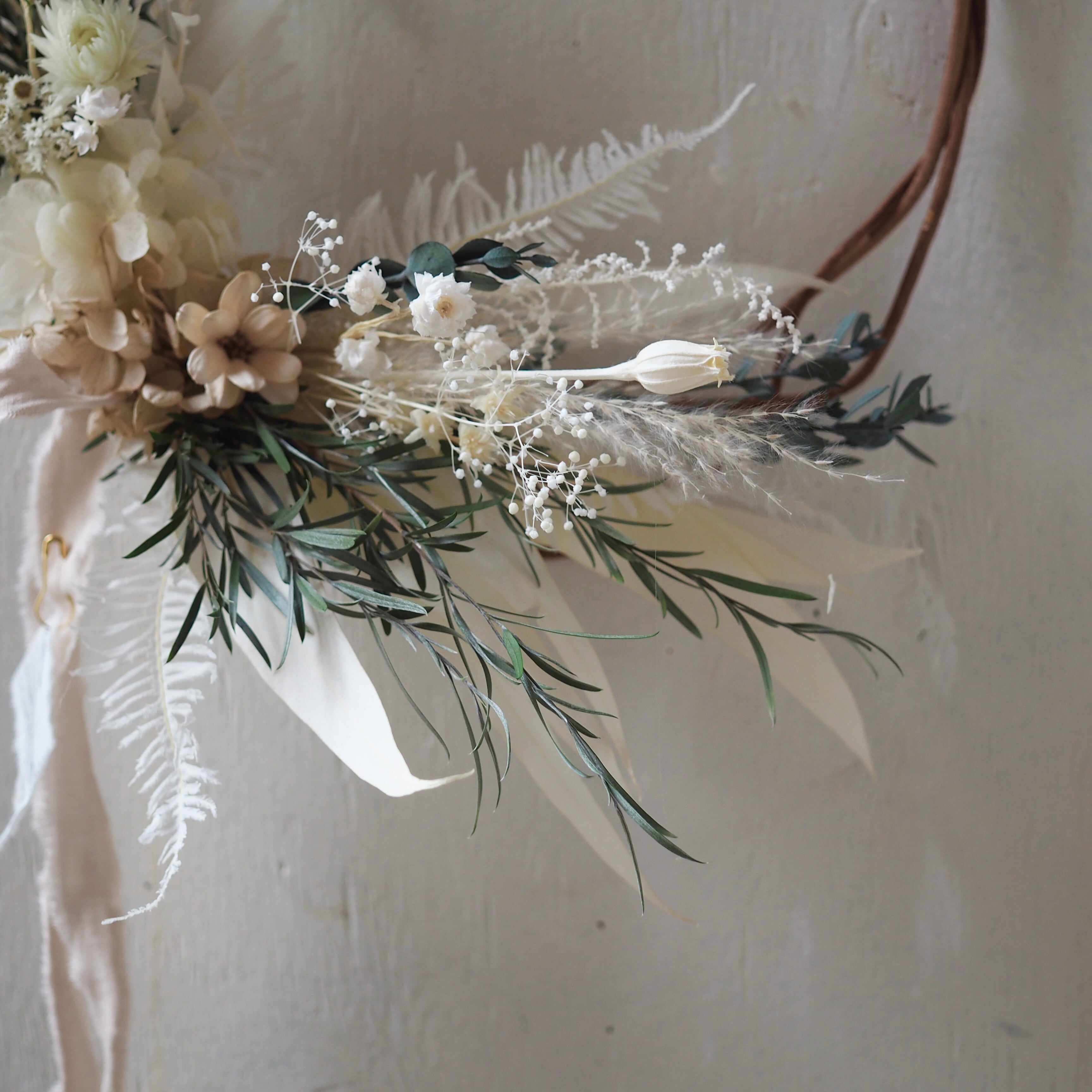 自然のままの美しさをそのままに、空間にやさしい風を運ぶようなリースです。
