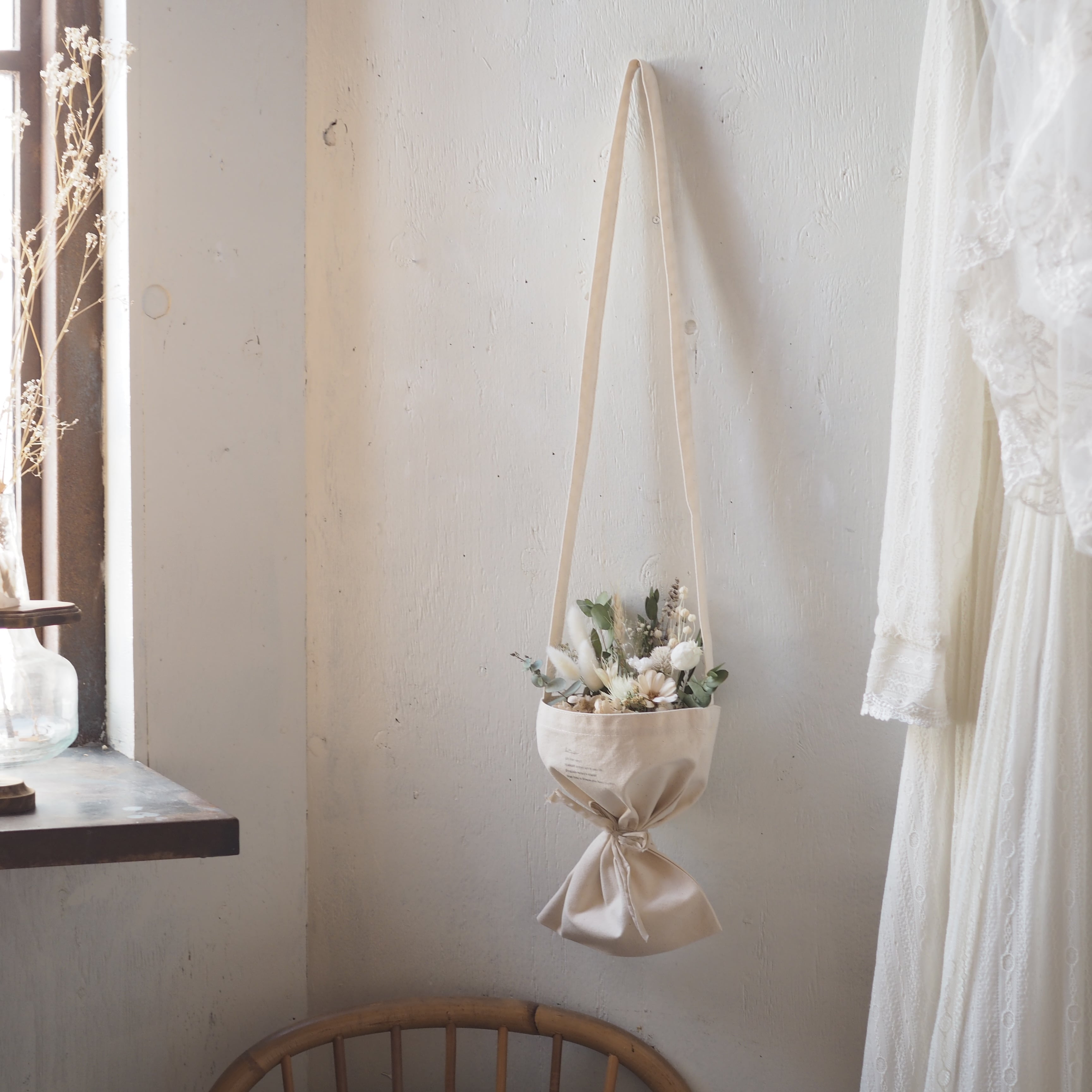 壁やフックに無造作に引っ掛ければ、存在感がありながらも落ち着いた雰囲気で、お部屋のアクセントとして最適です。
