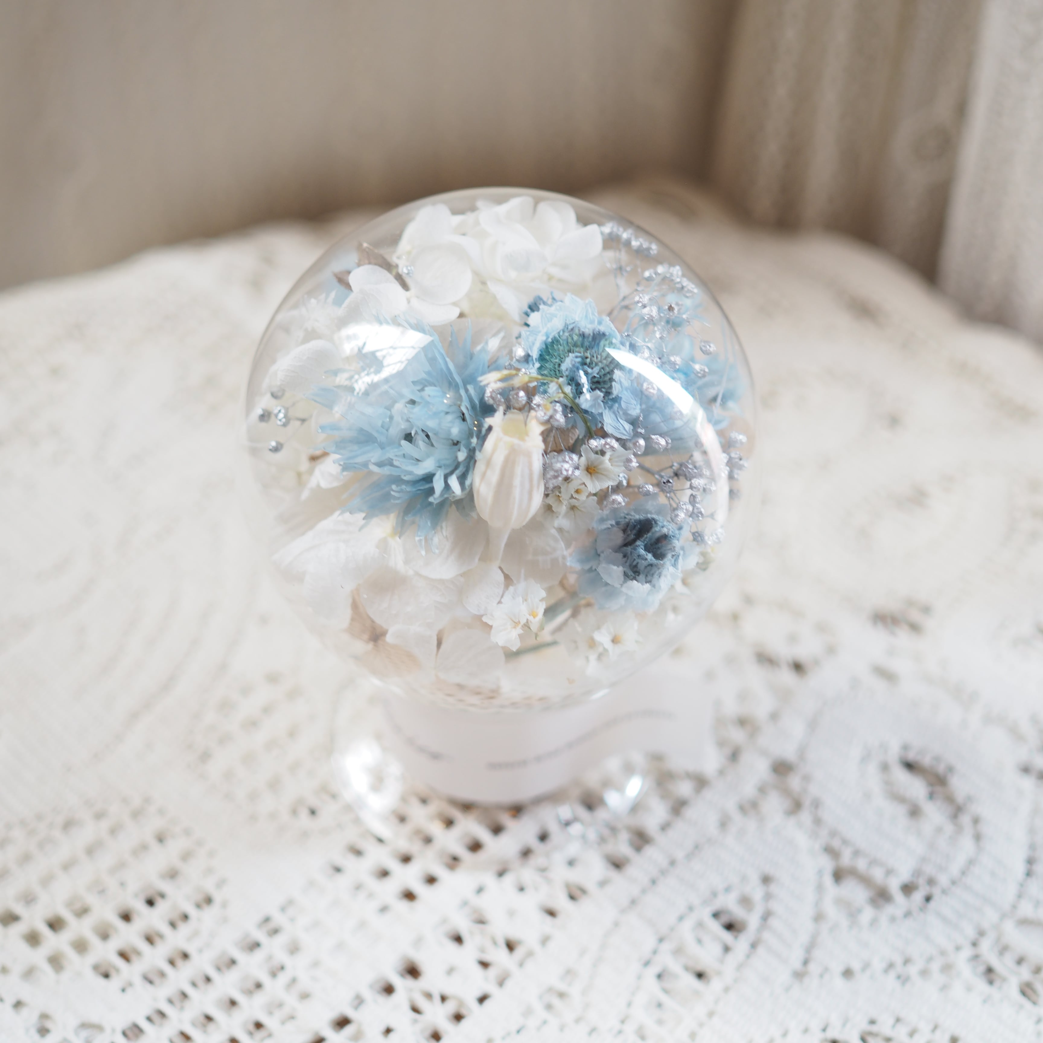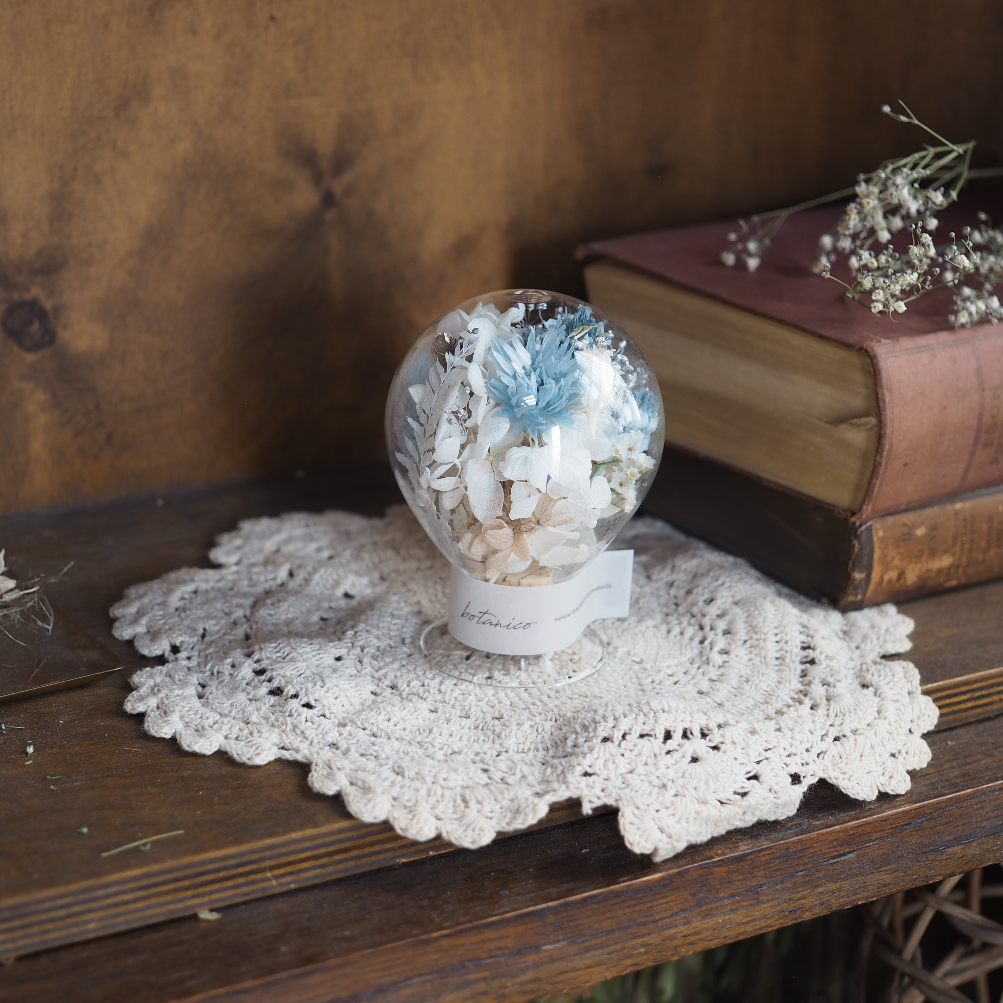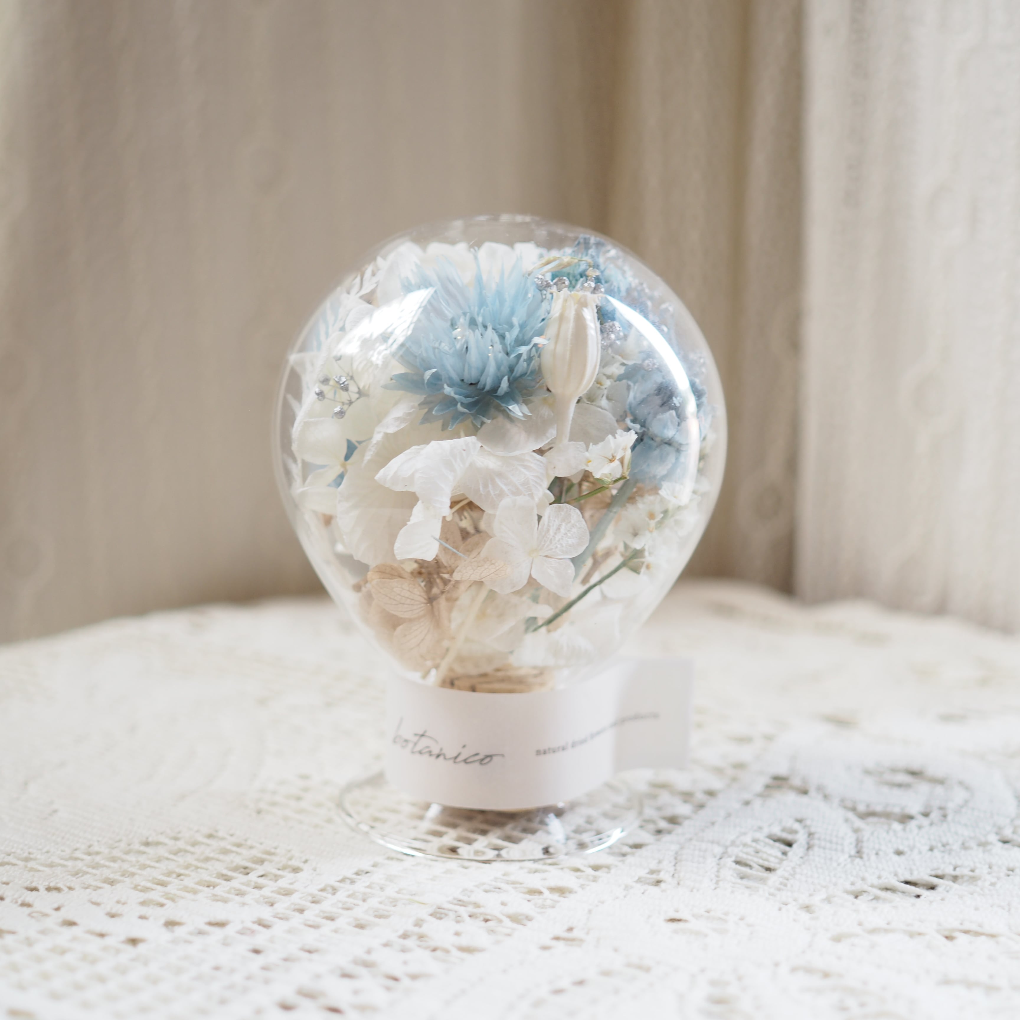手作業で丁寧に仕上げたコルク瓶の中には、通年で扱いやすいドライフラワーを使用しています。