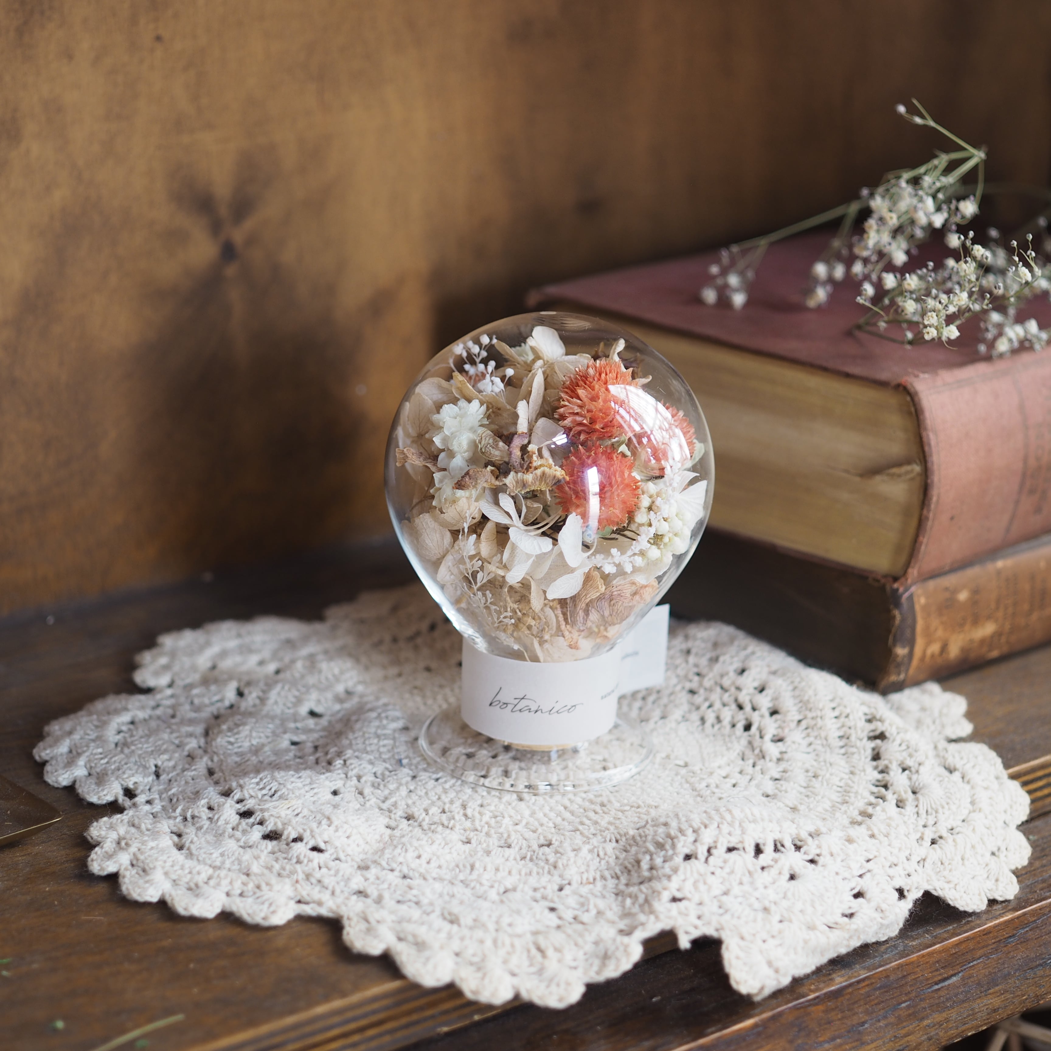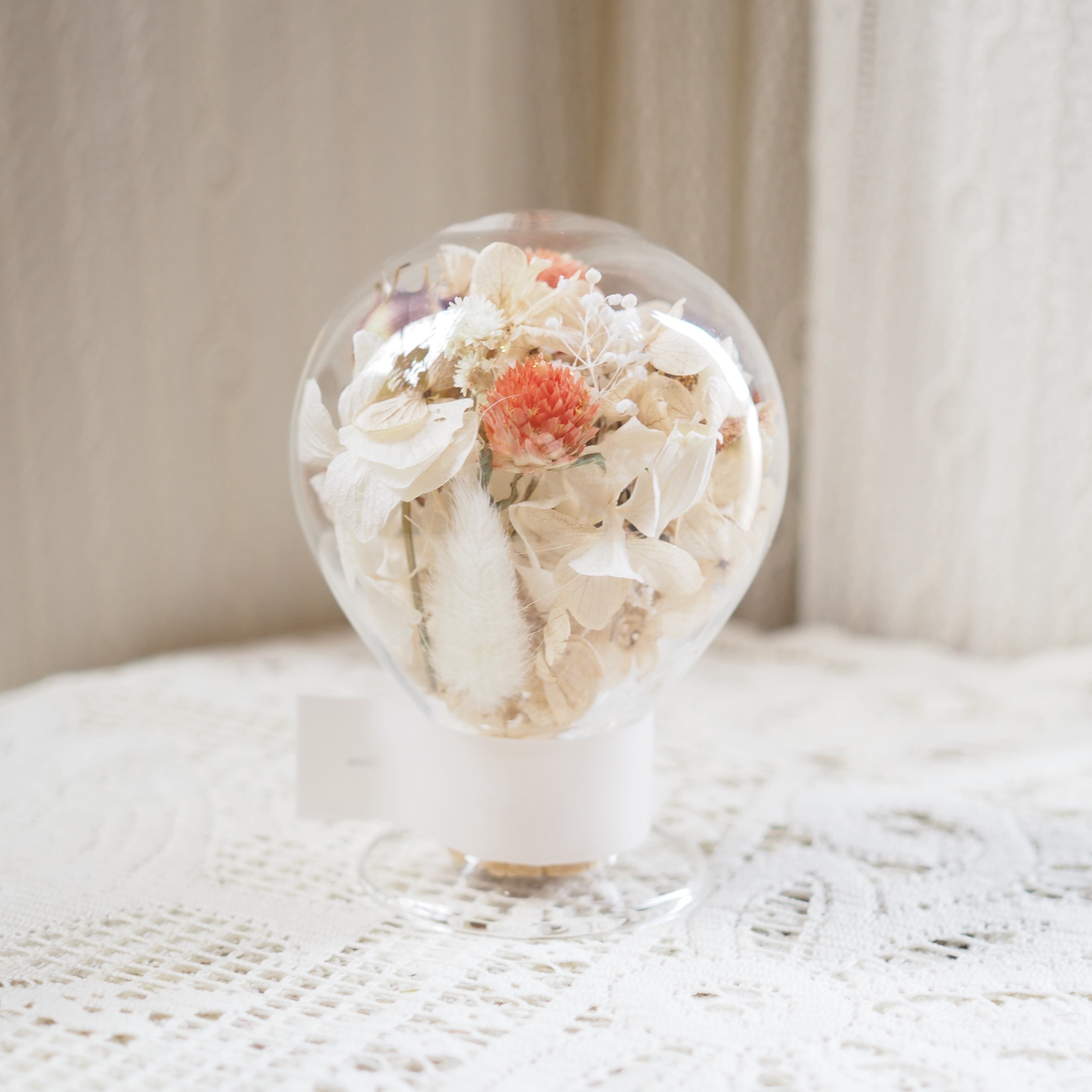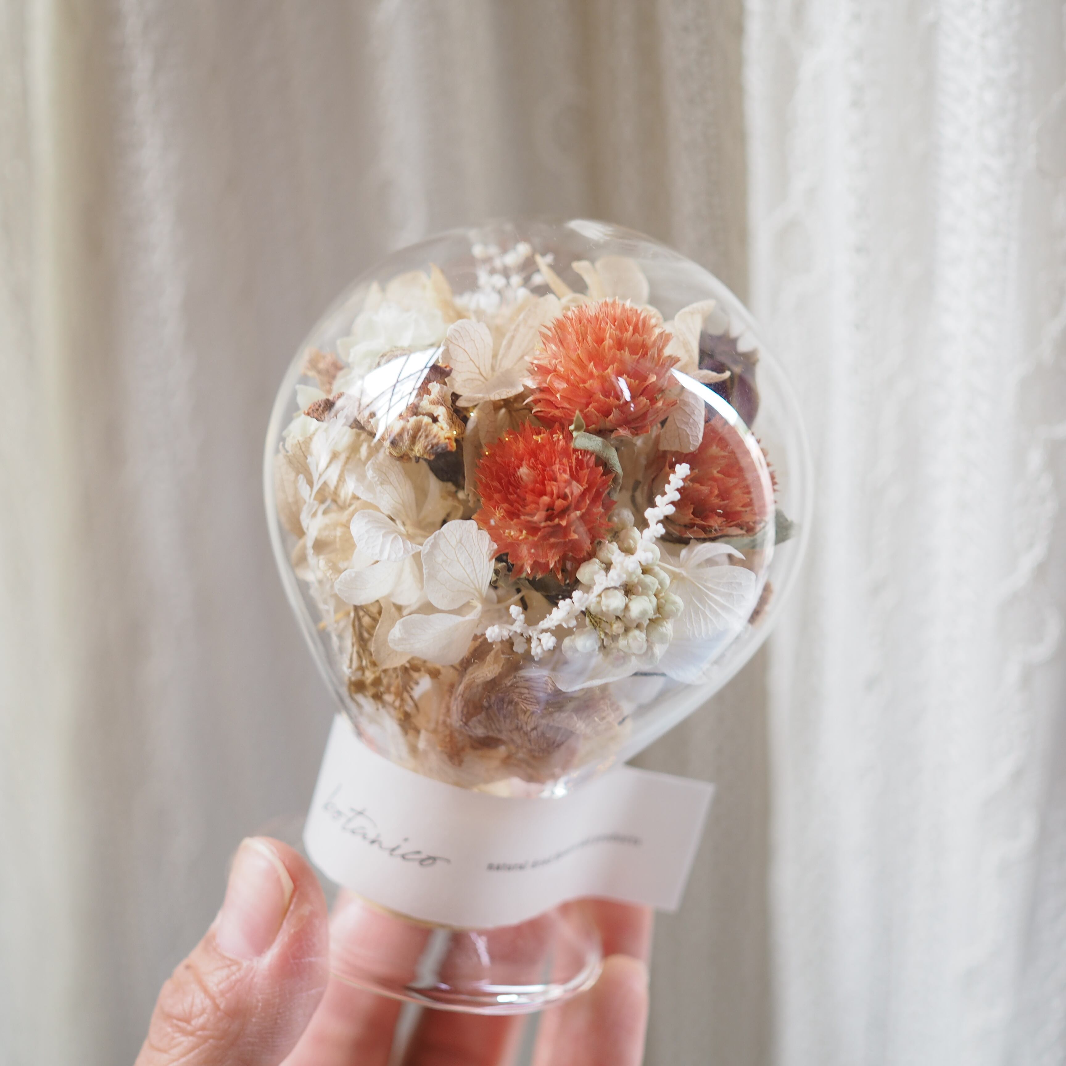 手作業で丁寧に仕上げたコルク瓶の中には、通年で扱いやすいドライフラワーを使用しています。