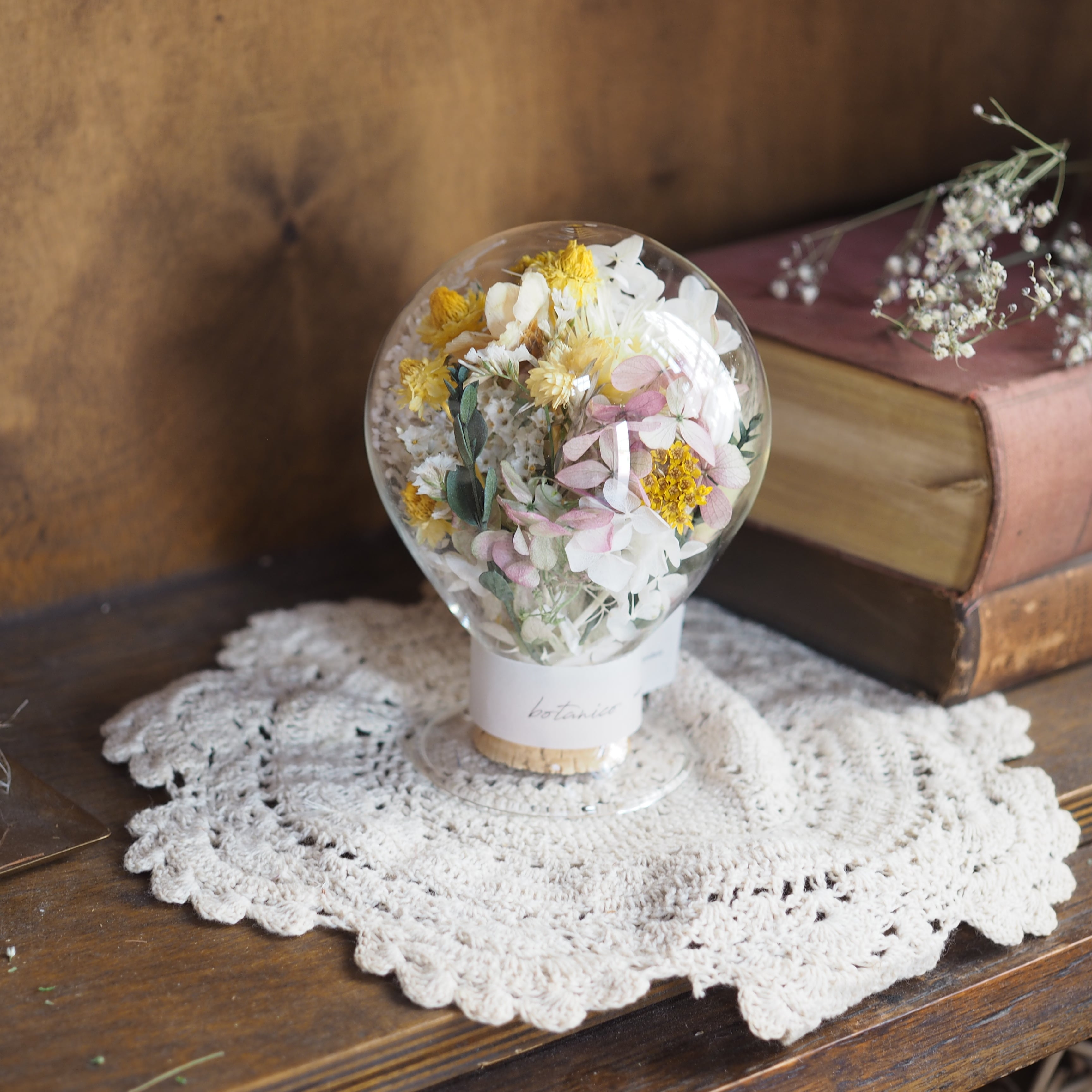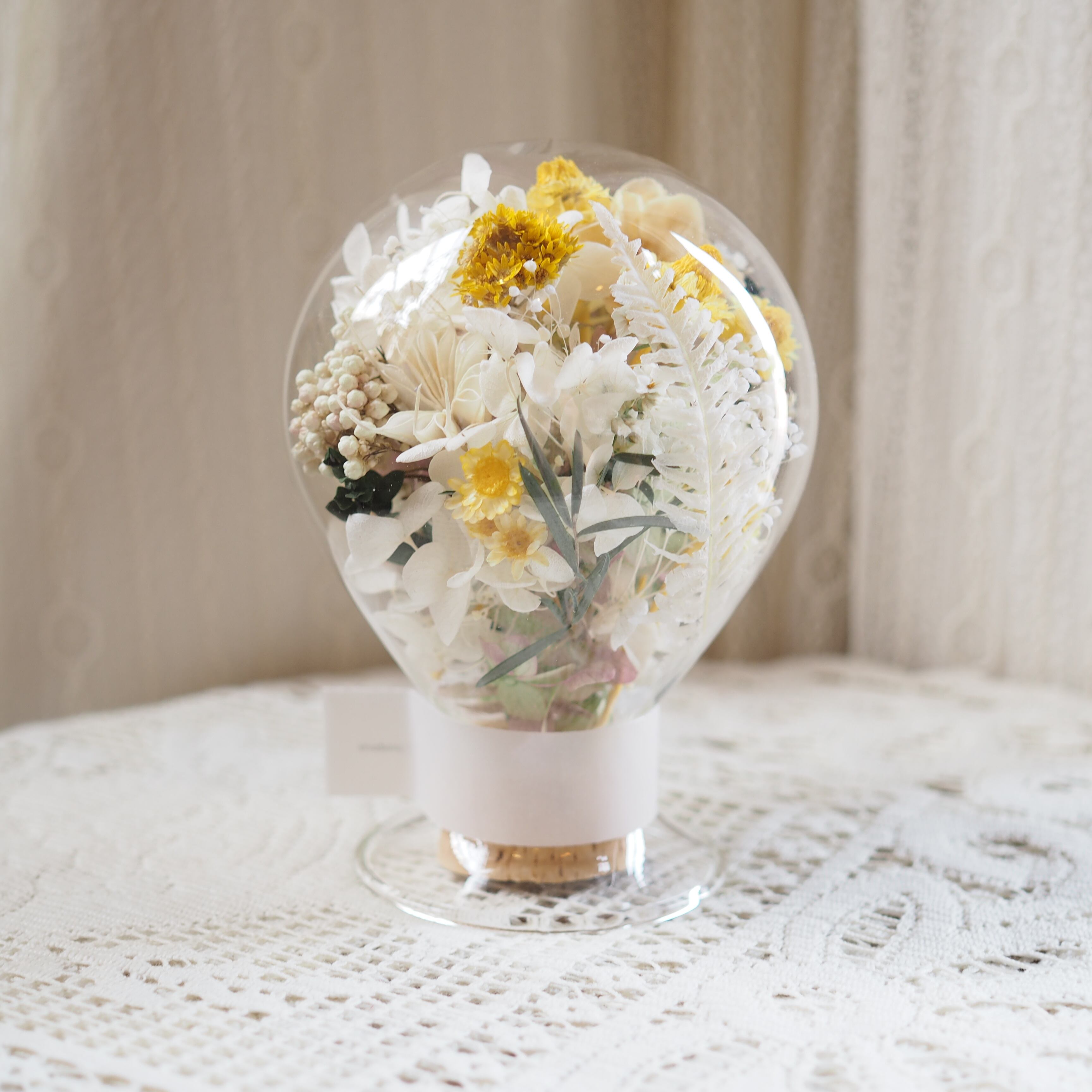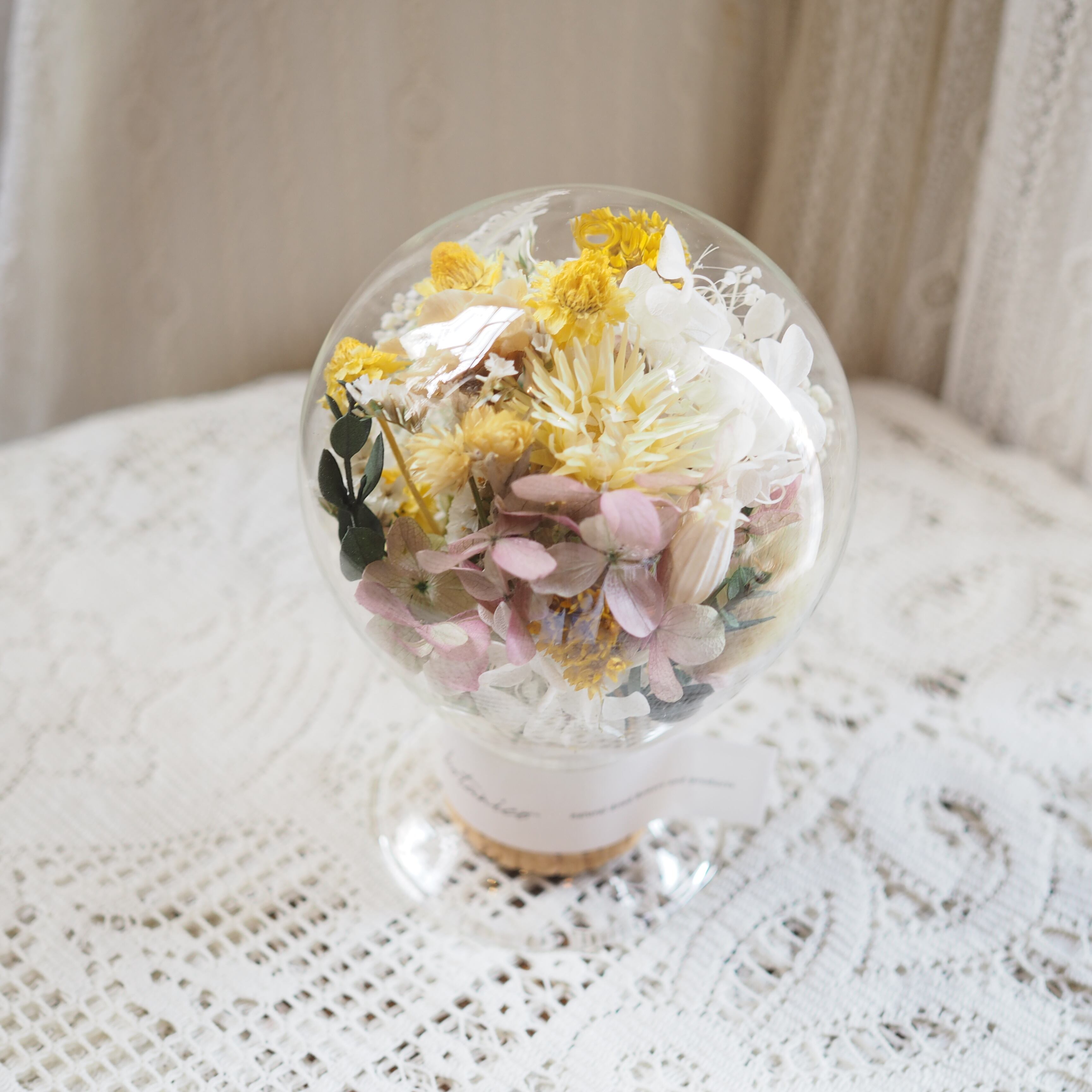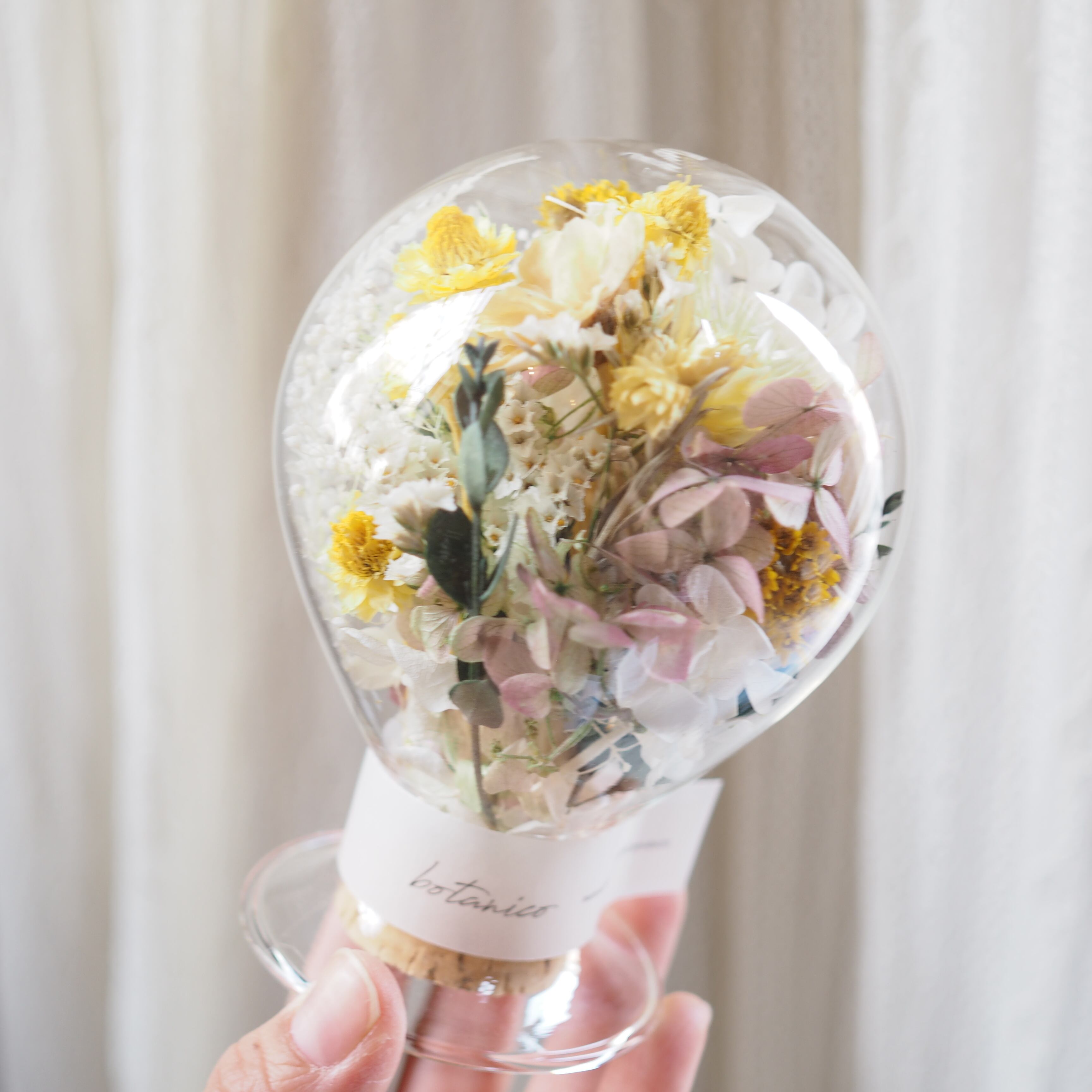 手作業で丁寧に仕上げたコルク瓶の中には、通年で扱いやすいドライフラワーを使用しています。