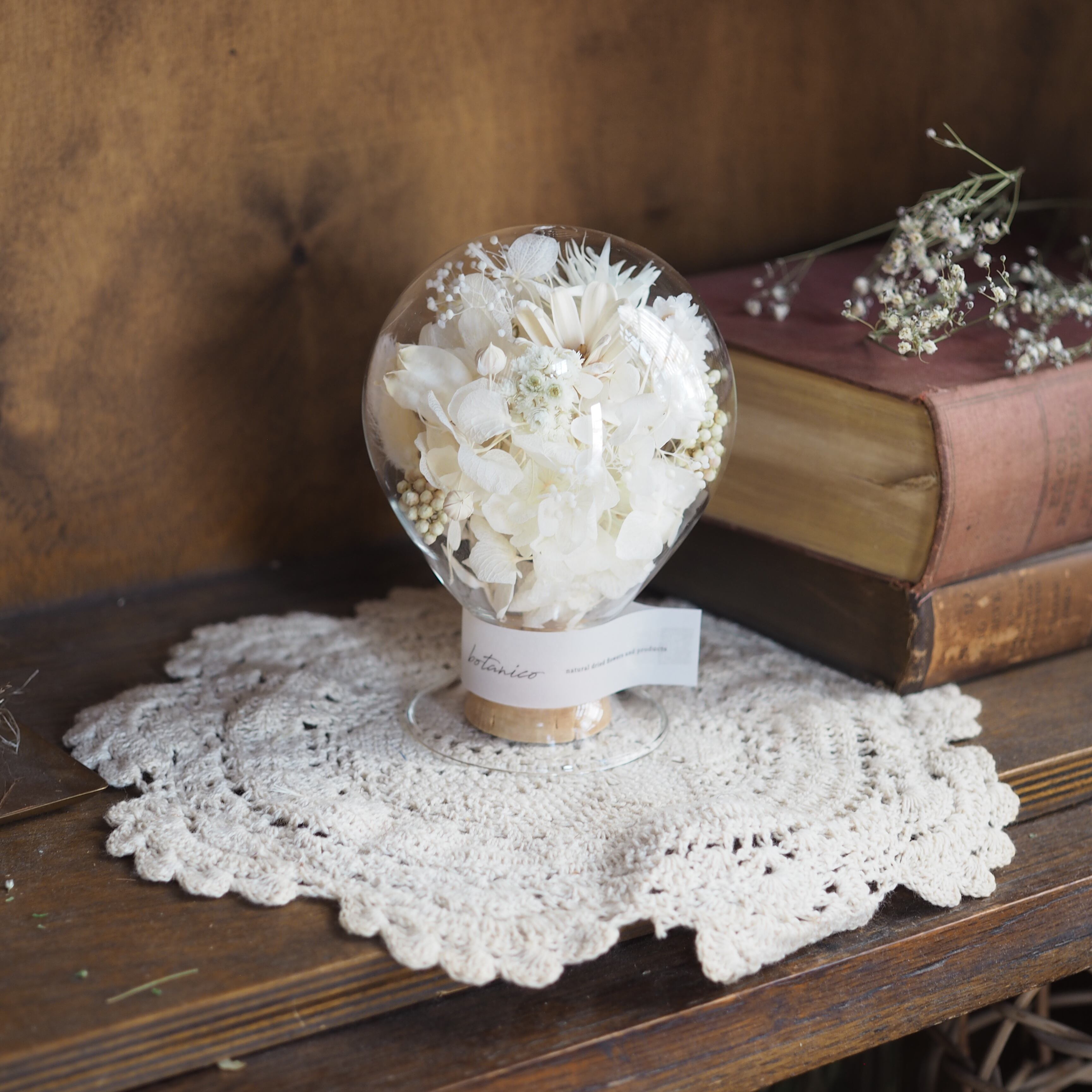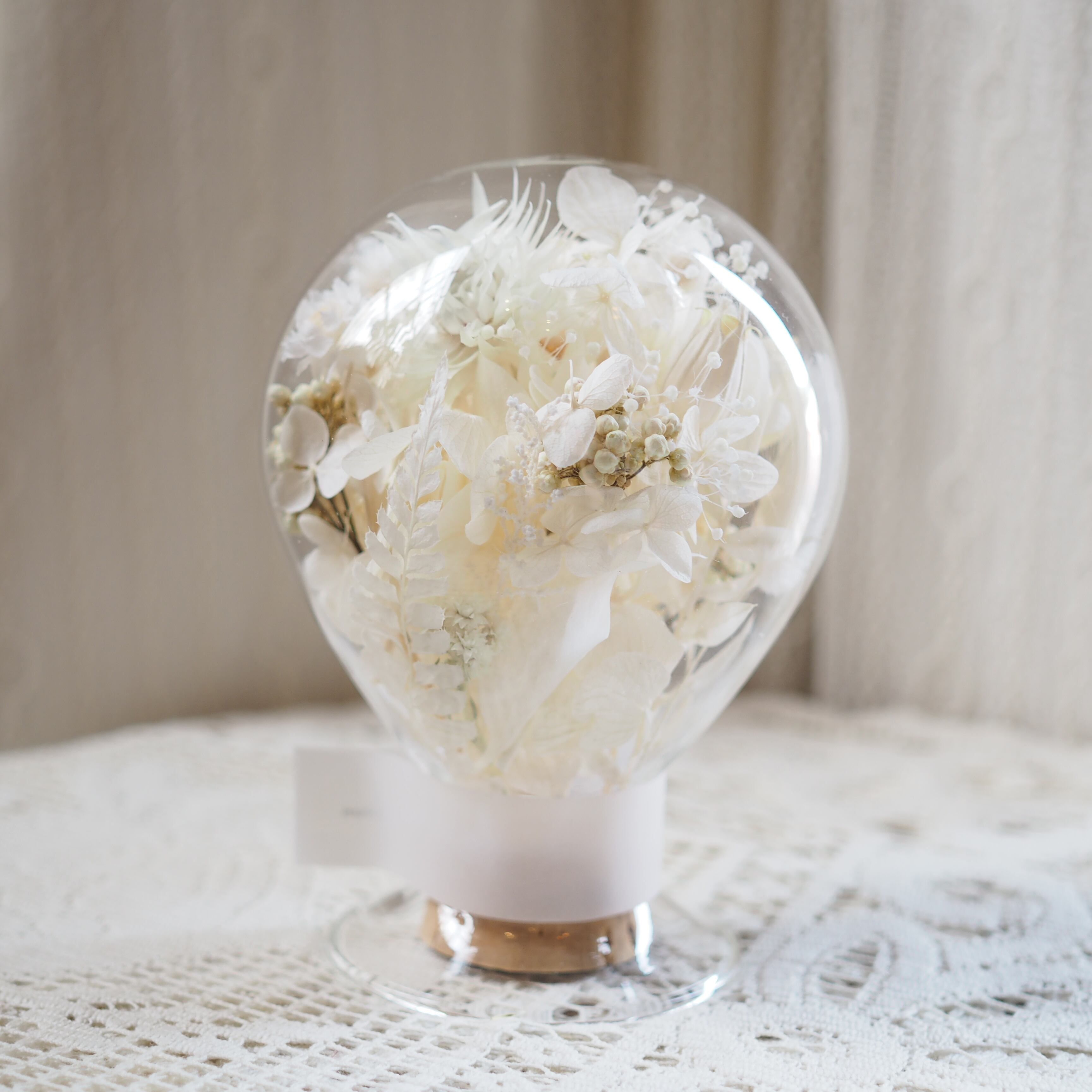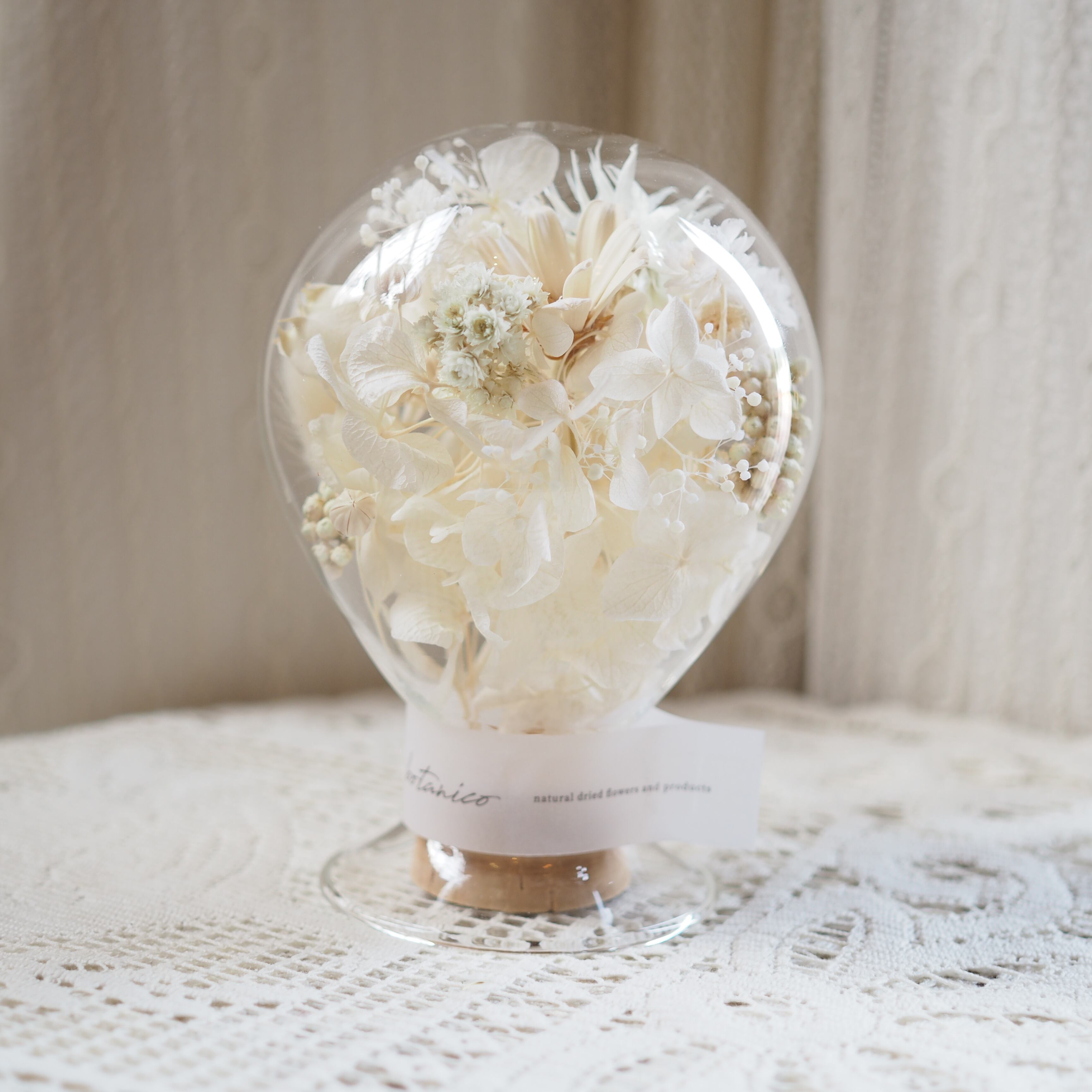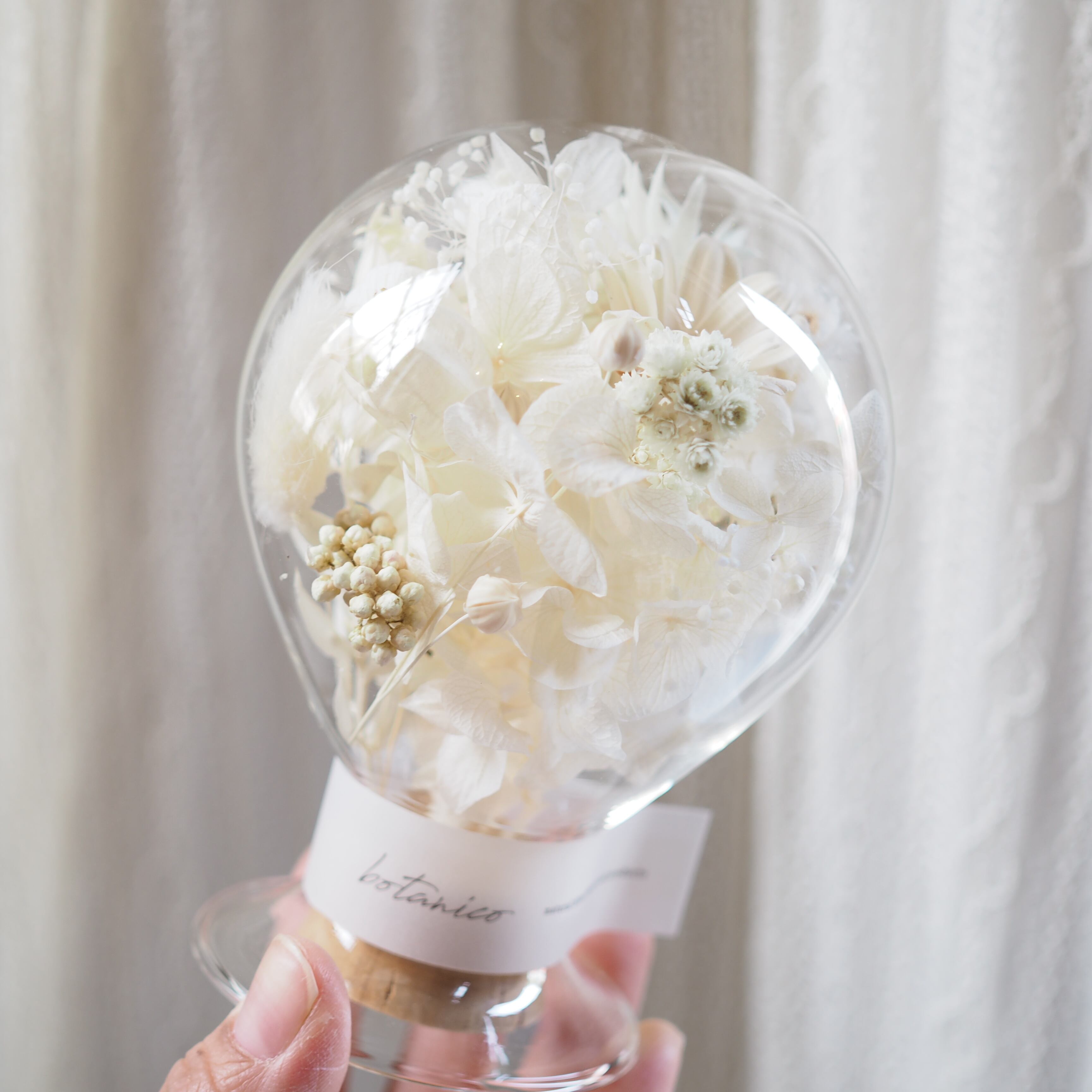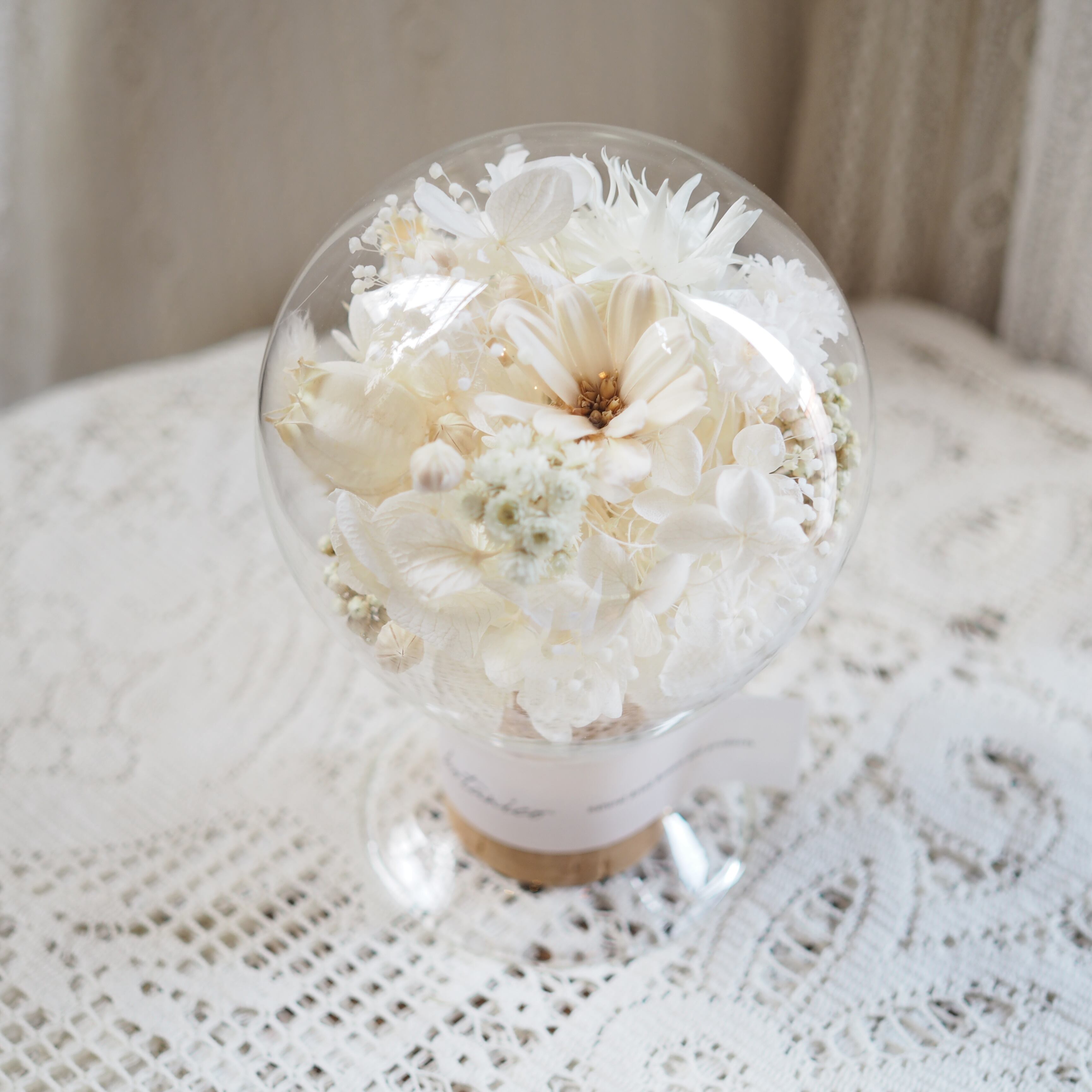 手作業で丁寧に仕上げたコルク瓶の中には、通年で扱いやすいドライフラワーを使用しています。